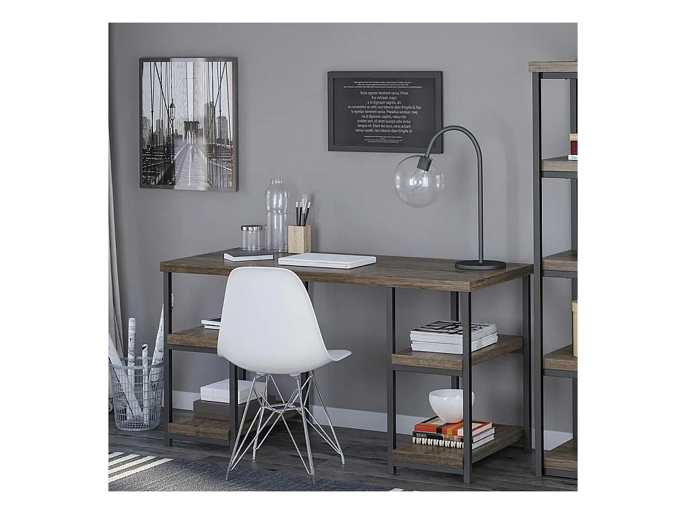 Industry Schreibtisch in Holzoptik Eiche verwittert Seitenregalen