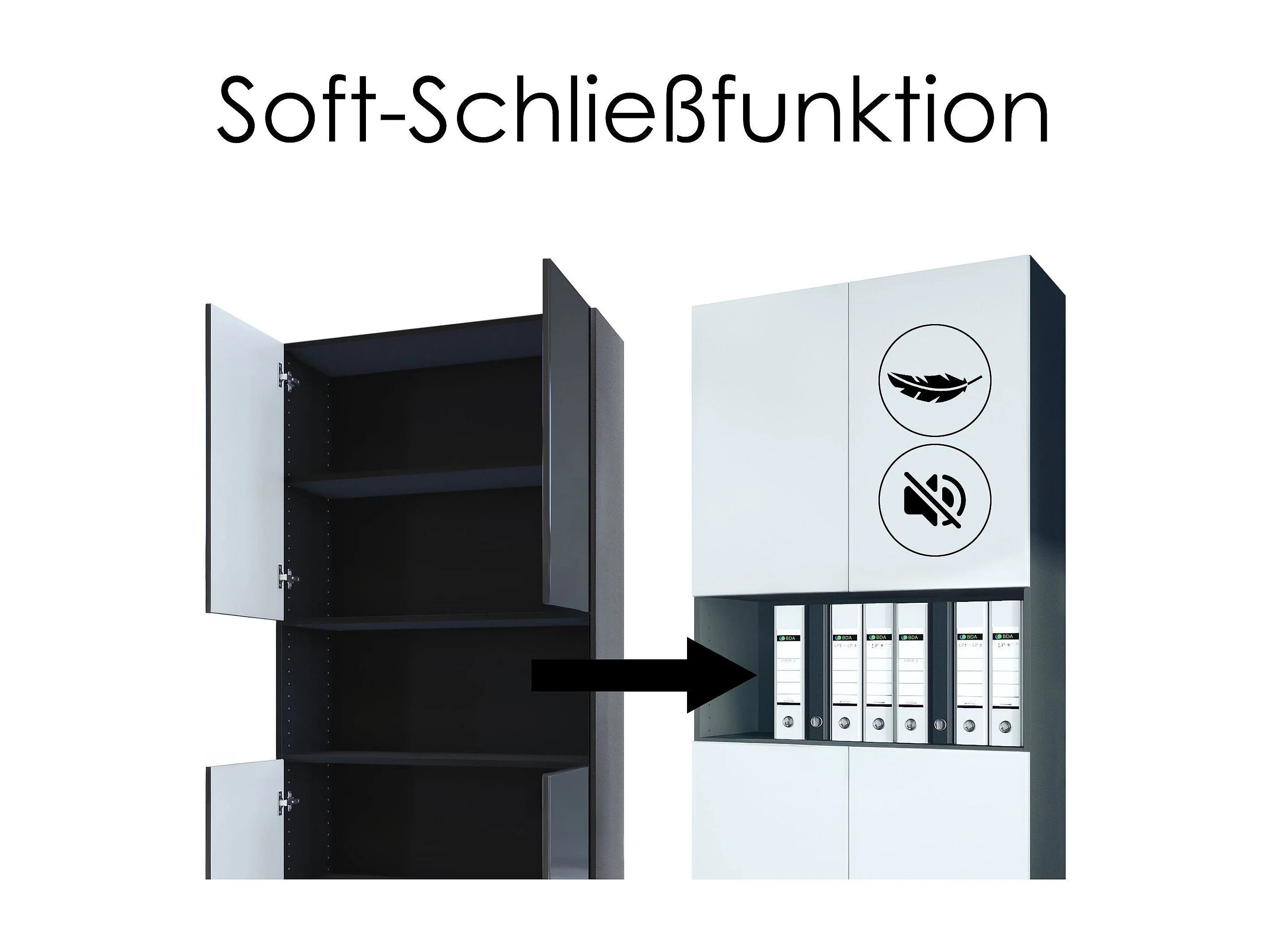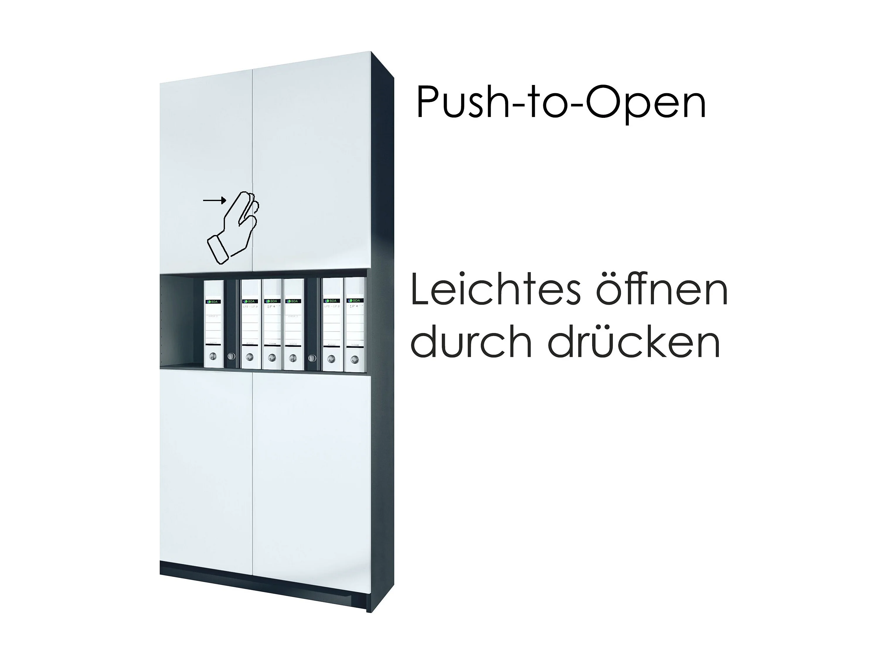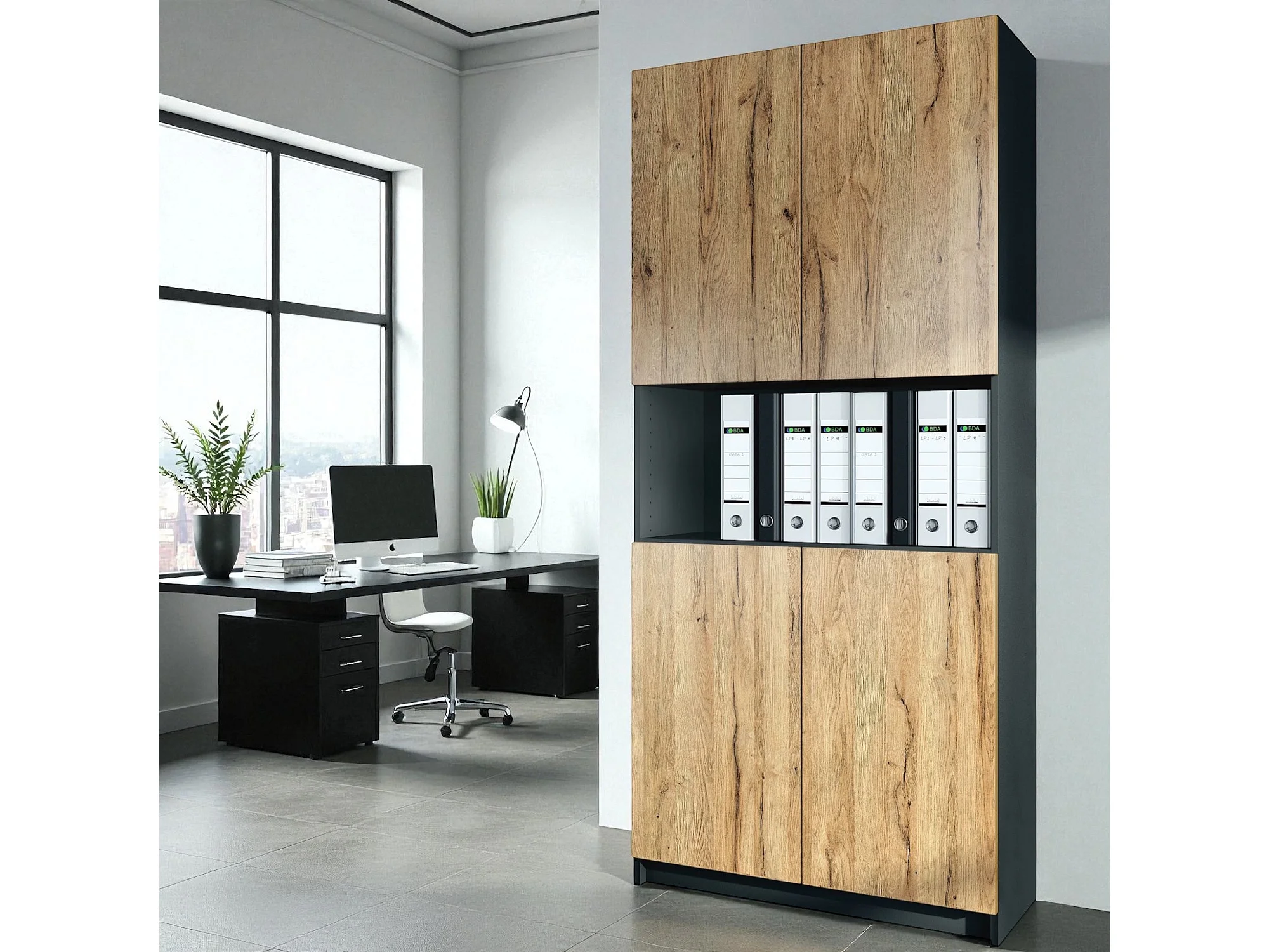 InnoFurn Aktenschrank Elona M2, Büroschrank mit Soft-Close & Push-to-Open, Aufbewahrungschrank, Büro, Home Office. Wohnzimer, Schwarz/Eiche Natur (82 x 184 x 37 cm)
