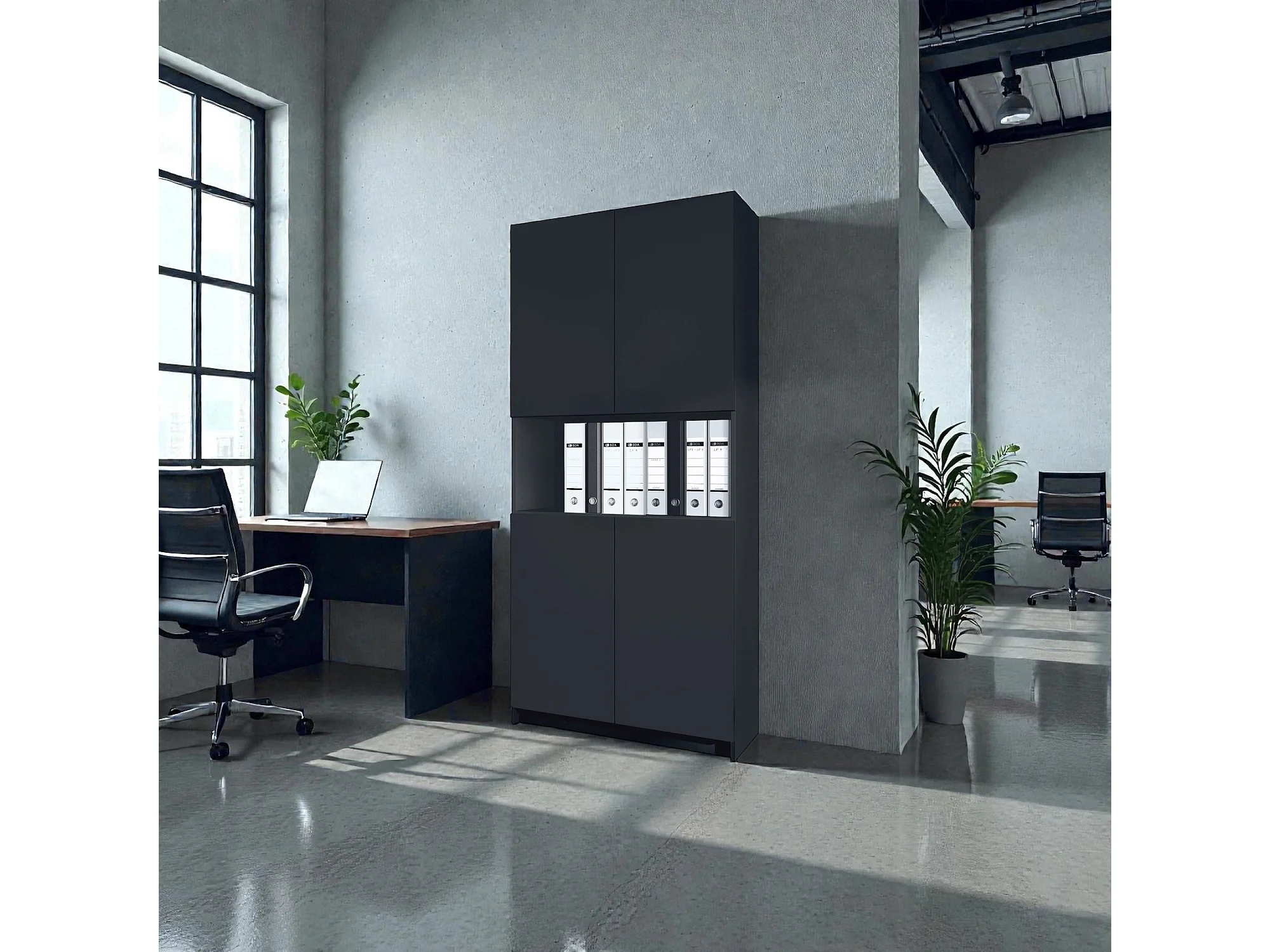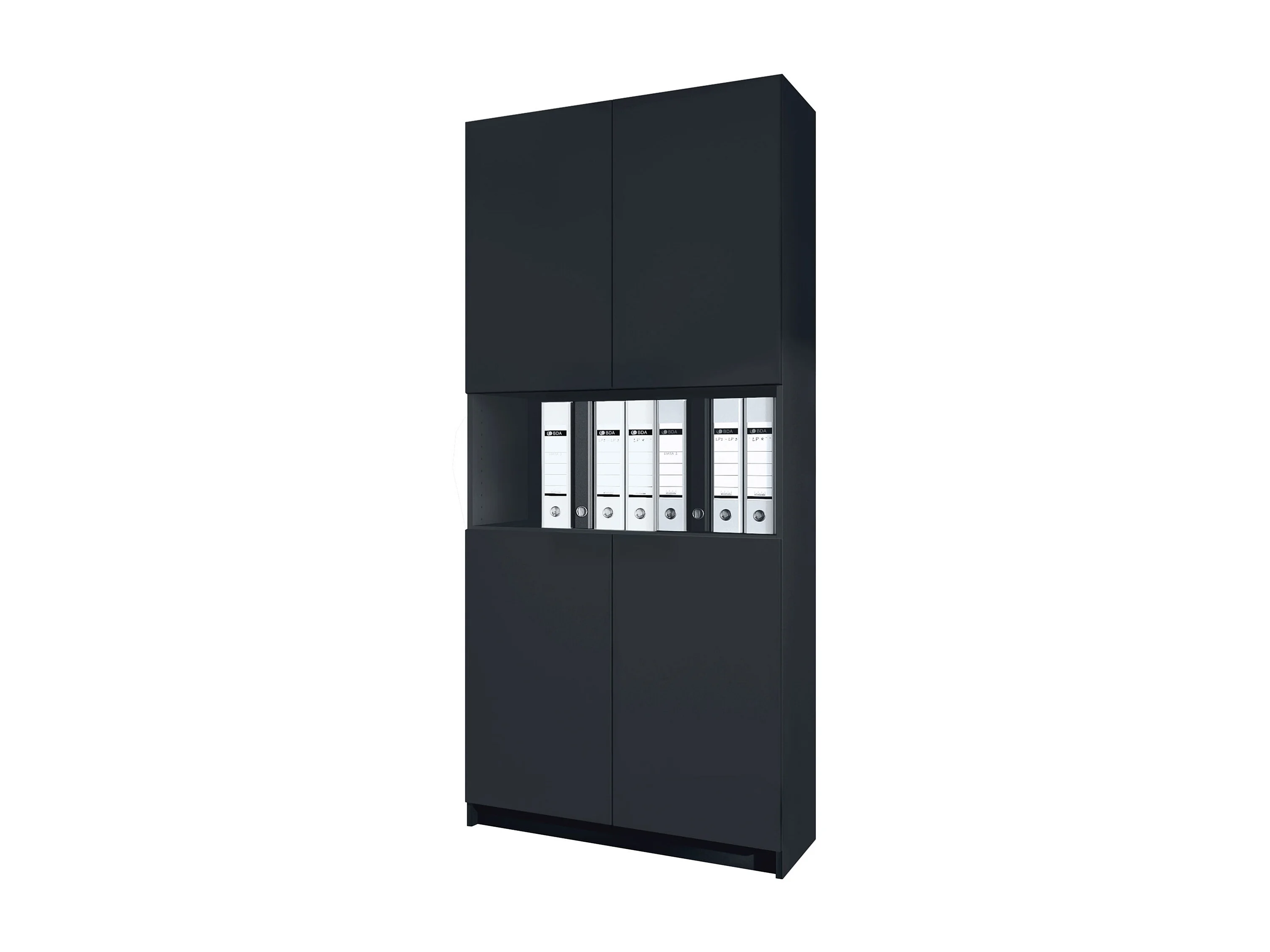 InnoFurn Aktenschrank Elona M2, Büroschrank mit Soft-Close & Push-to-Open, Aufbewahrungschrank, Büro, Home Office. Wohnzimer, Schwarz matt (82 x 184 x 37 cm)