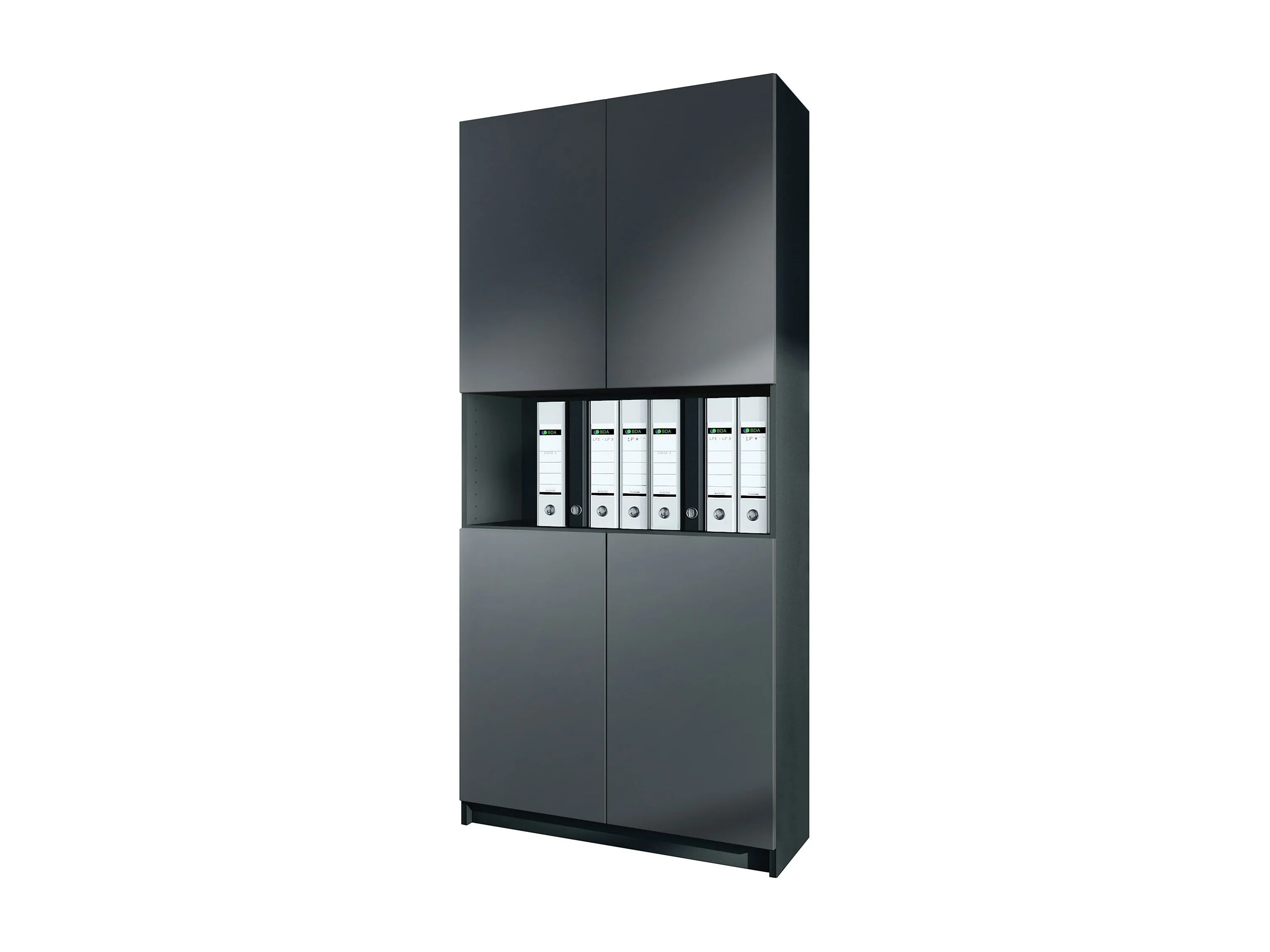 InnoFurn Aktenschrank Elona M2, Büroschrank mit Soft-Close & Push-to-Open, Aufbewahrungschrank, Büro, Wohnzimer, Schwarz/Anthrazit matt (82 x 184 x 37 cm)