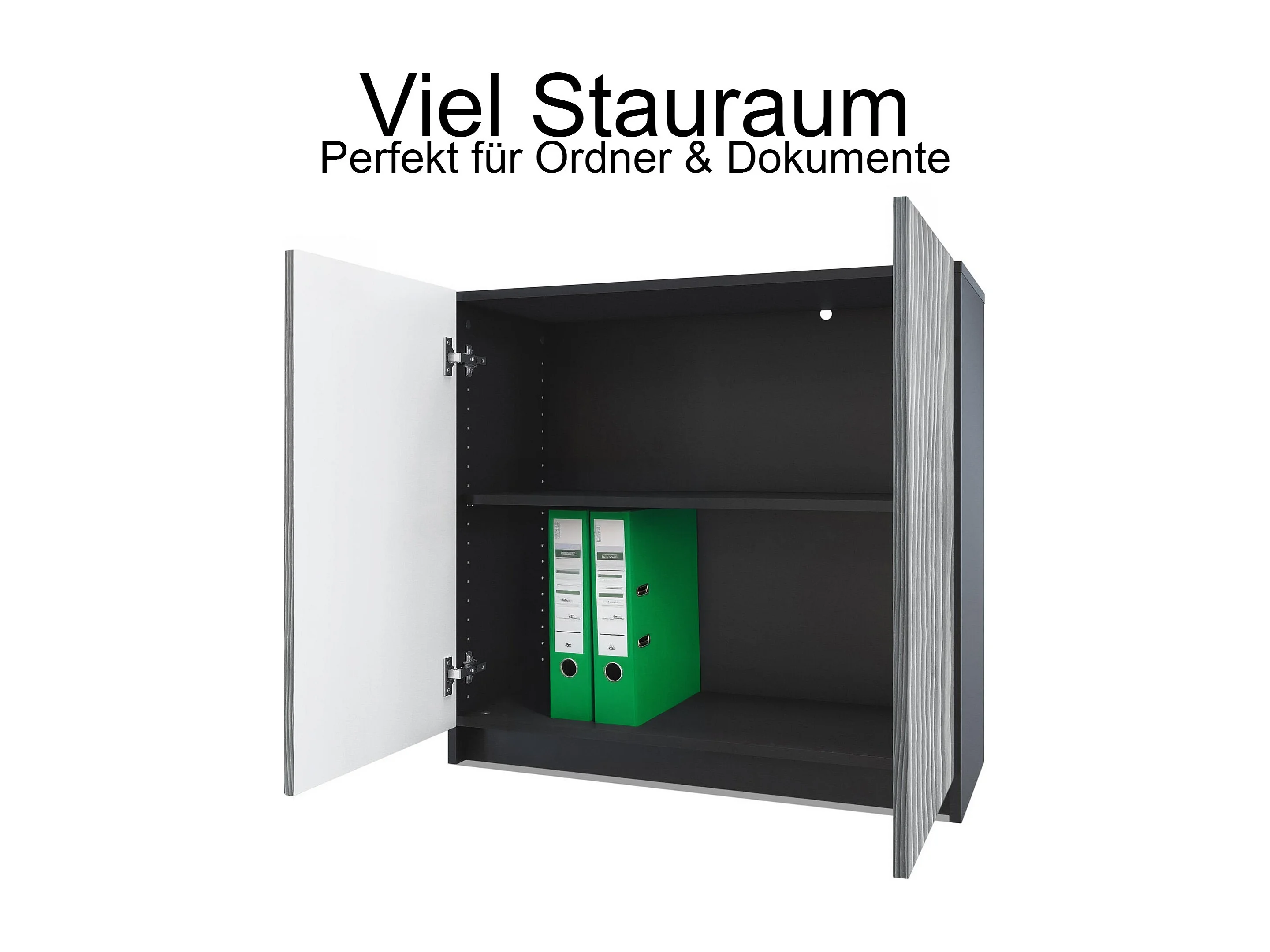 InnoFurn Kommode Elona, Büroschrank mit Soft-Close & Push-to-Open, Aktenschrank, Bürokommode, Home Office & Büro, Schwarz matt (82 x 78 x 37 cm)