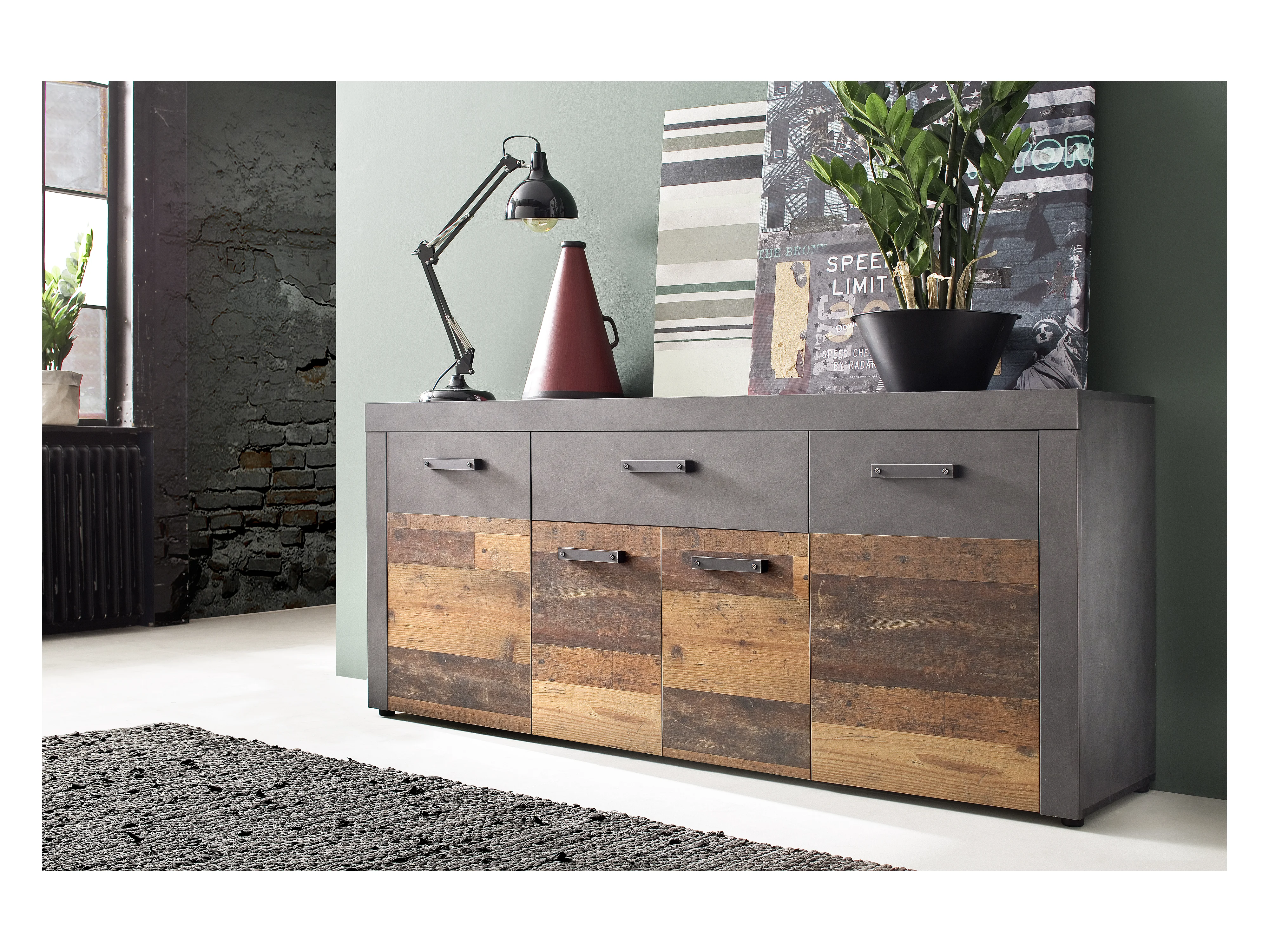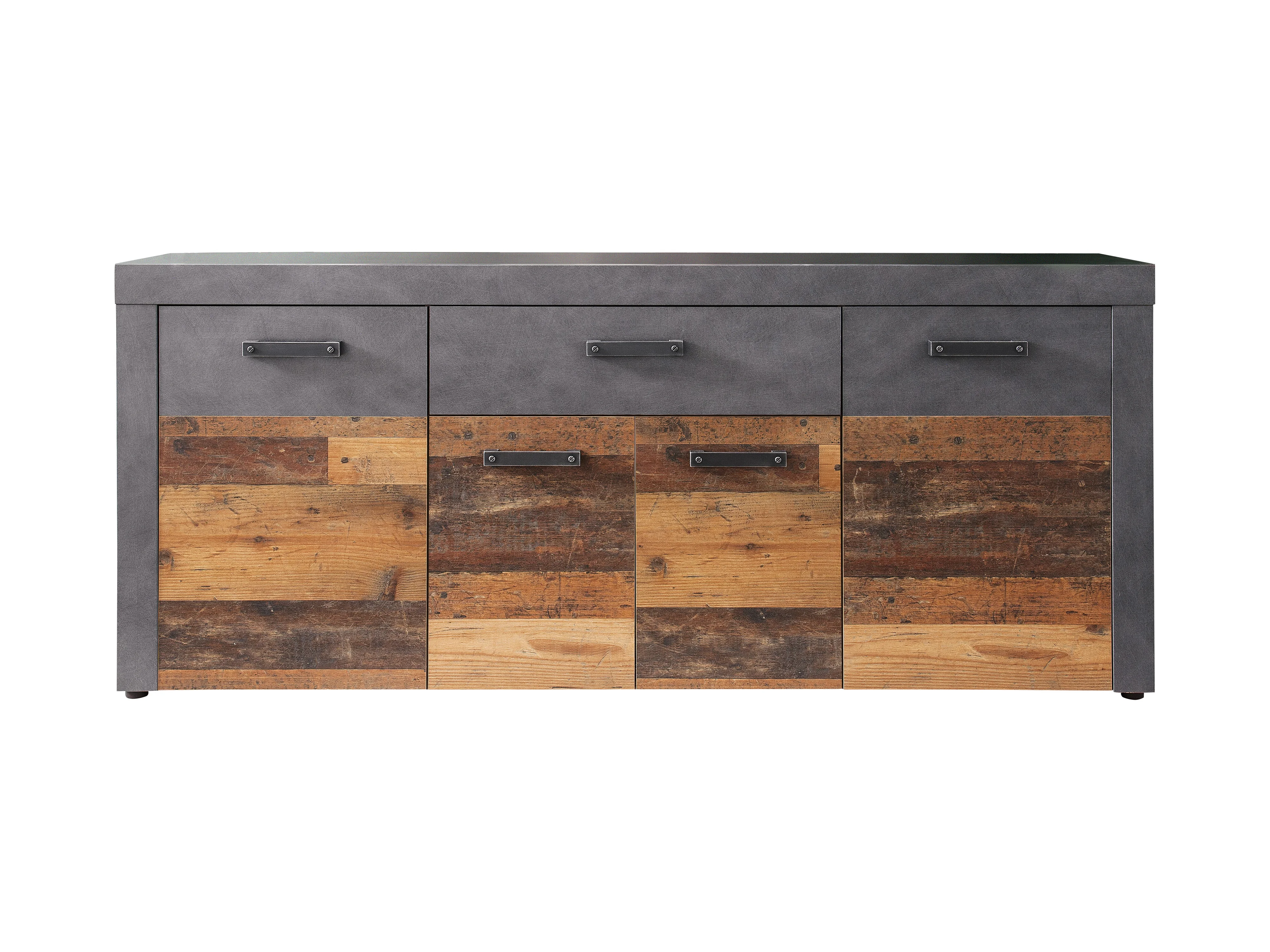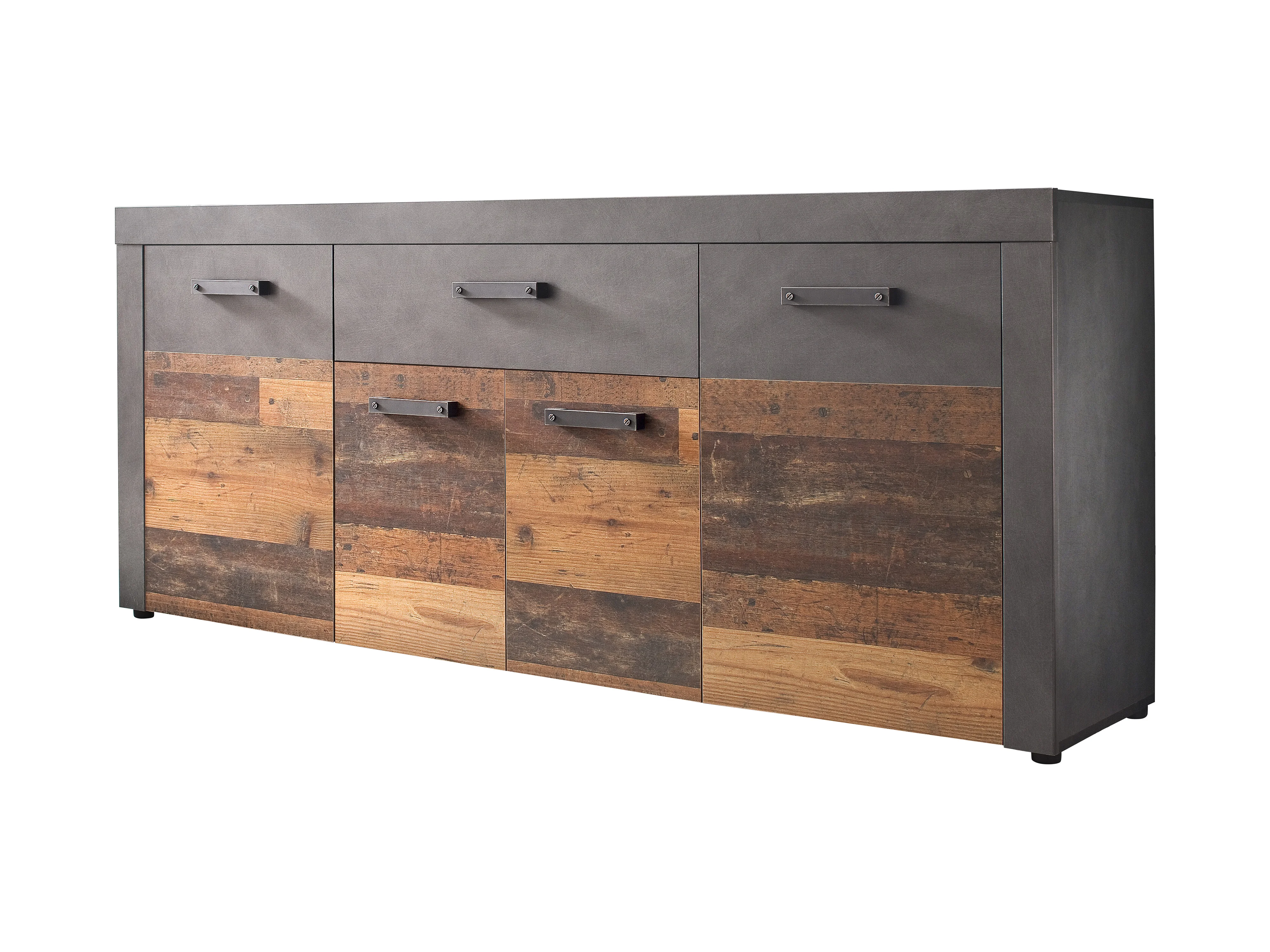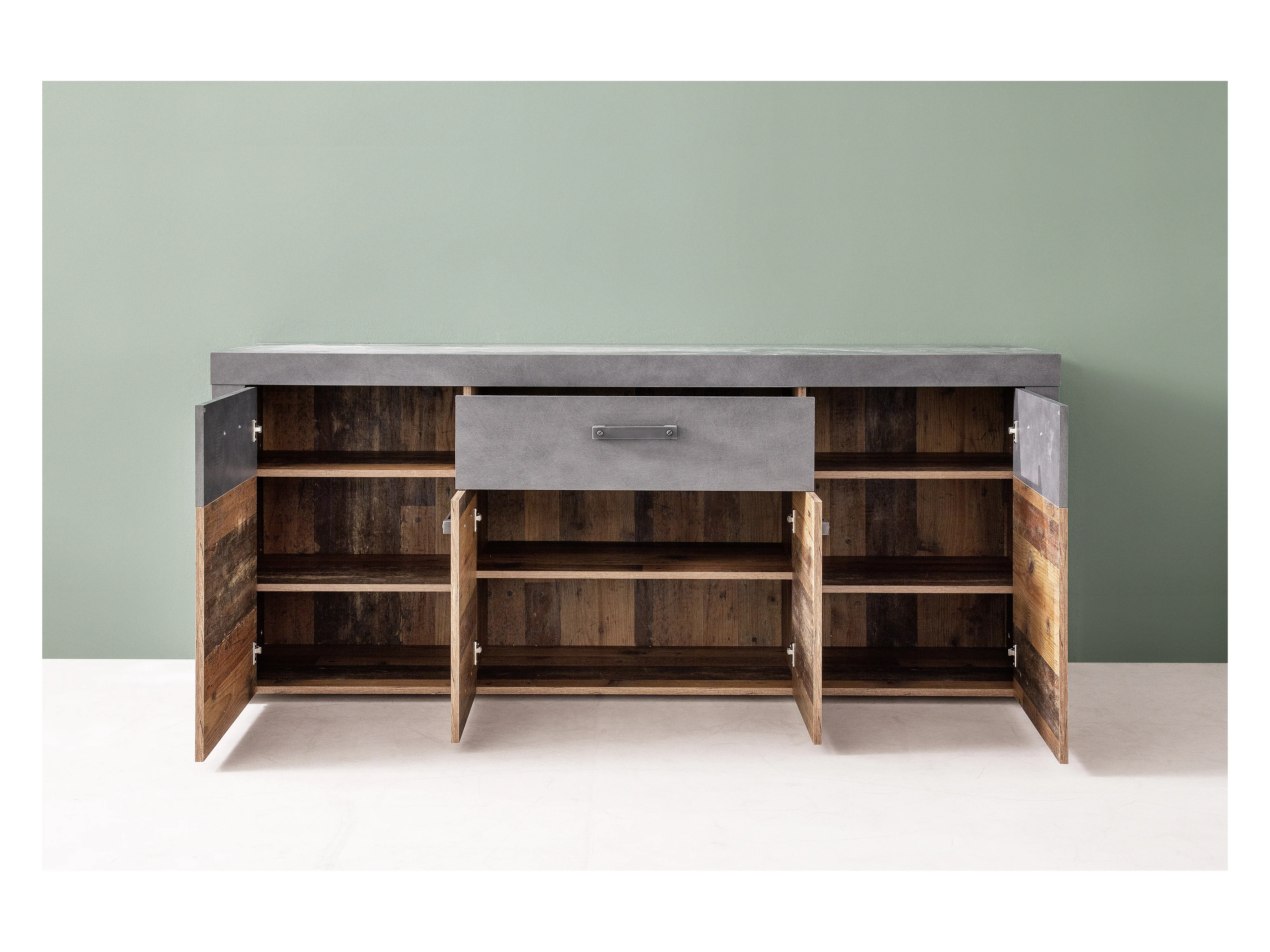 Irina Sideboard 4 Türen und 1 Schublade, grau Matera, Old Wood Dekor.