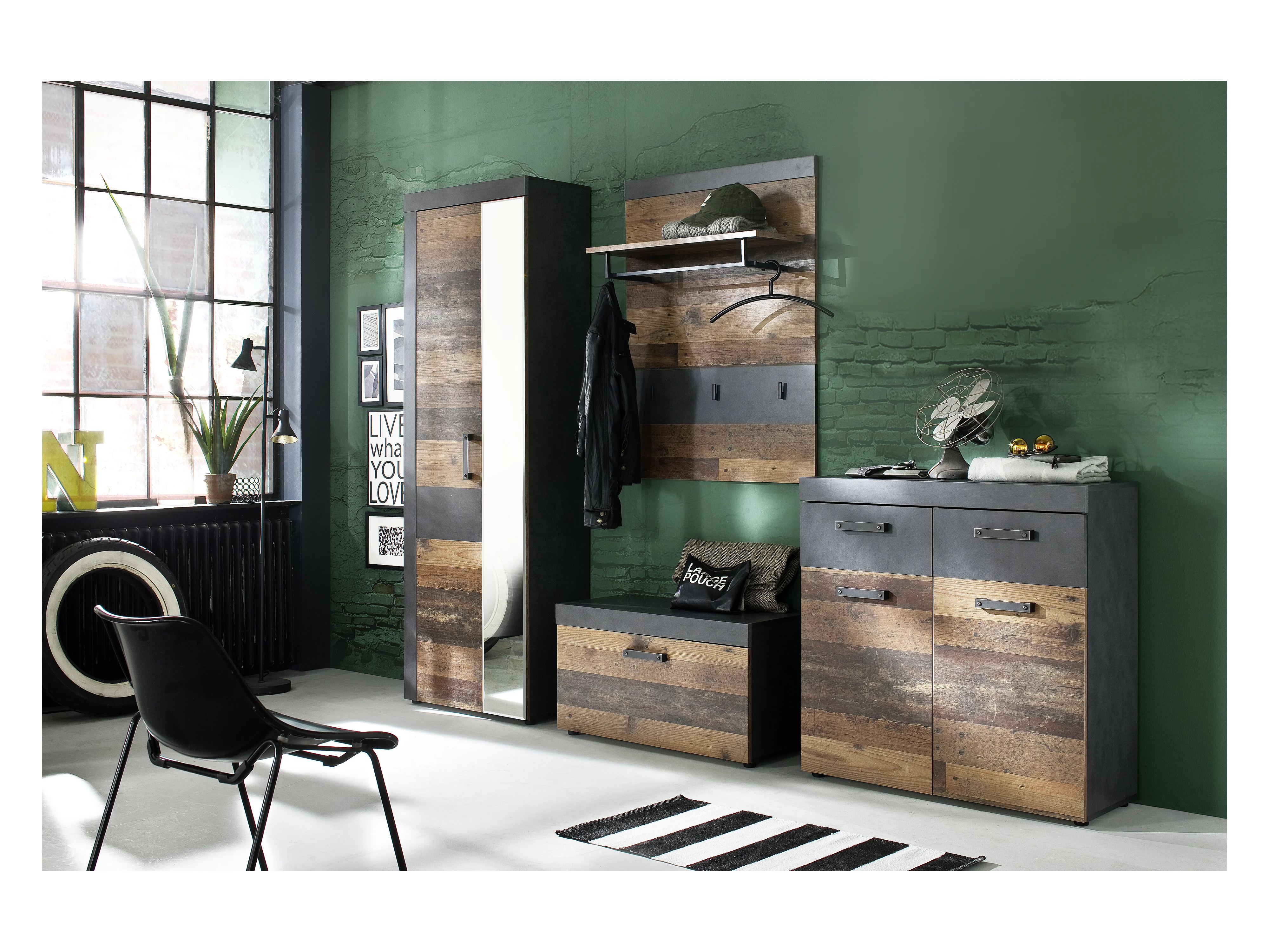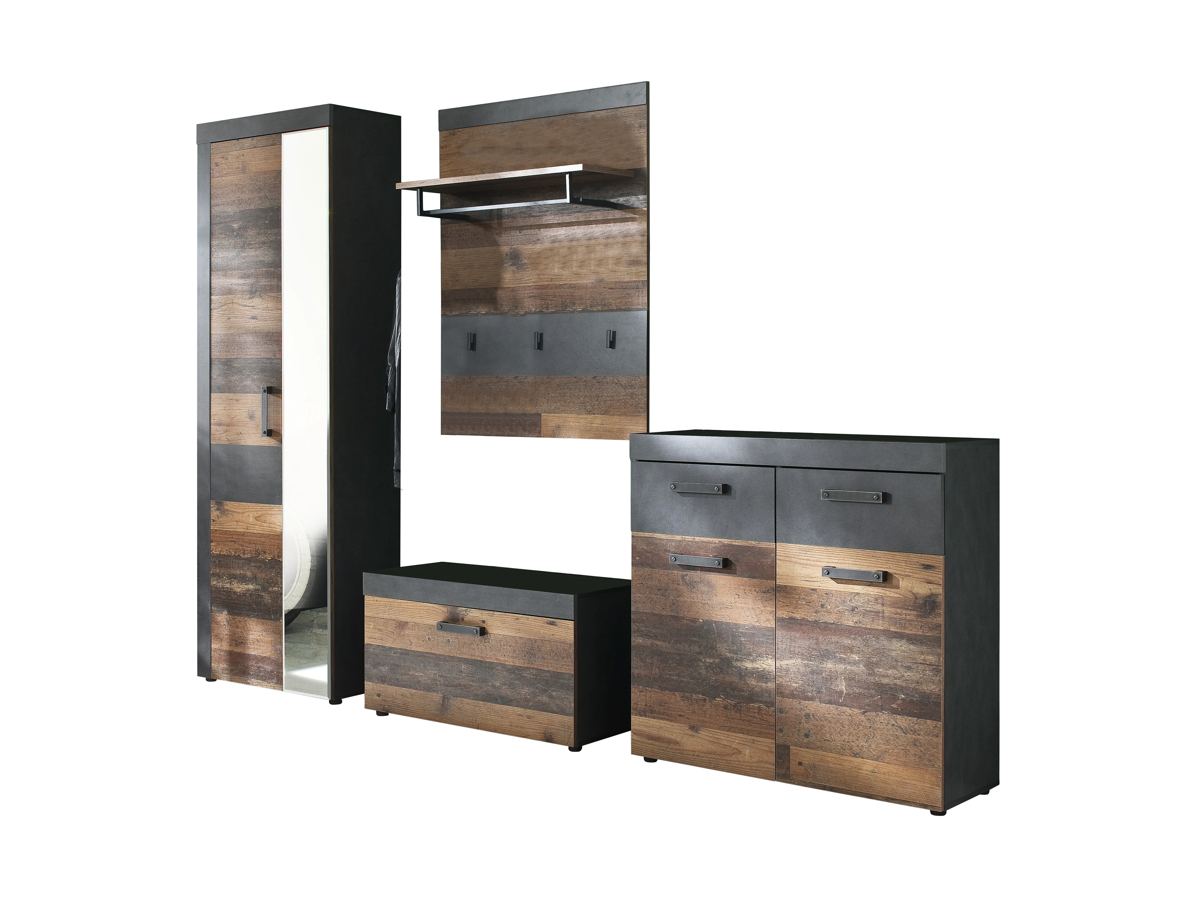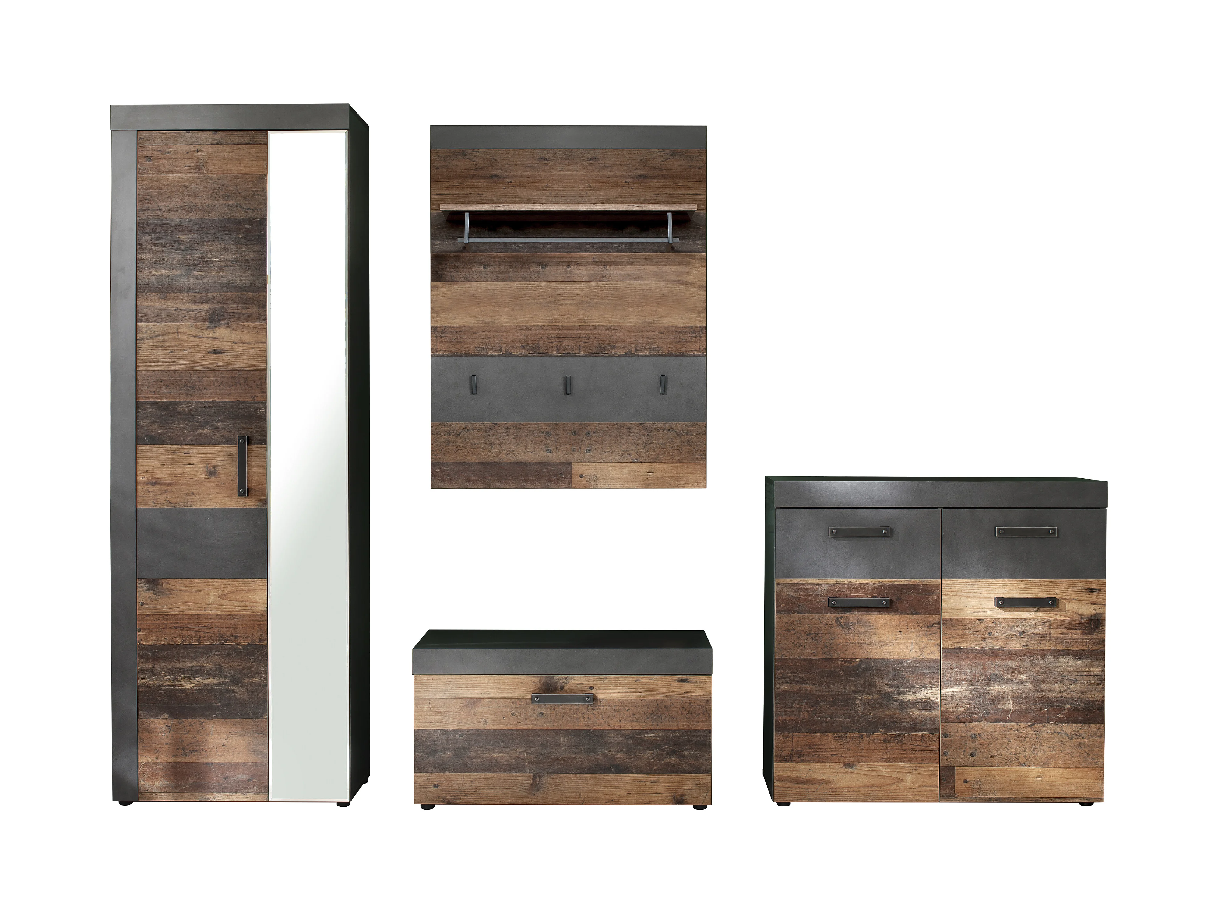 Irwin Garderobenaufstellung G, grau Matera Dekor, Old Wood Dekor.