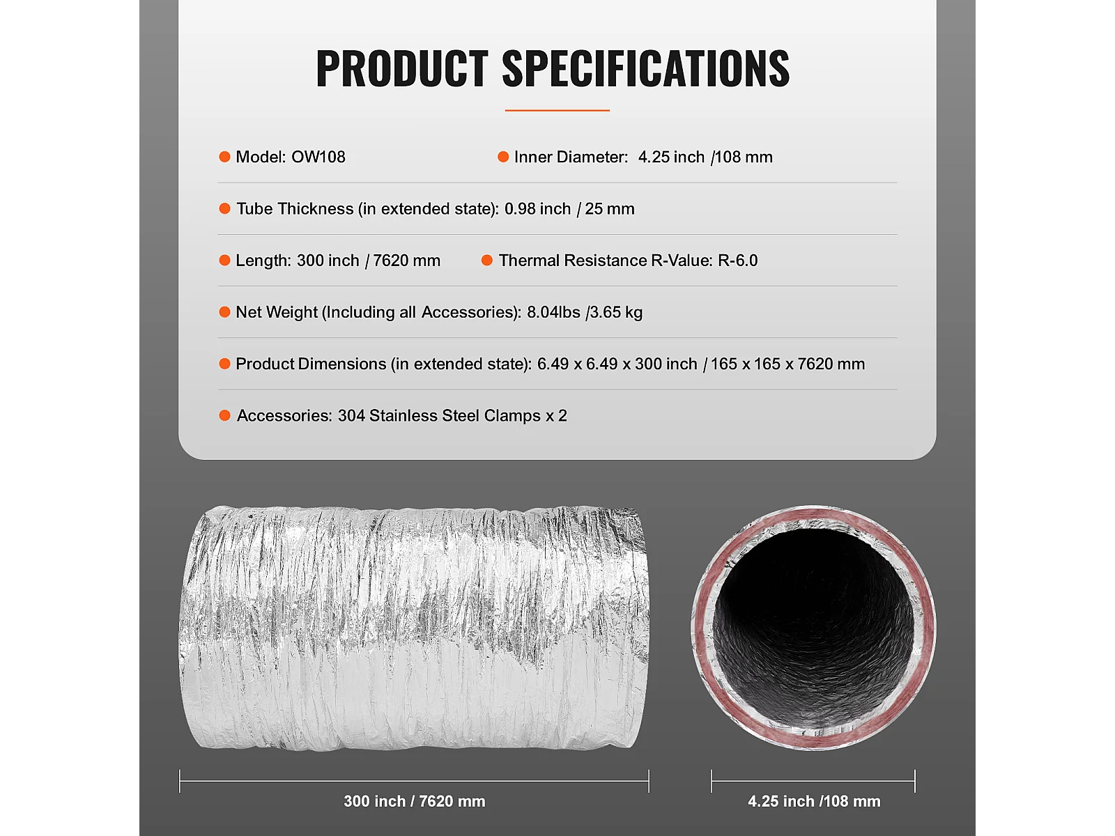 Isoliertes Flexibles Rohr SucceBuy für Trocknerlüftung 10.16CM x 760CM, CVC, Feuersicherheit R-6