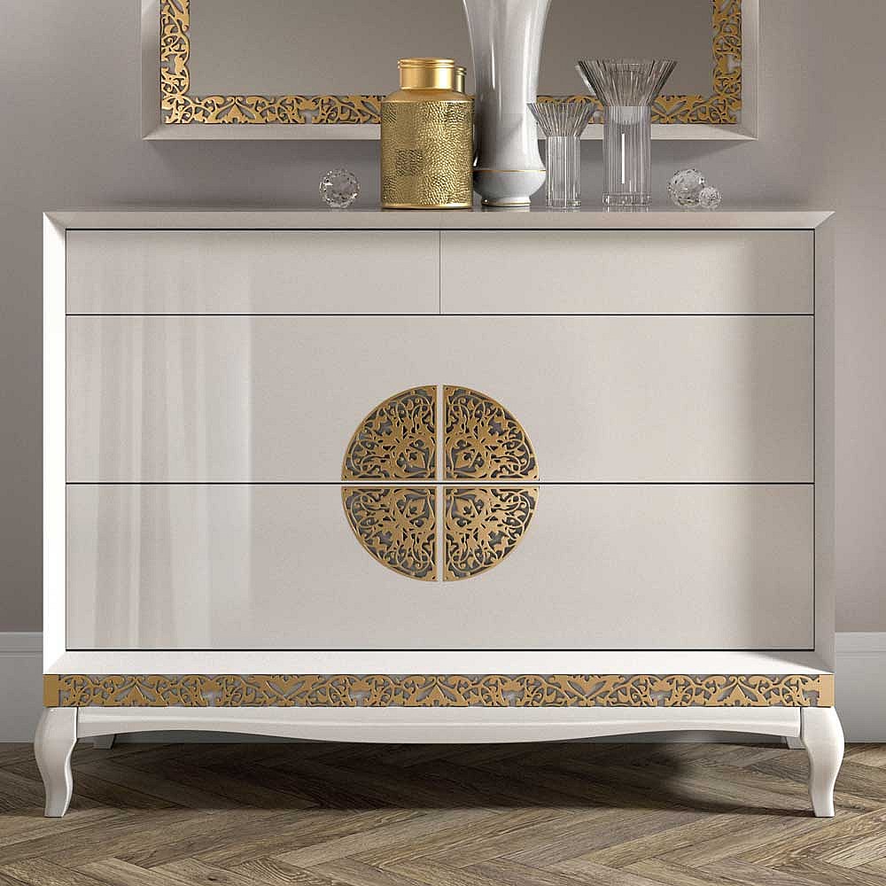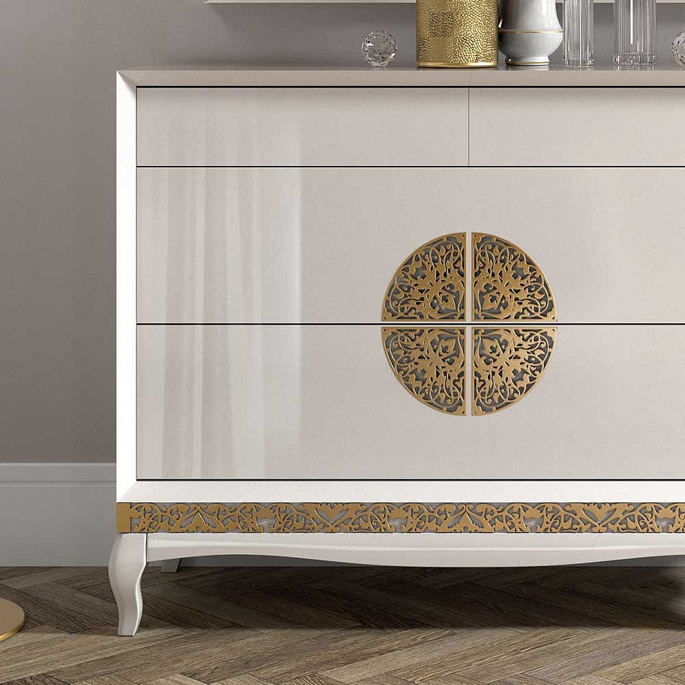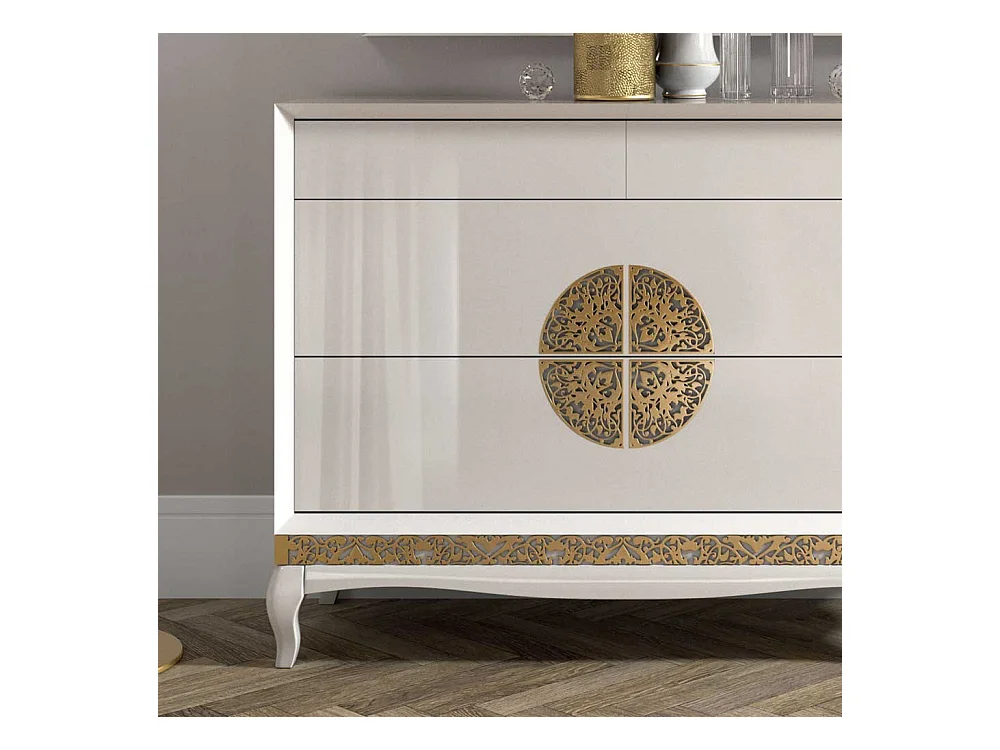 Italienisches Design Sideboard in Weiß Blattgold verziert
