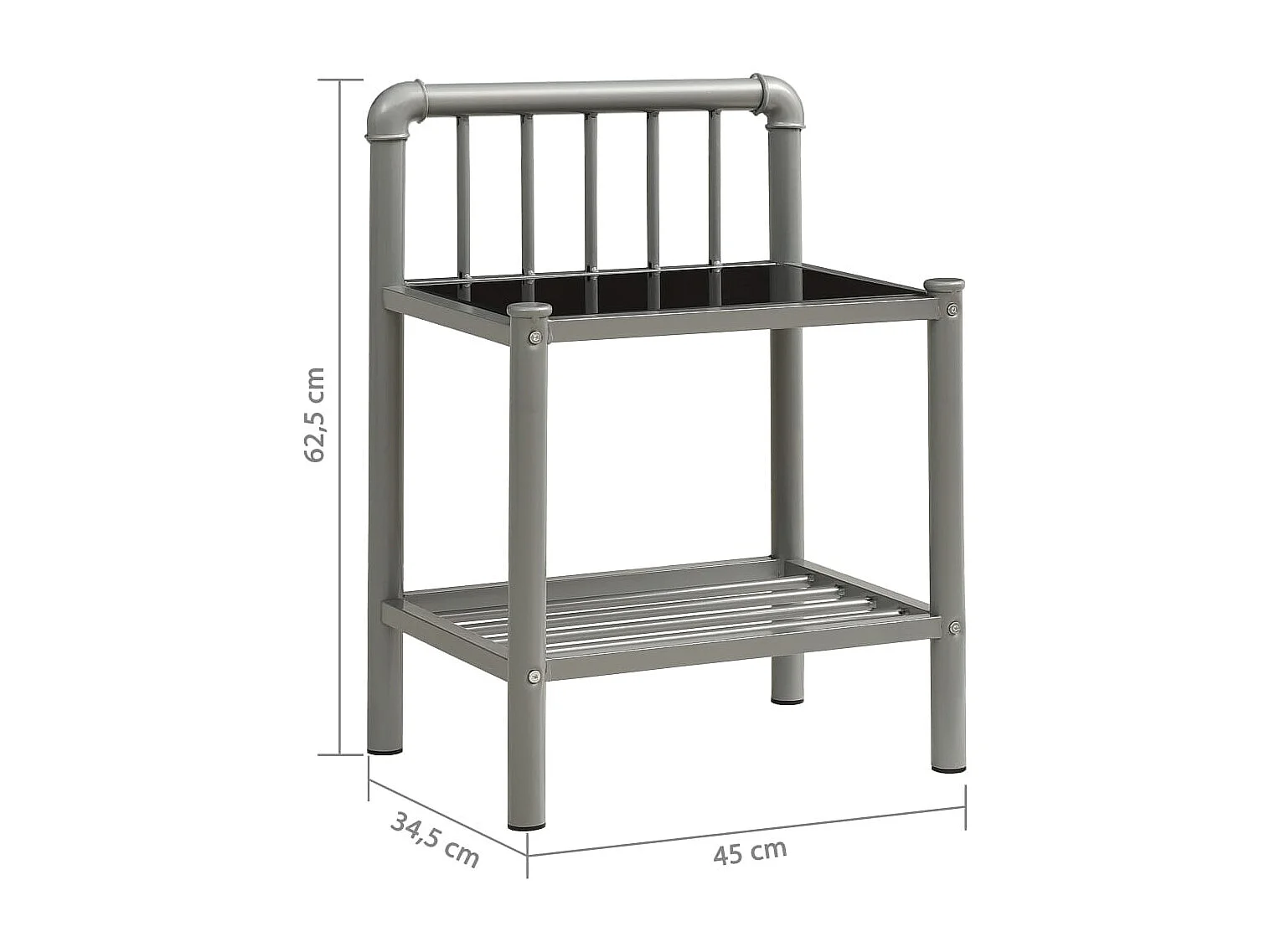 Ivelira Nachttisch Grau und Schwarz 45x34,5x62,5 cm Metall und Glas