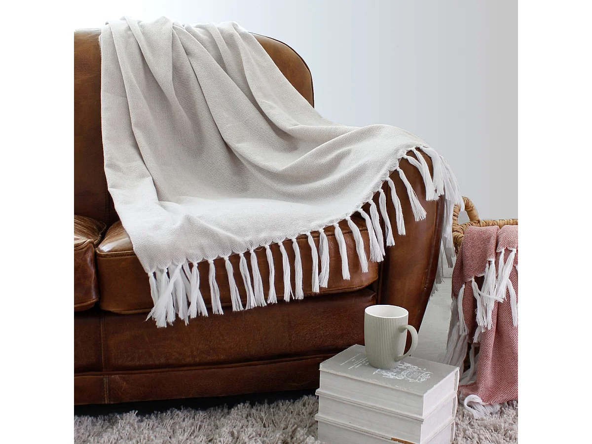 Jacquard-Decke mit langen Fransen 130 x 150 cm