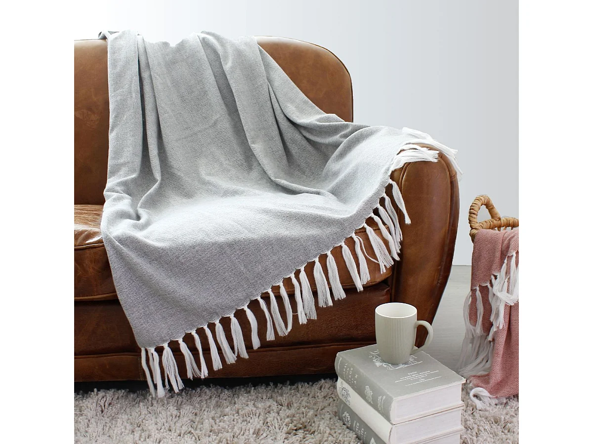 Jacquard-Decke mit langen Fransen 130 x 150 cm