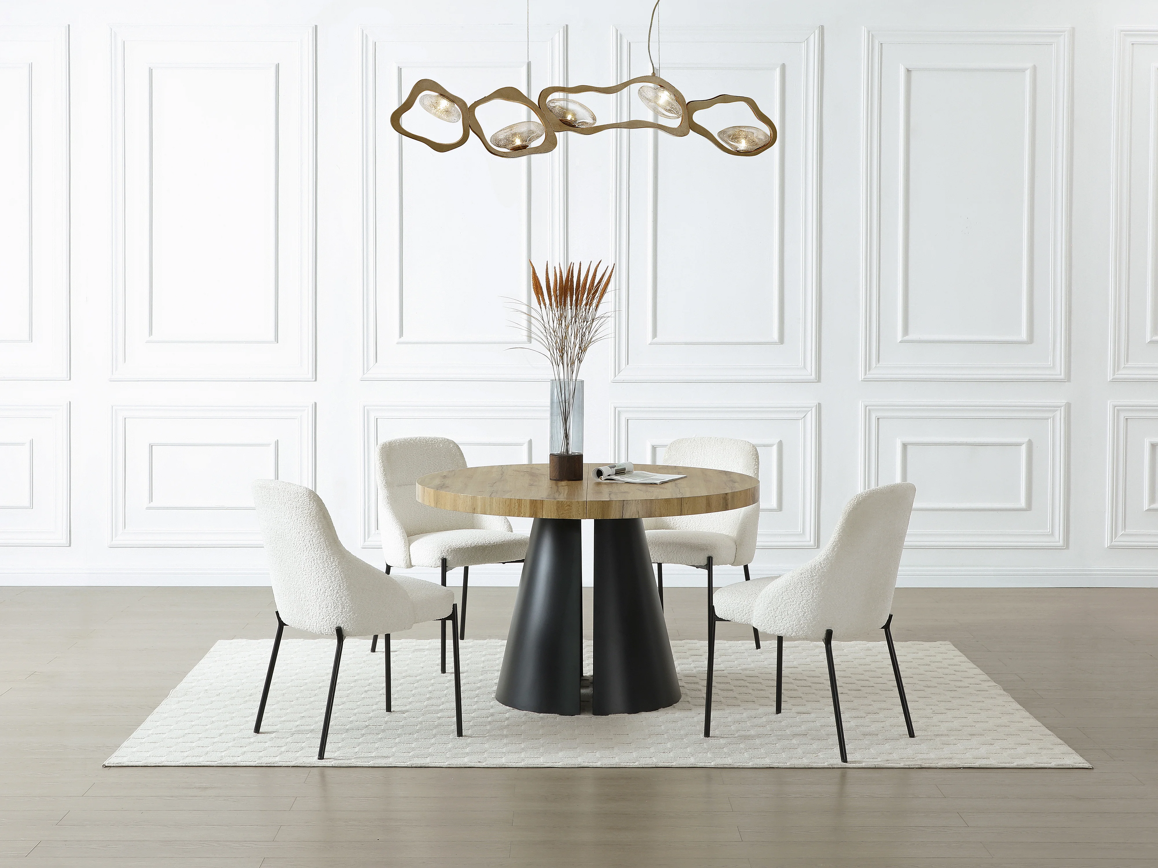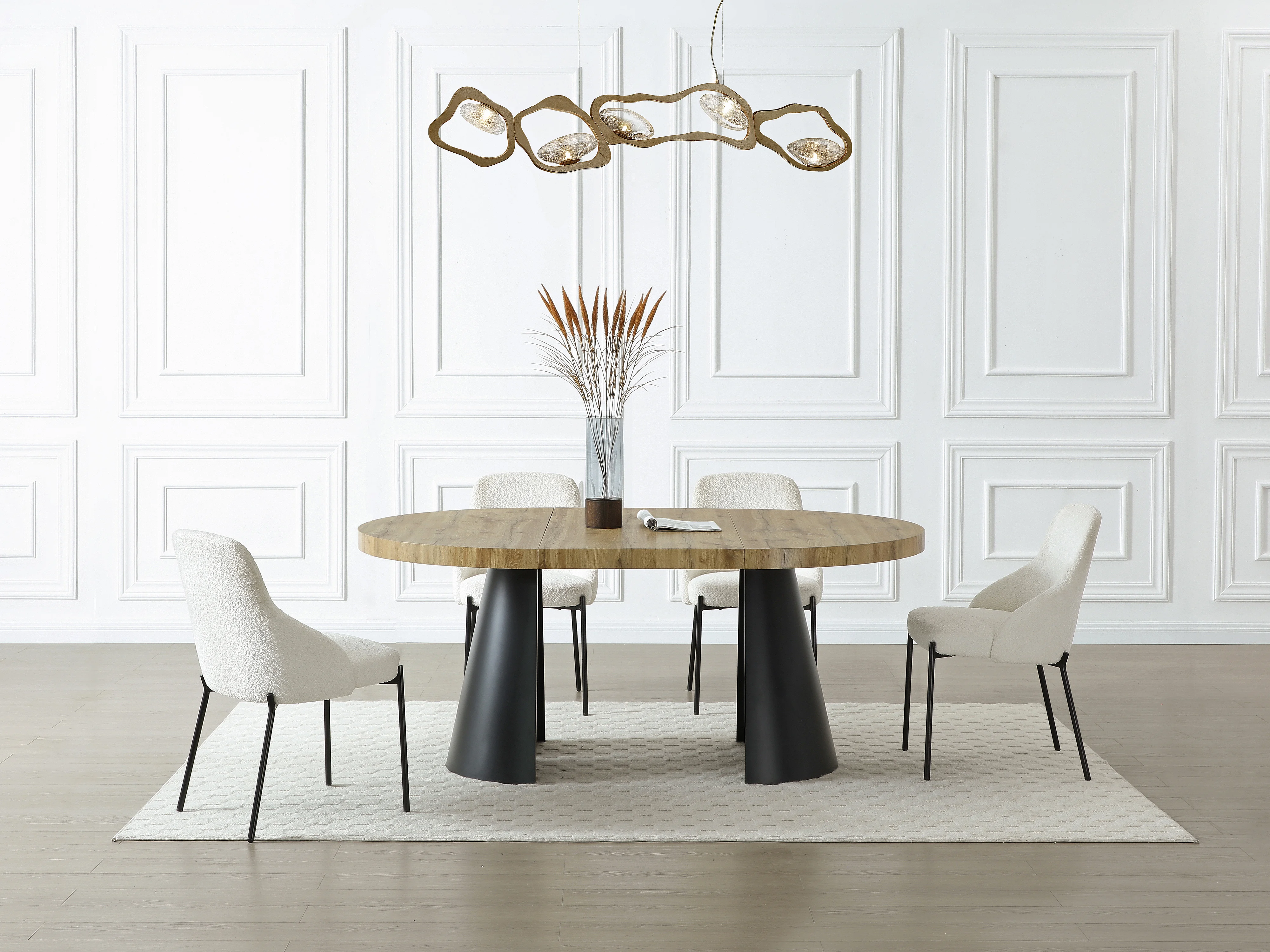Esstisch ausziehbar - 4 bis 12 Personen - MDF & schwarzes Metall - Holzfarben hell - JARELIA