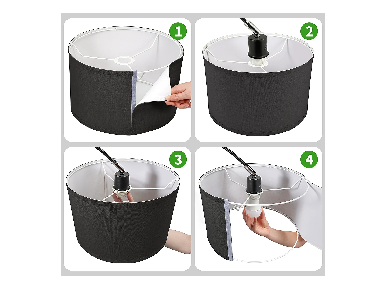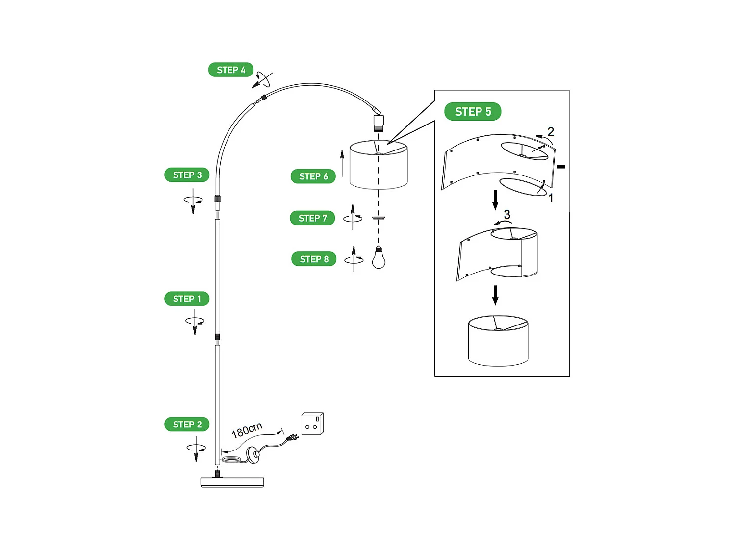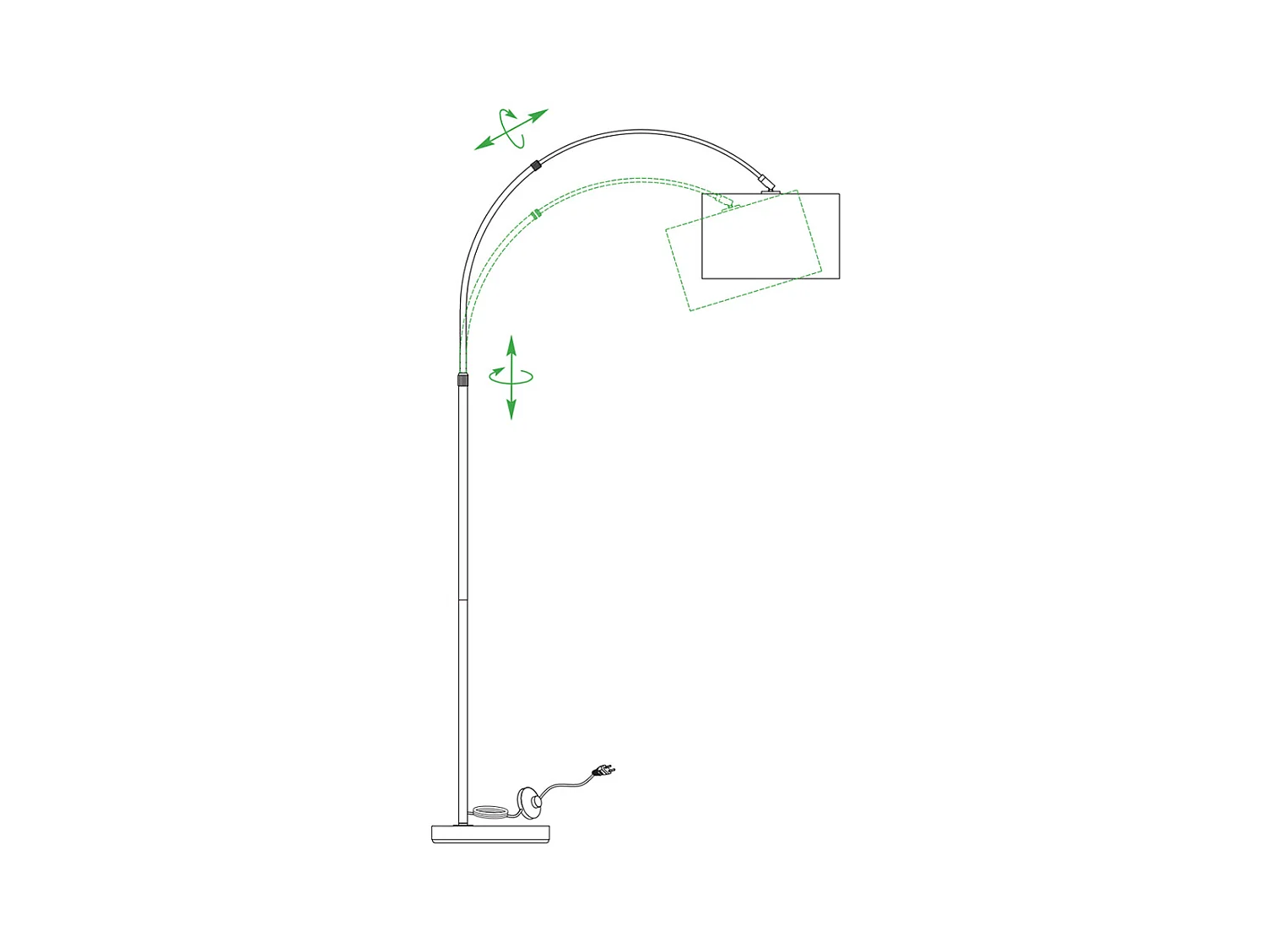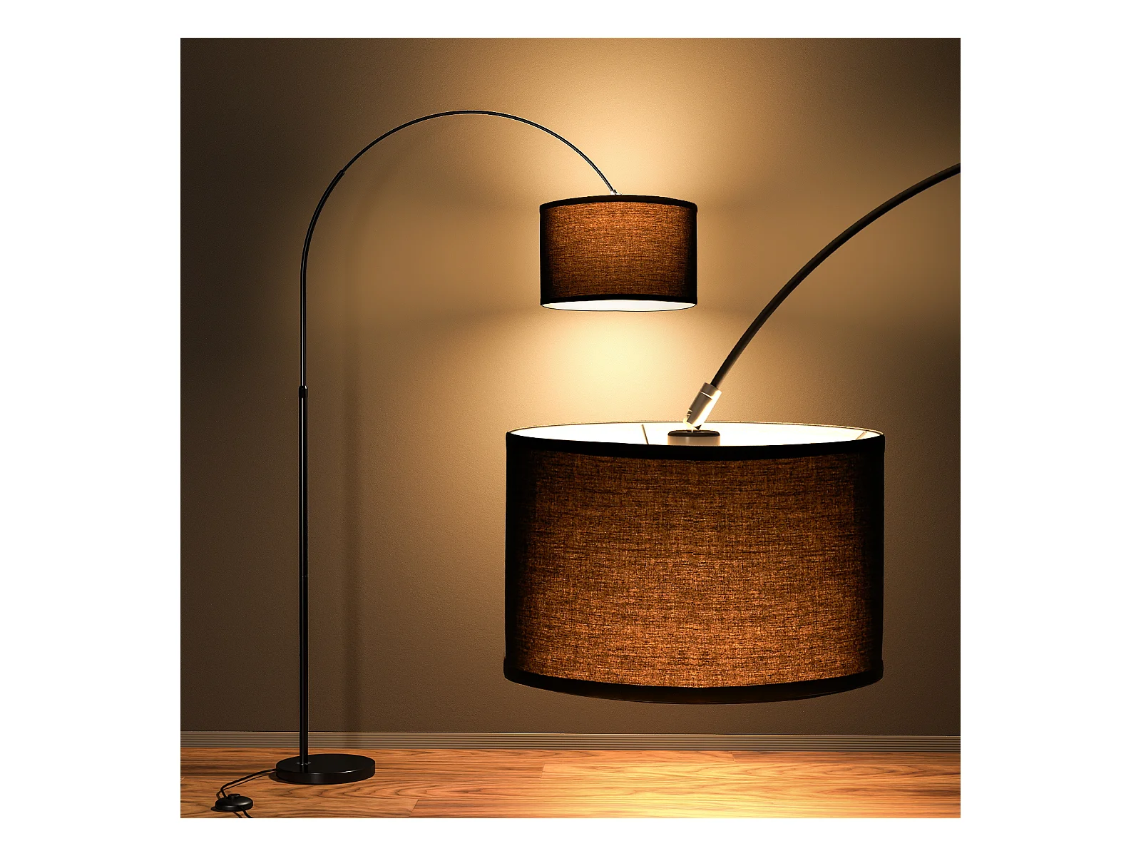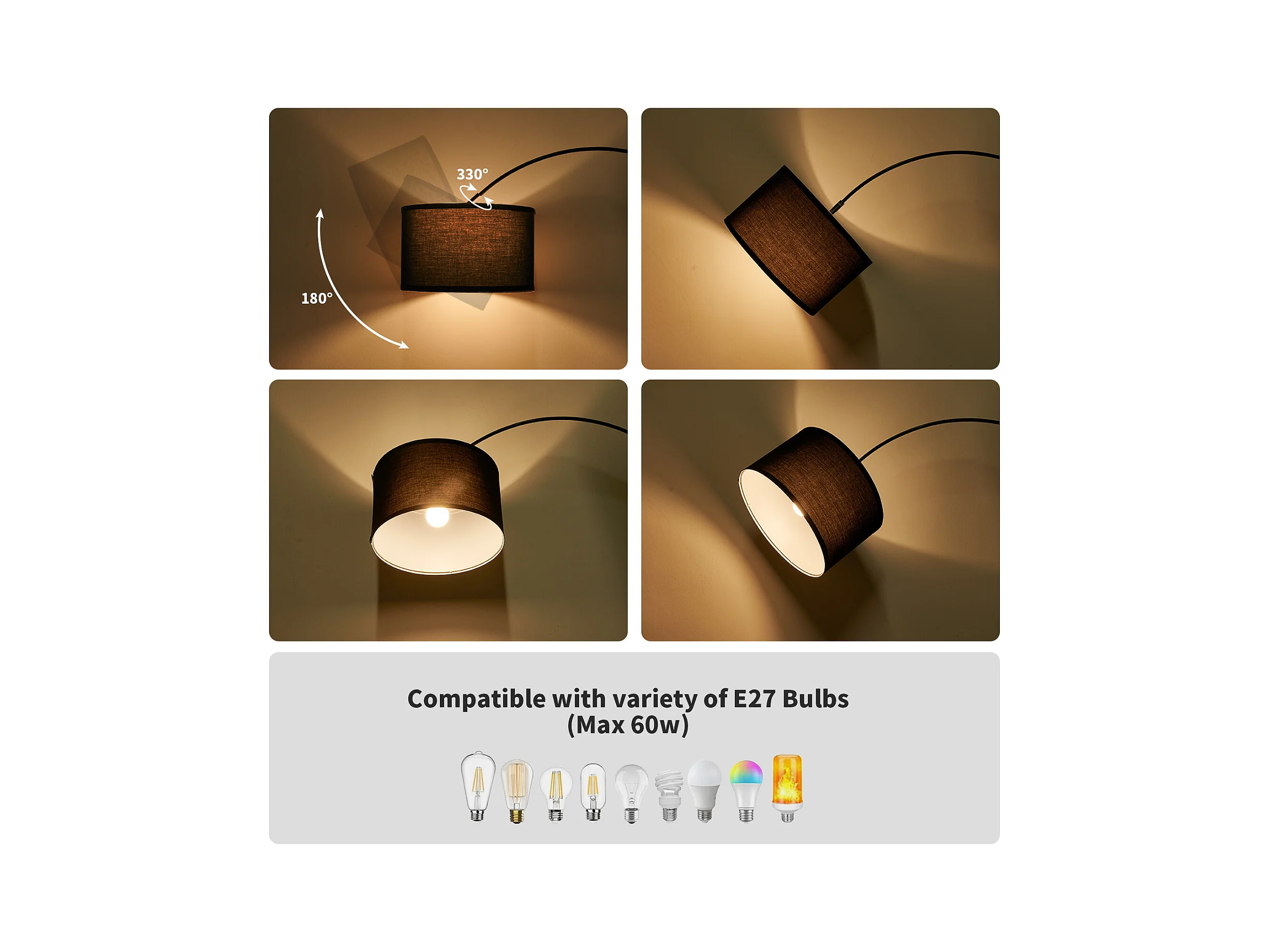 JASMIN Bogen-Stehleuchte | Klassische Stehlampe | E27 9 W 3000 K LED-Birne enthalten | 33 cm schwarzer Lampenschirm | Fußschalter für Schlafzimmer/Büro/Hotel