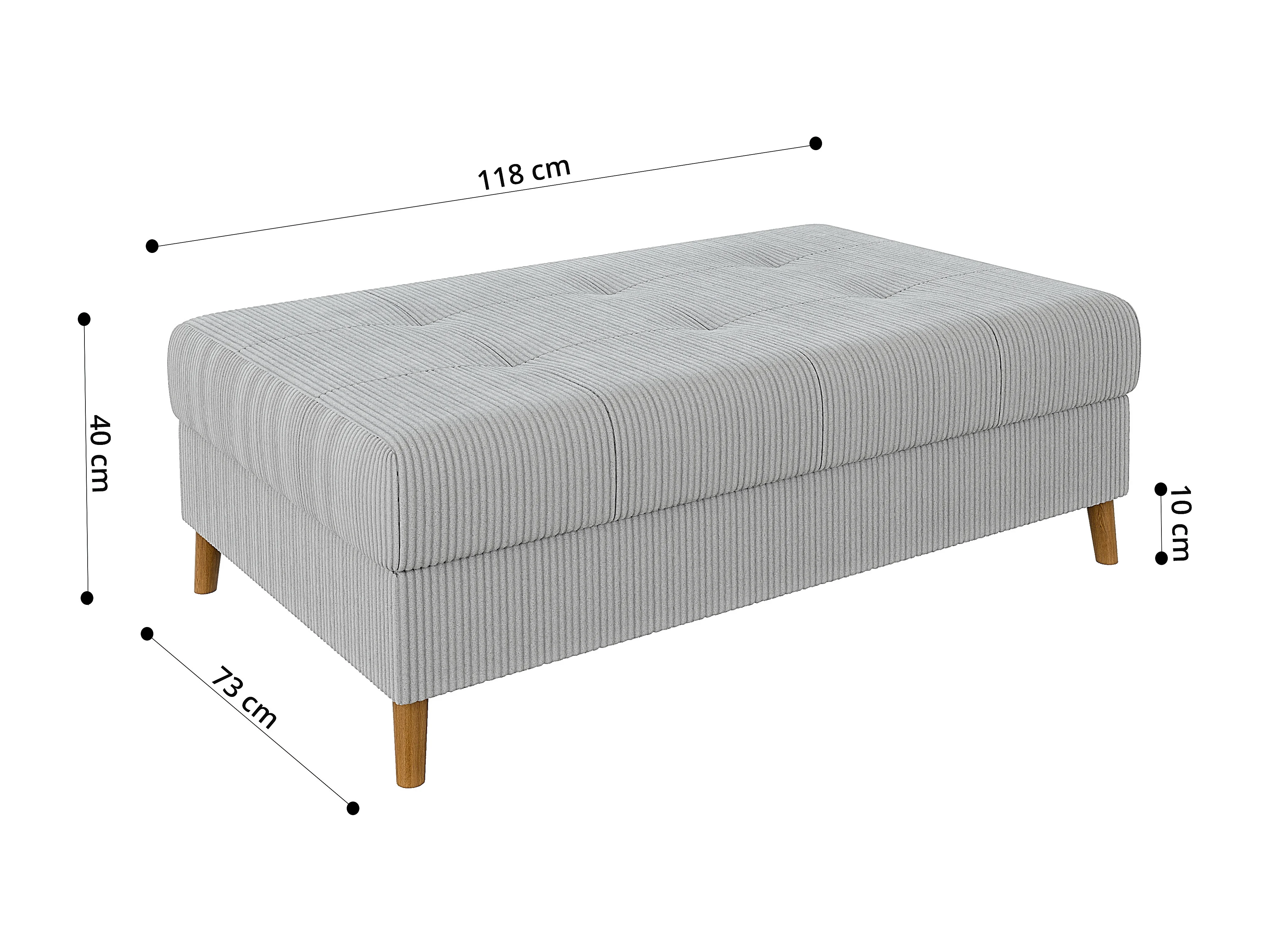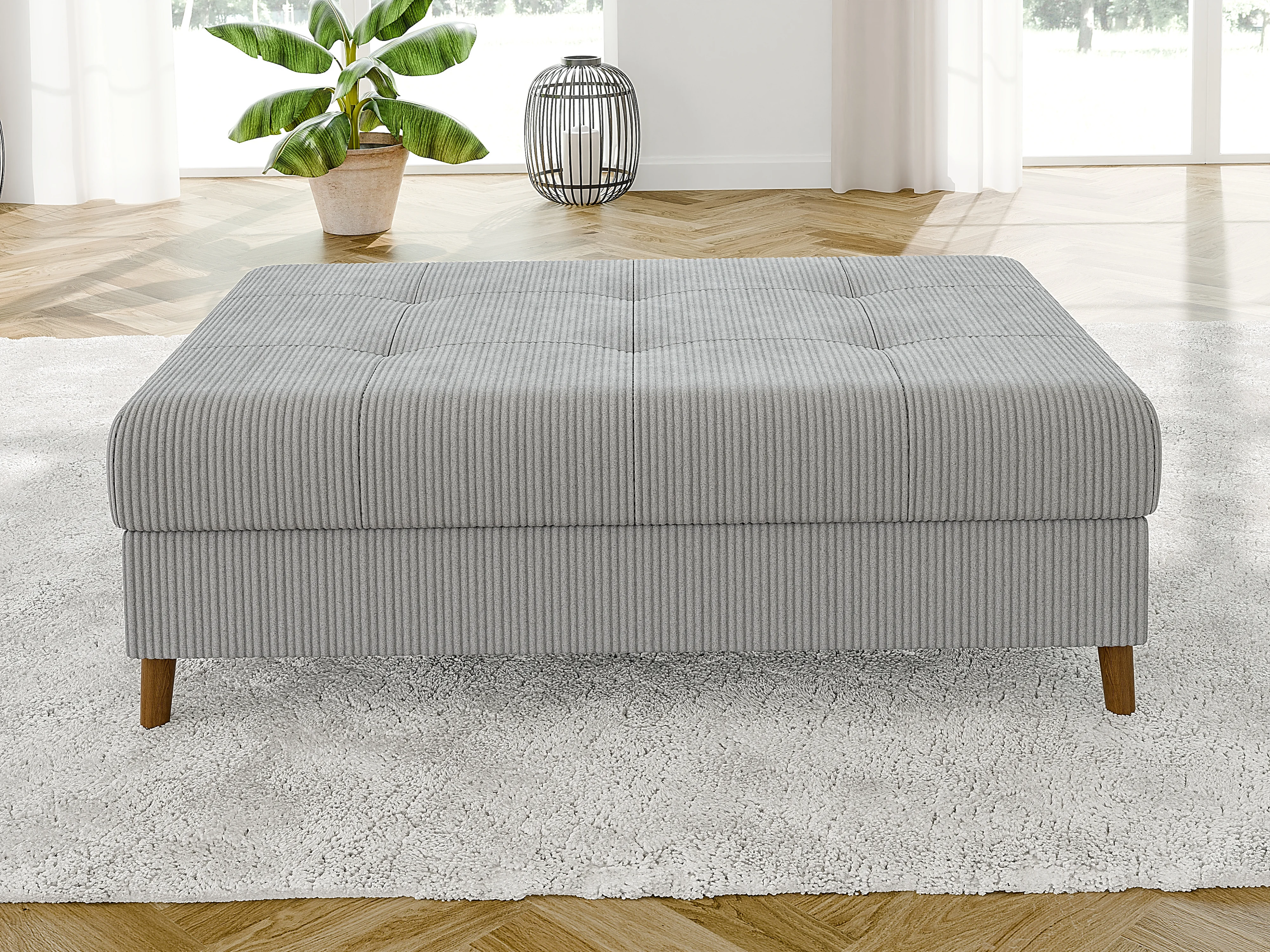 Jasper - Hocker mit Braun Holzfüßen im skandinavischen Stil aus Hellgrau Cord-Stoff