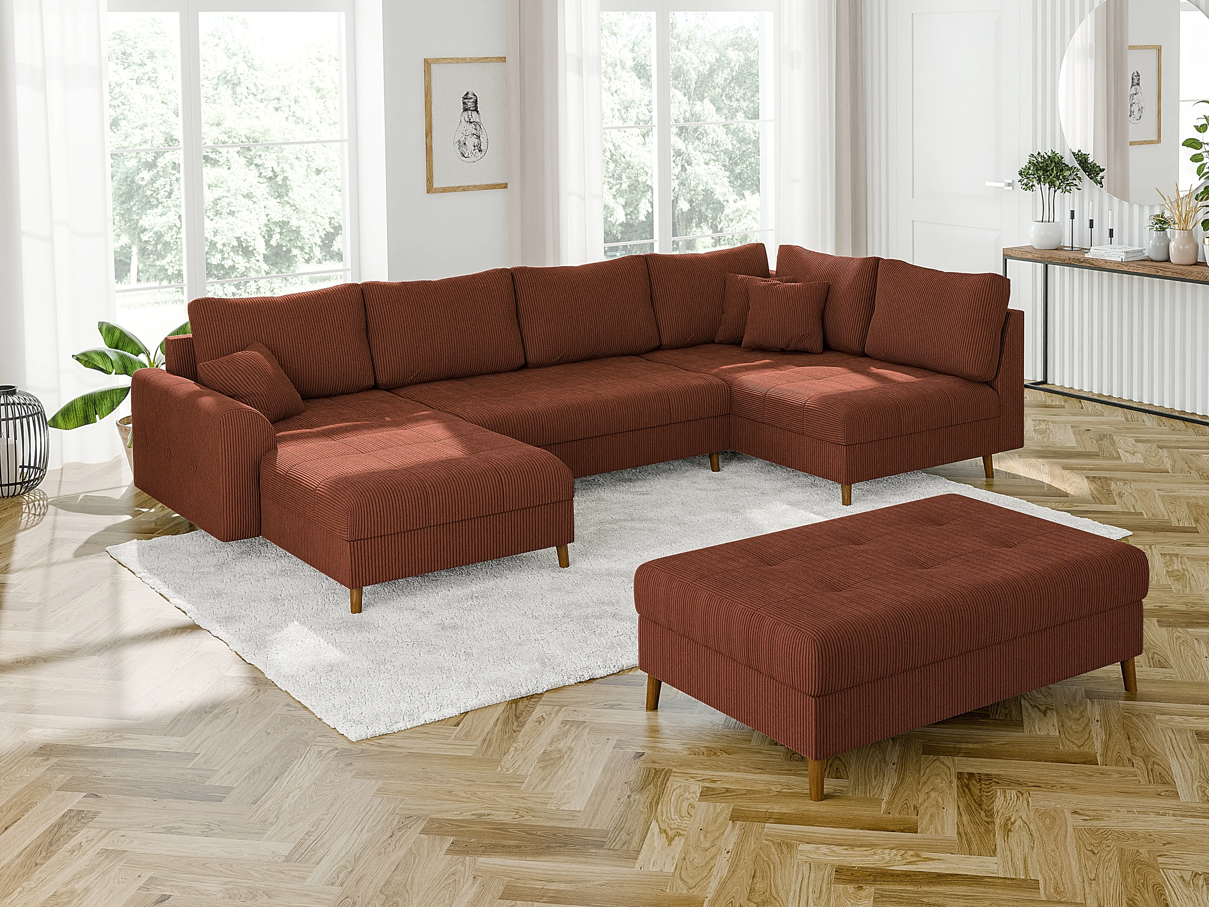 Jasper - Hocker mit Braun Holzfüßen im skandinavischen Stil aus Terracotta Cord-Stoff