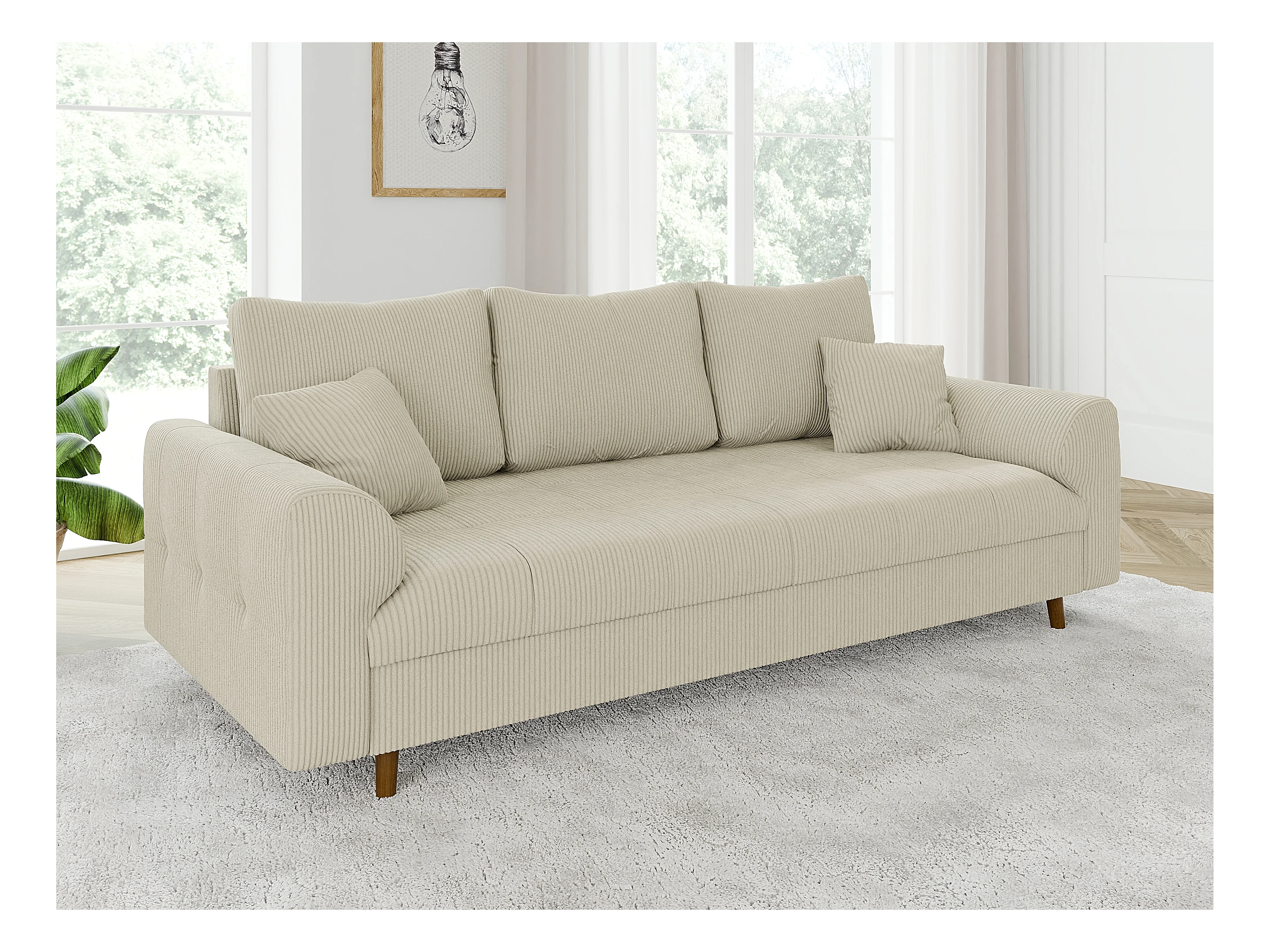 Jasper - Polstergarnitur 3+2 mit Braun Holzfüßen im skandinavischen Stil aus Beige Cord-Stoff