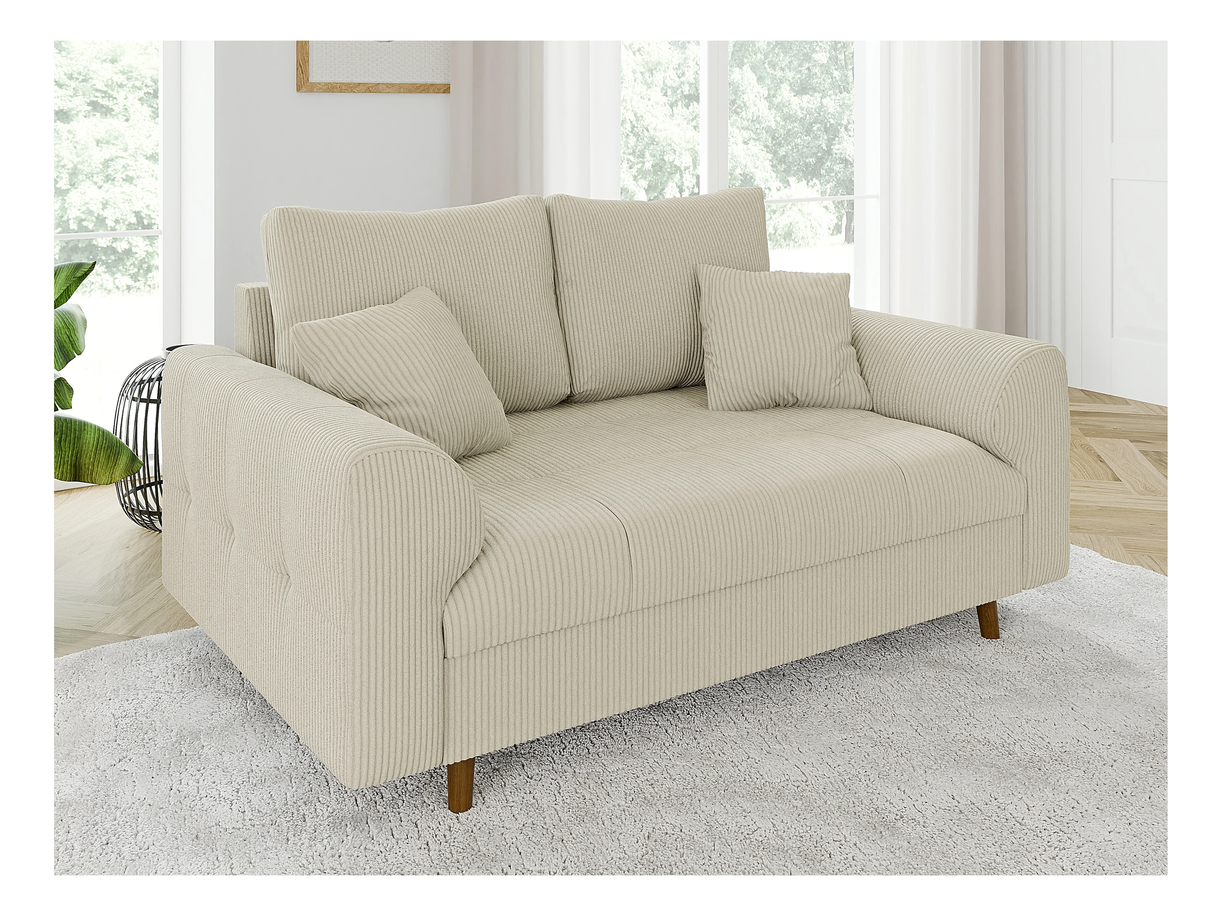Jasper - Sofa 2 sitzer mit Braun Holzfüßen im skandinavischen Stil aus Beige Cord-Stoff