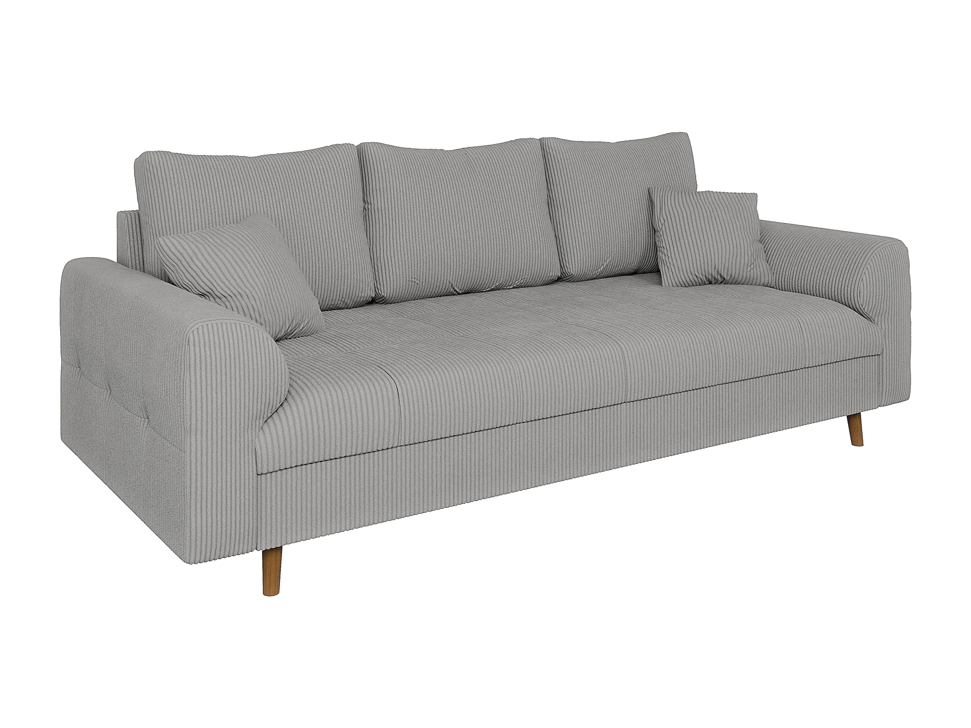 Jasper - Sofa 3 sitzer mit Braun Holzfüßen im skandinavischen Stil aus Hellgrau Cord-Stoff