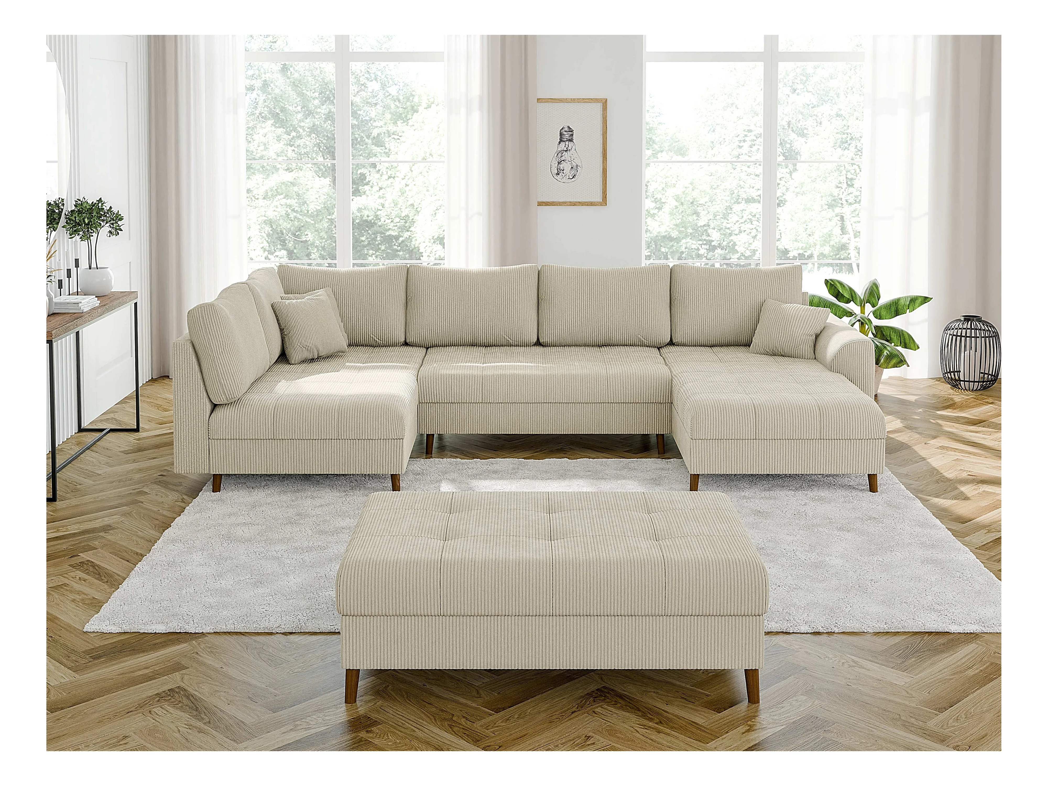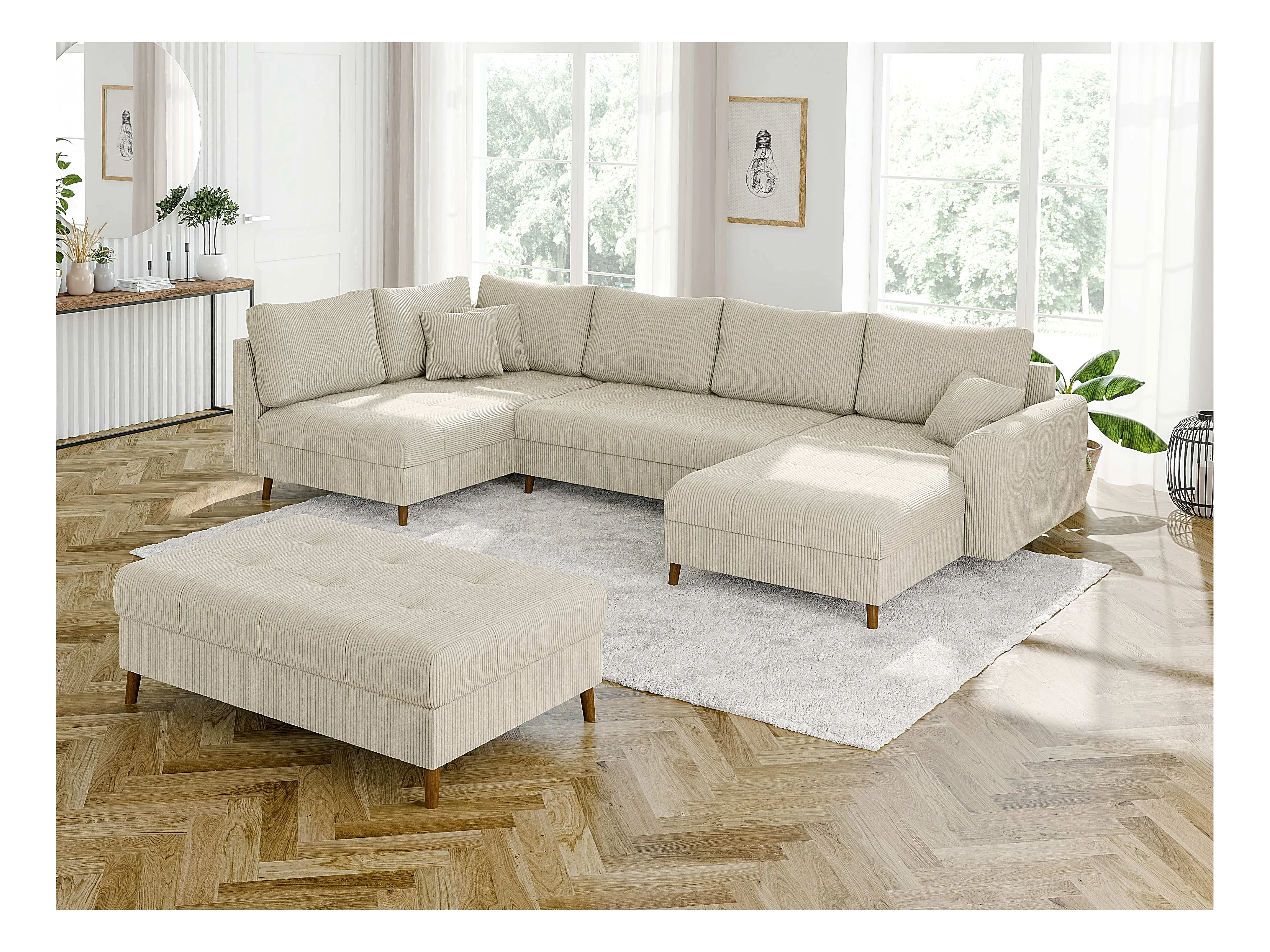 Jasper - Wohnlandschaft mit Braun Holzfüßen im skandinavischen Stil aus Beige Cord-Stoff, Ottomane rechts