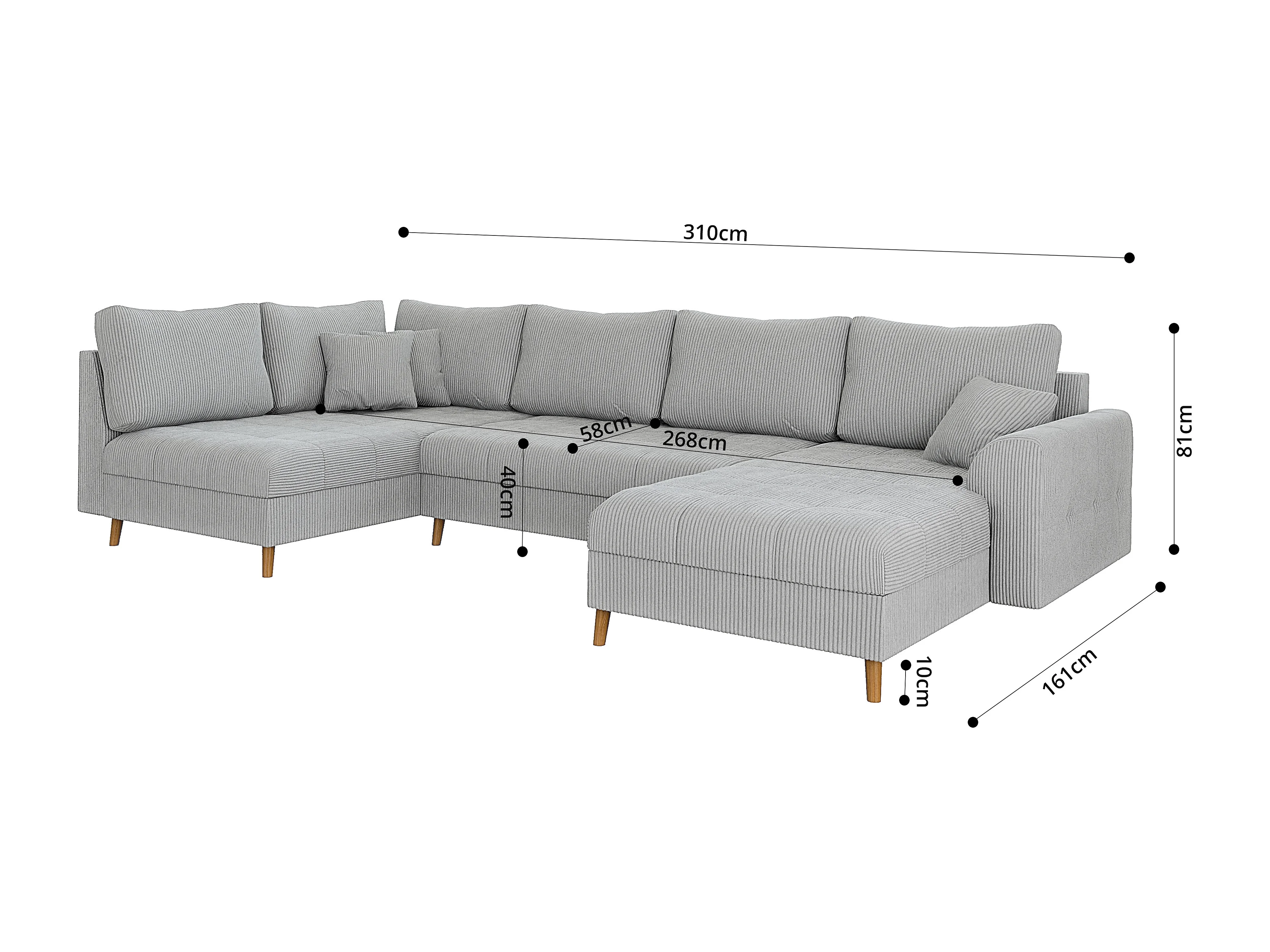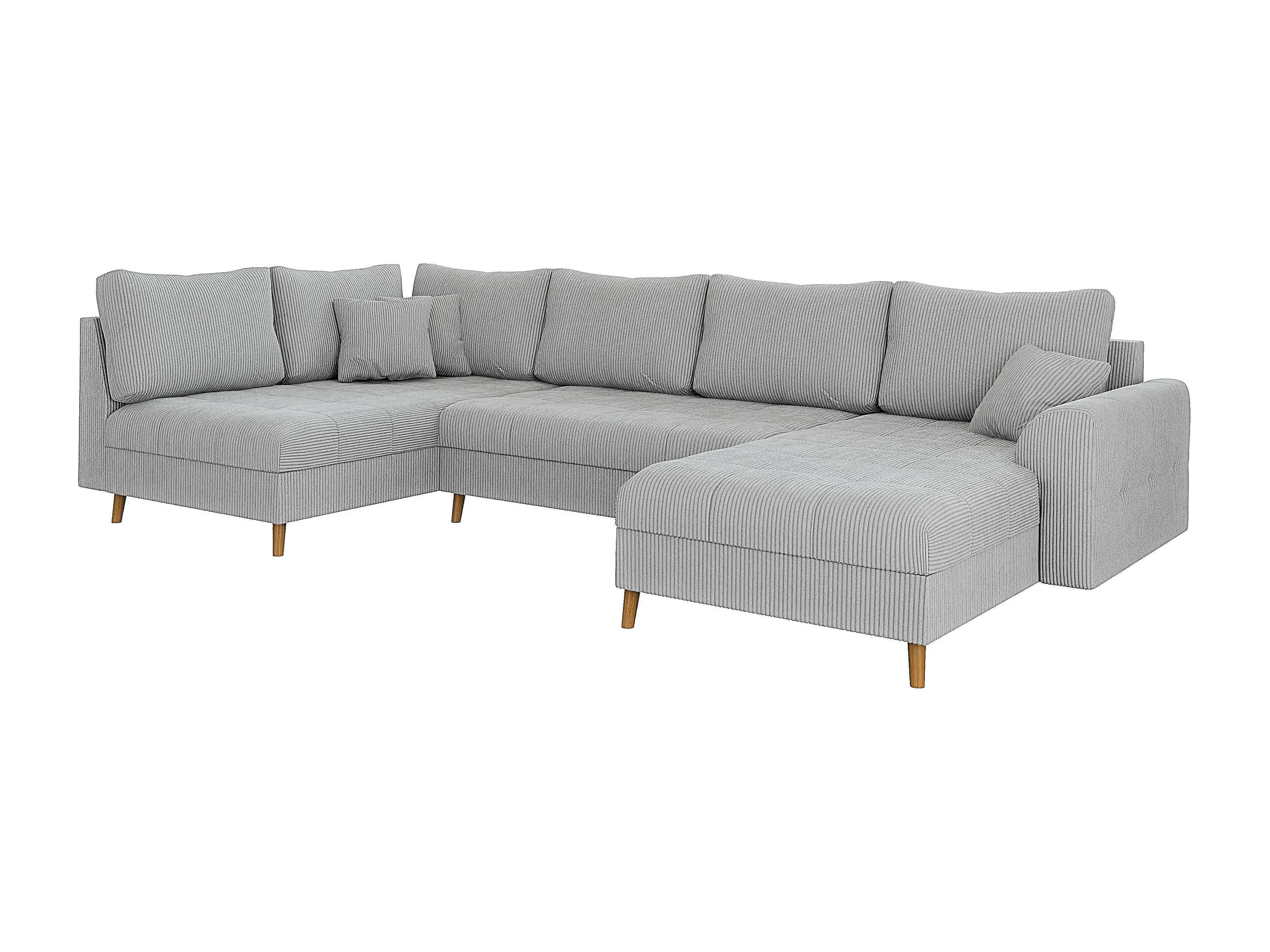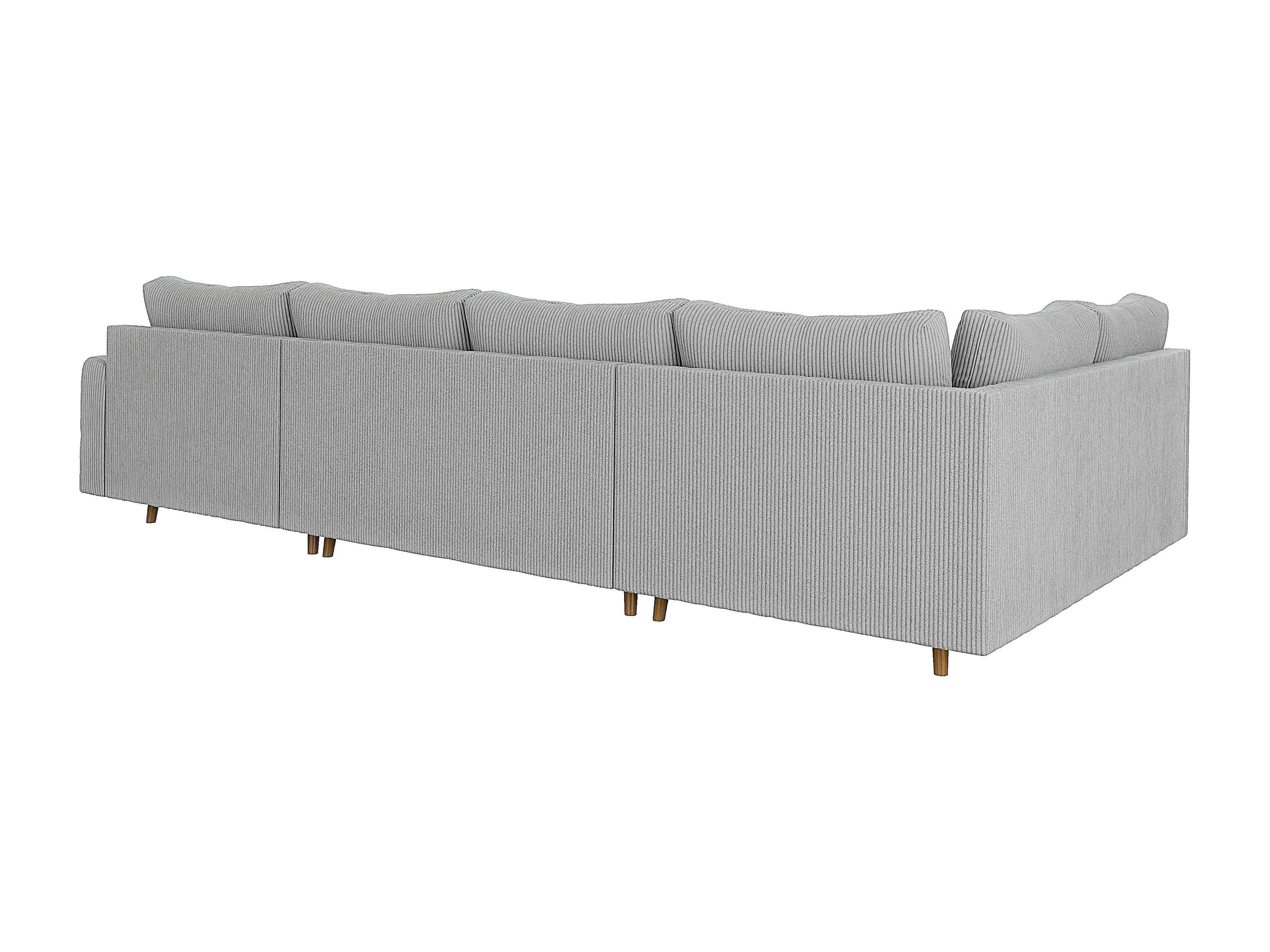 Jasper - Wohnlandschaft mit Braun Holzfüßen im skandinavischen Stil aus Hellgrau Cord-Stoff, Ottomane rechts