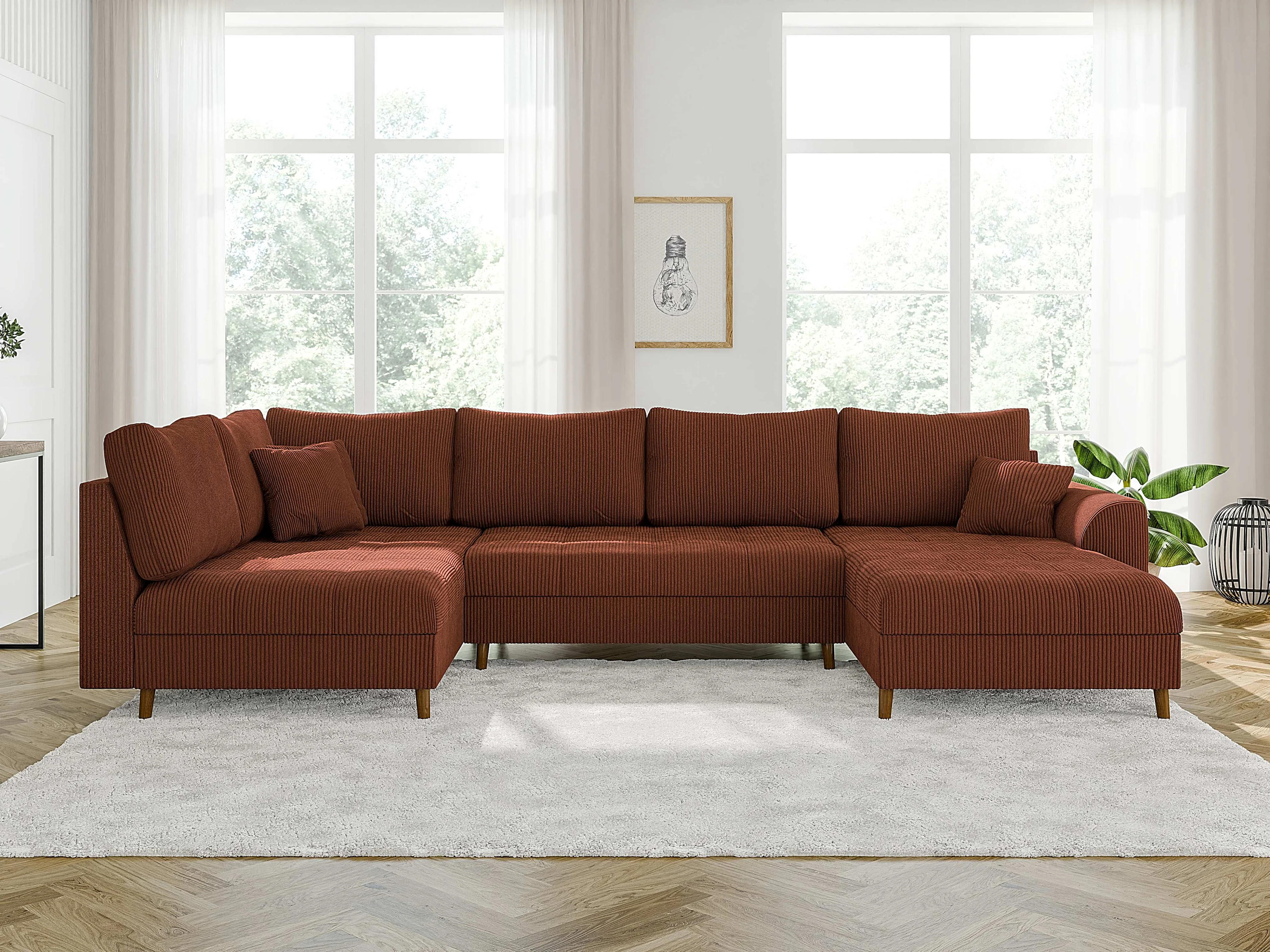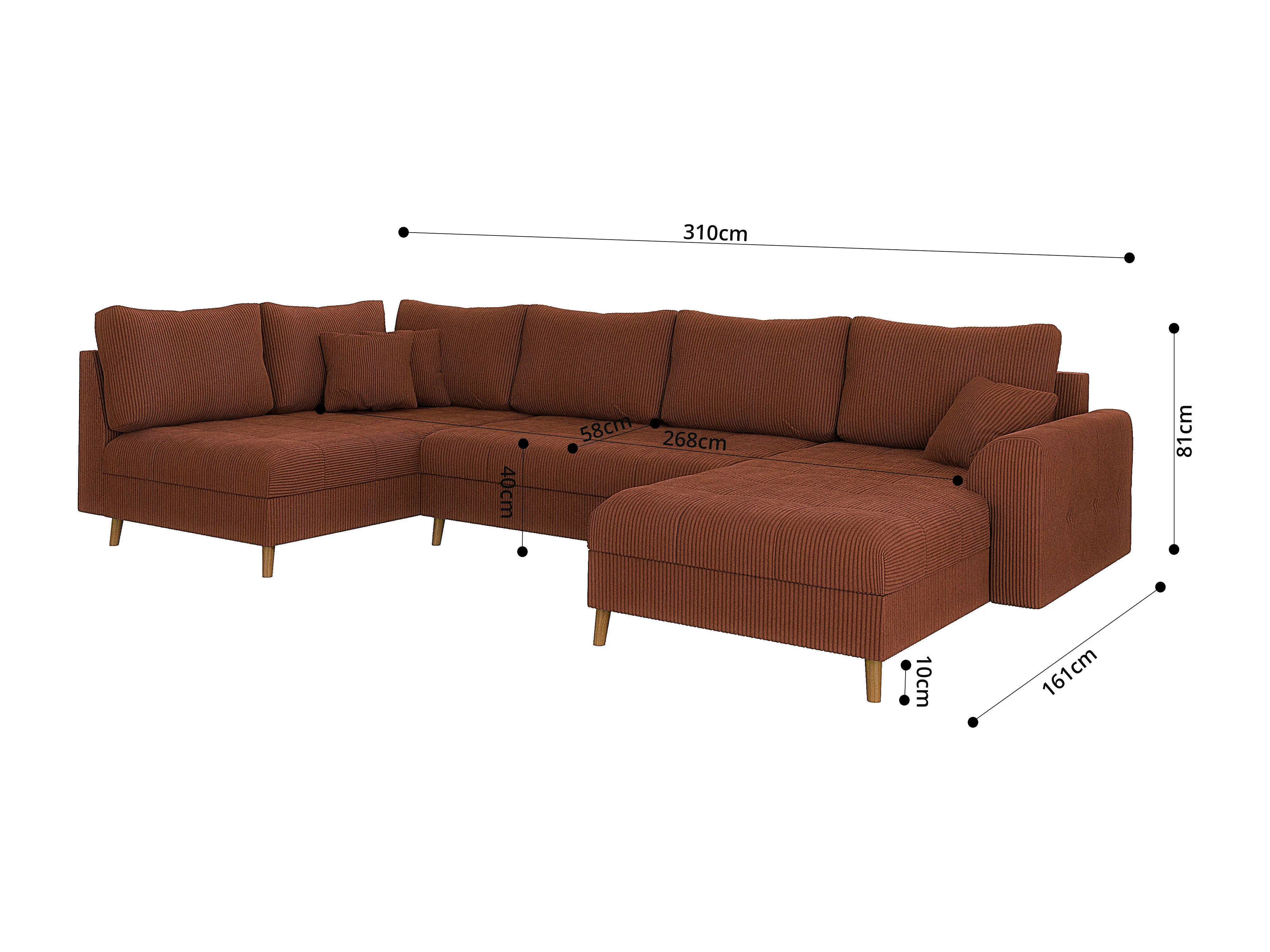 Jasper - Wohnlandschaft mit Braun Holzfüßen im skandinavischen Stil aus Terrakotta Cord-Stoff, Ottomane rechts