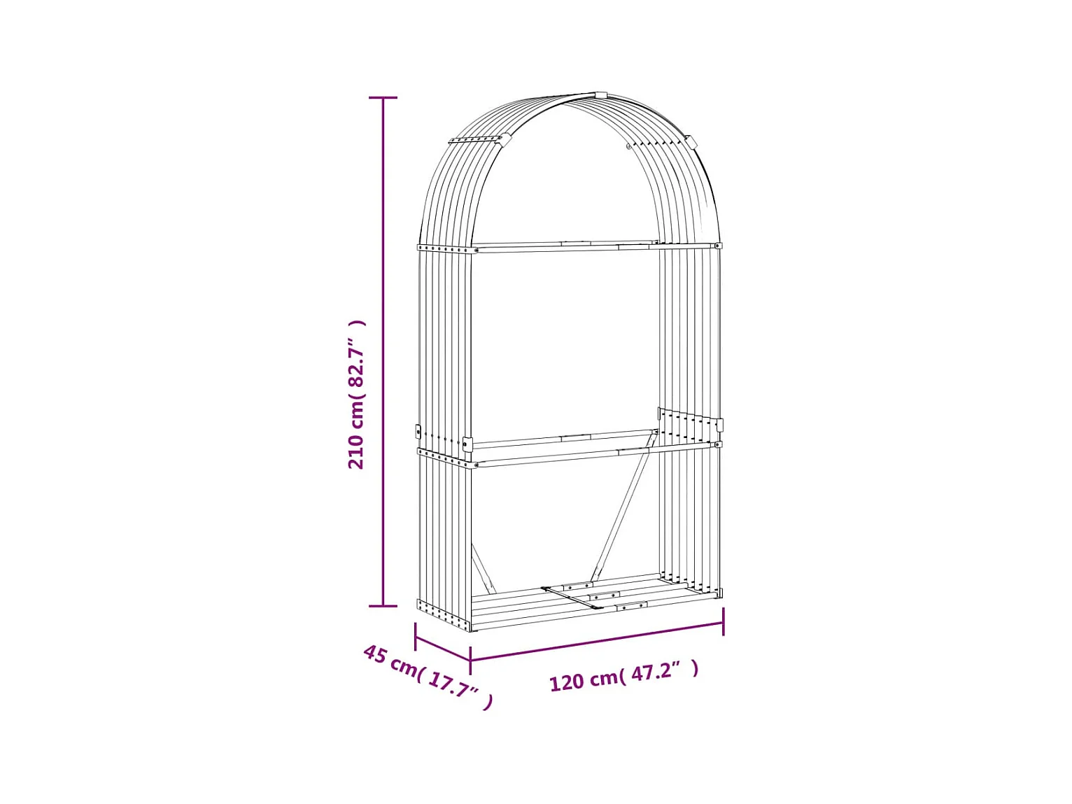 Jilles Kaminholzunterstand Holzoptik 120x45x210 cm Verzinkter Stahl