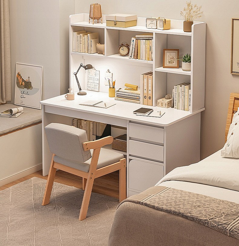 JUGEND-COMPUTERTISCH WEISS MIT REGAL, REGALBÖDEN UND SCHUBLADEN