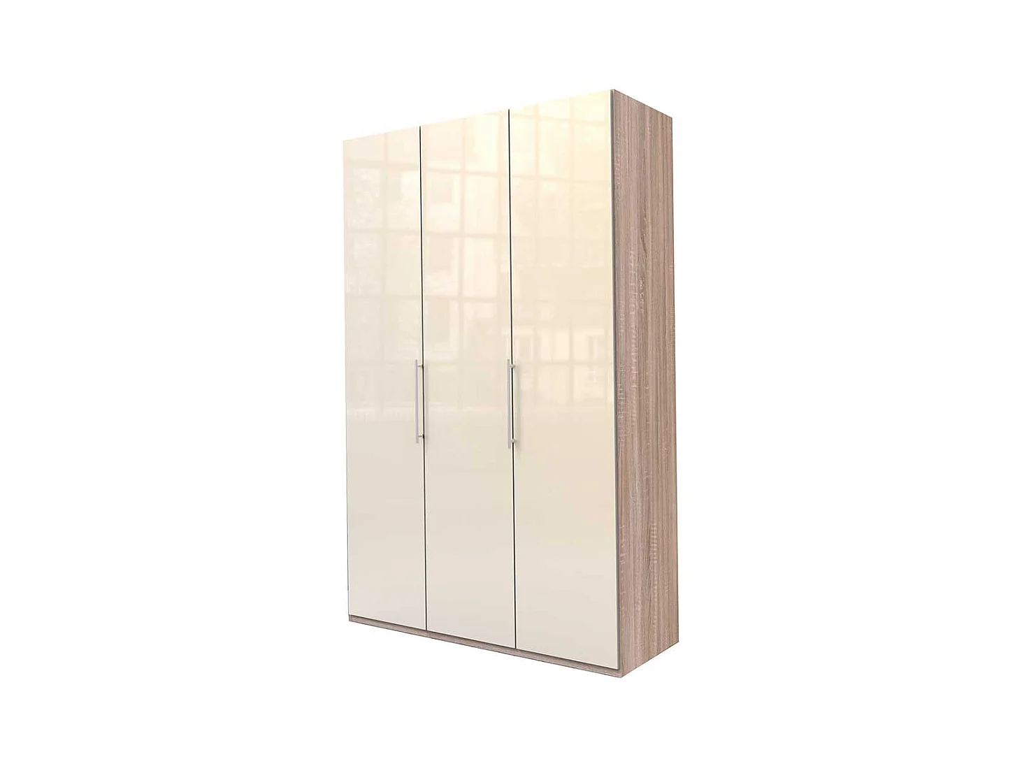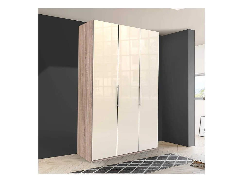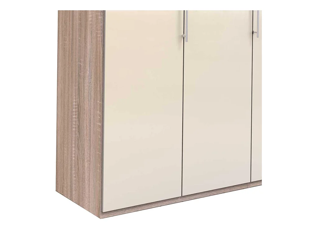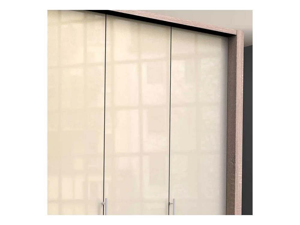 Jugend Kleiderschrank in Cremefarben und Eiche Sägerau glasbeschichtet