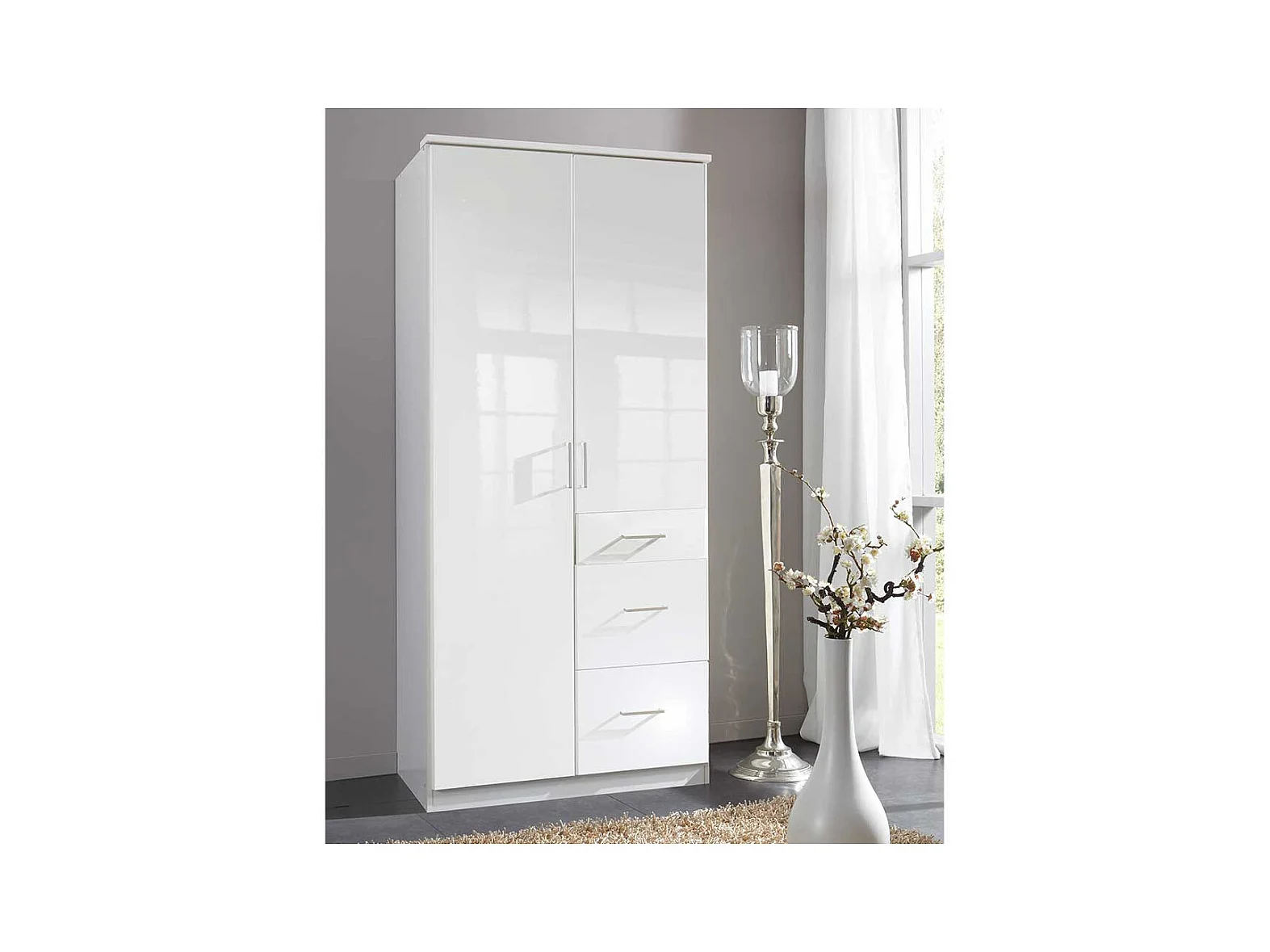 Jugend Kleiderschrank Weiß Hochglanz Front drei Schubladen
