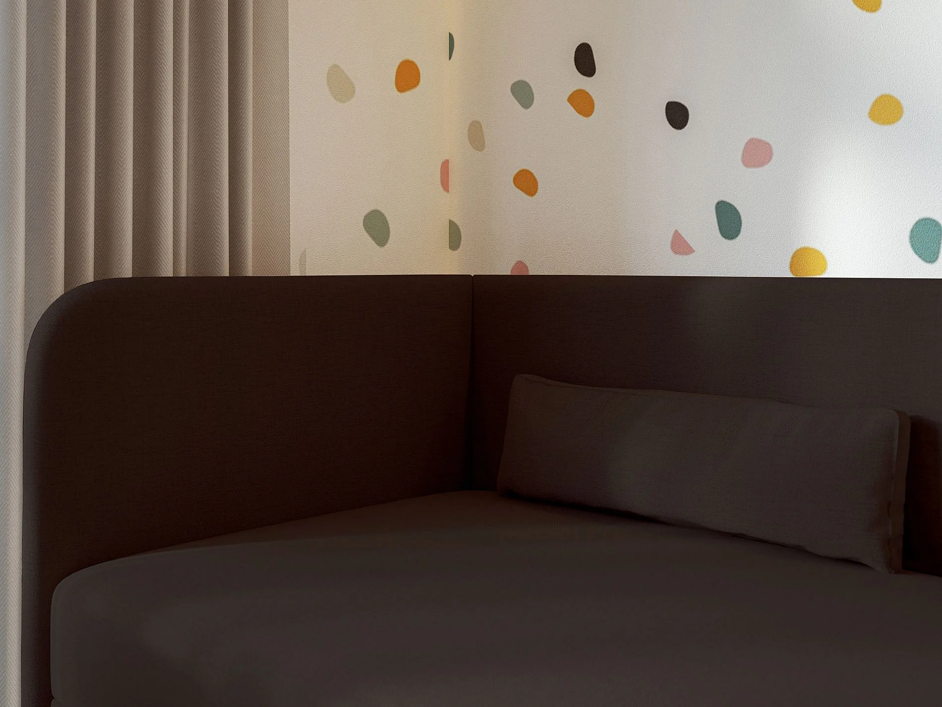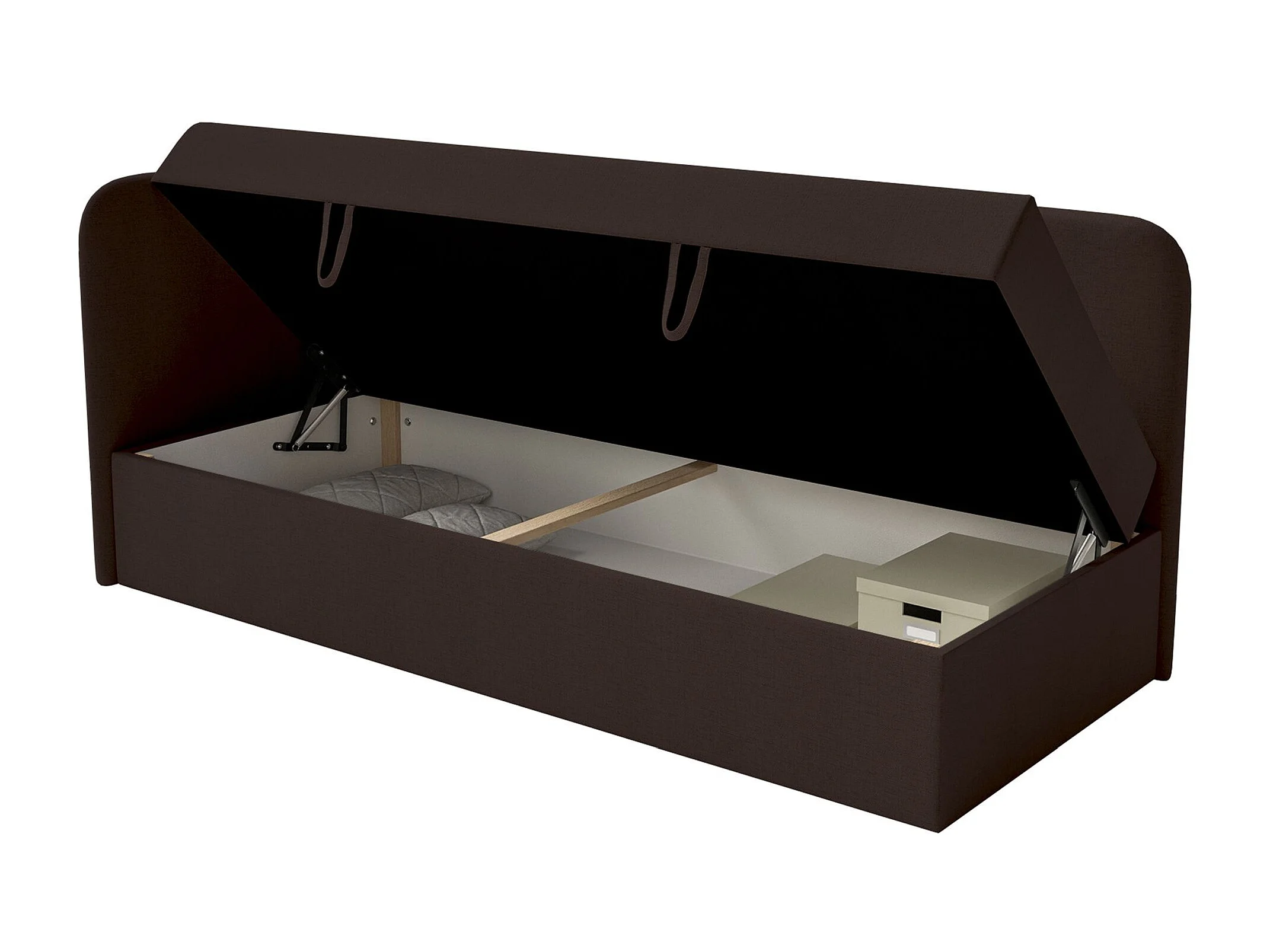 Jugendbett 90x200 mit Bettkasten – Chenille-Bezug – Kopfteil links – Dunkelbraun – CALMMO