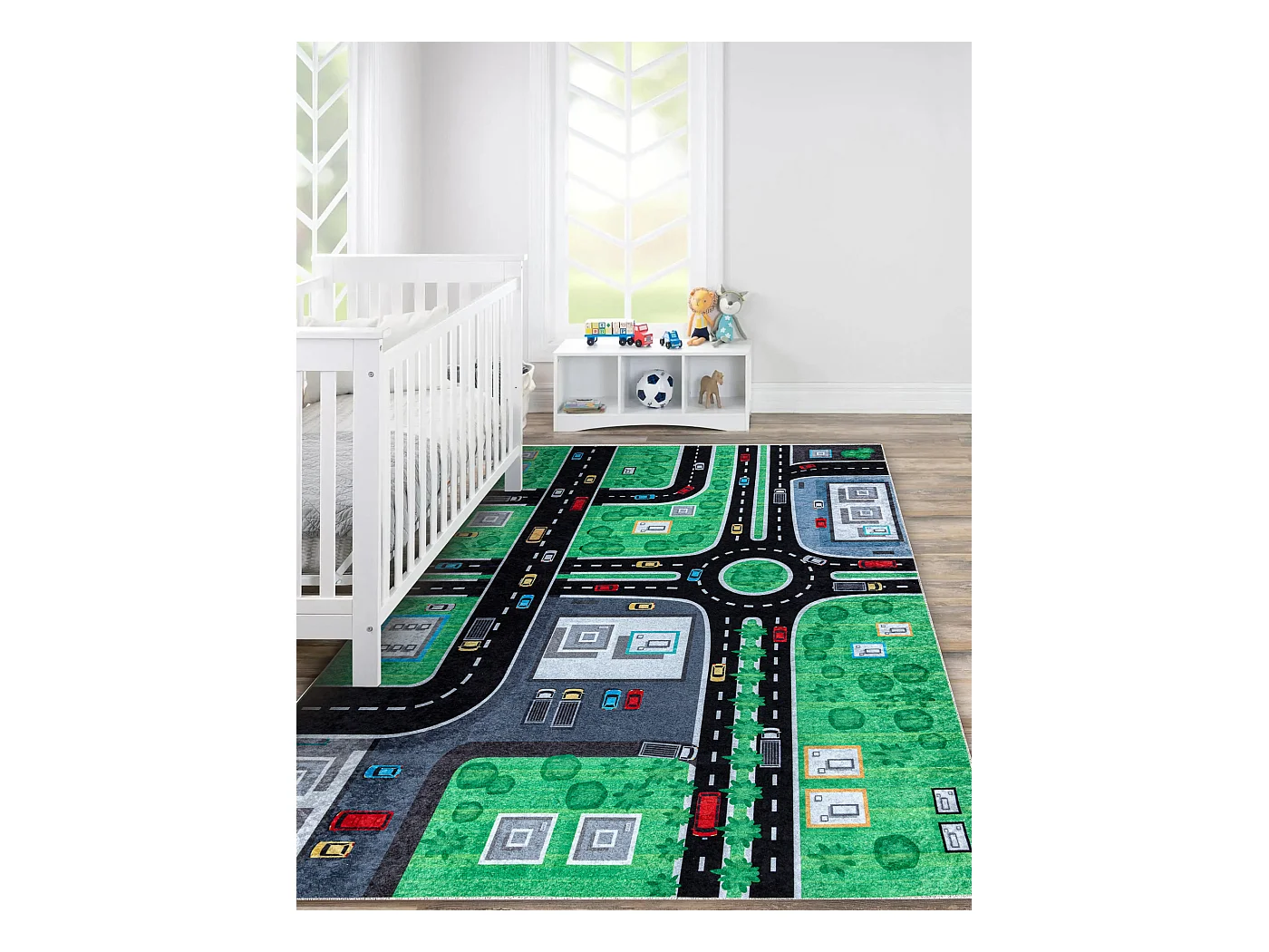 JUNIOR 52052.802 Stadt, Straßen für Kinder Anti-Rutsch - grün / sch 80x150 cm