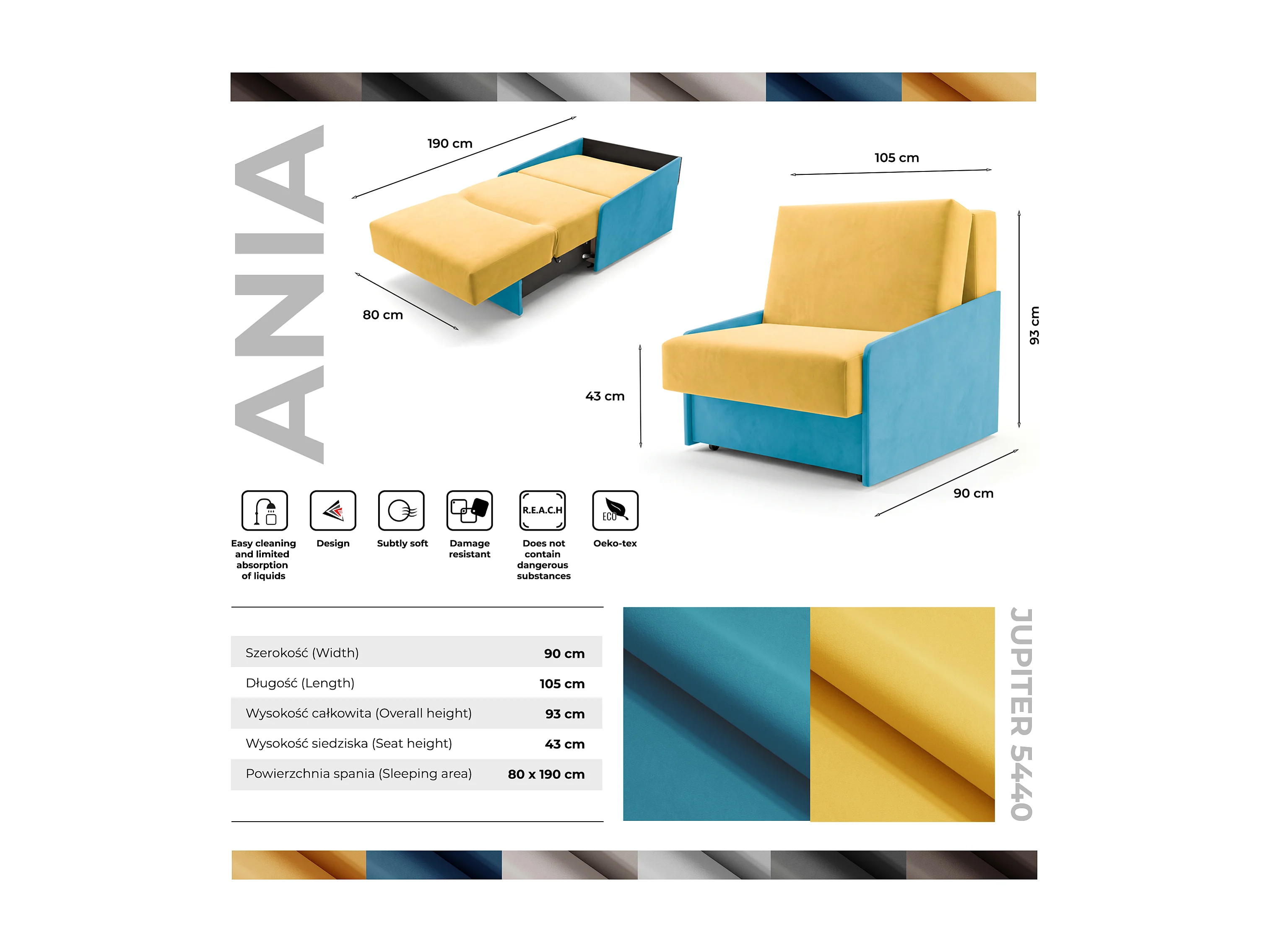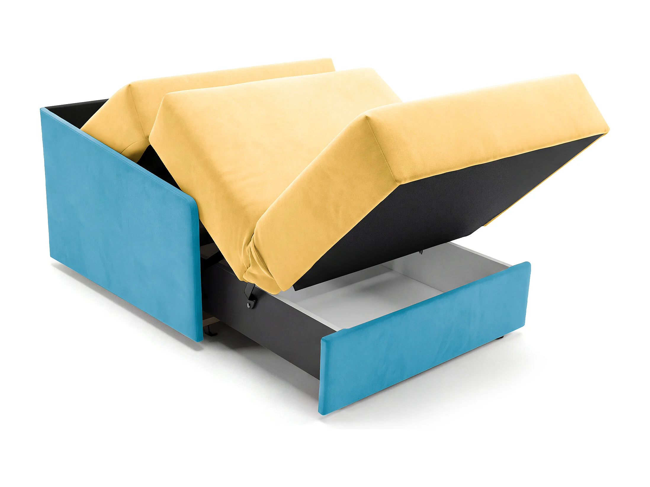 Jupiter Schlafsessel mit Bettkasten & Schlaffunktion 90x105 cm Samt-Velvet Gelb/Türkis