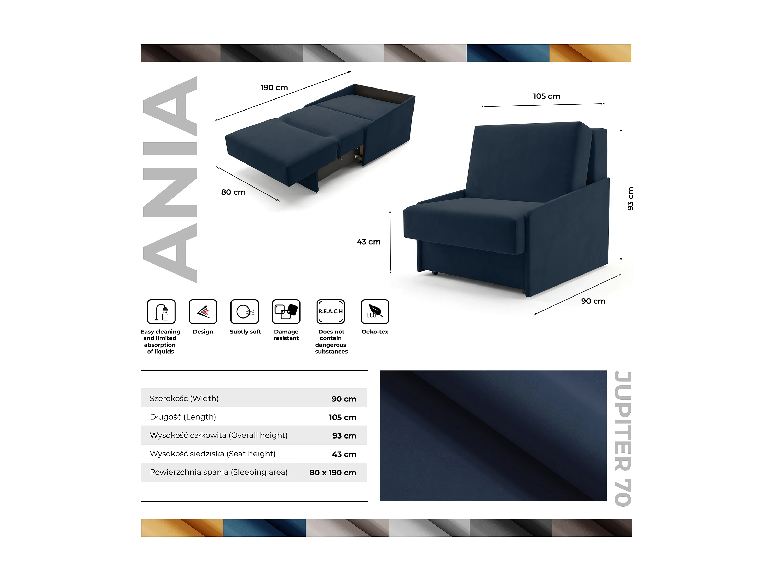 Jupiter Schlafsessel mit Bettkasten & Schlaffunktion 90x105 cm Samt-Velvet Schwarz