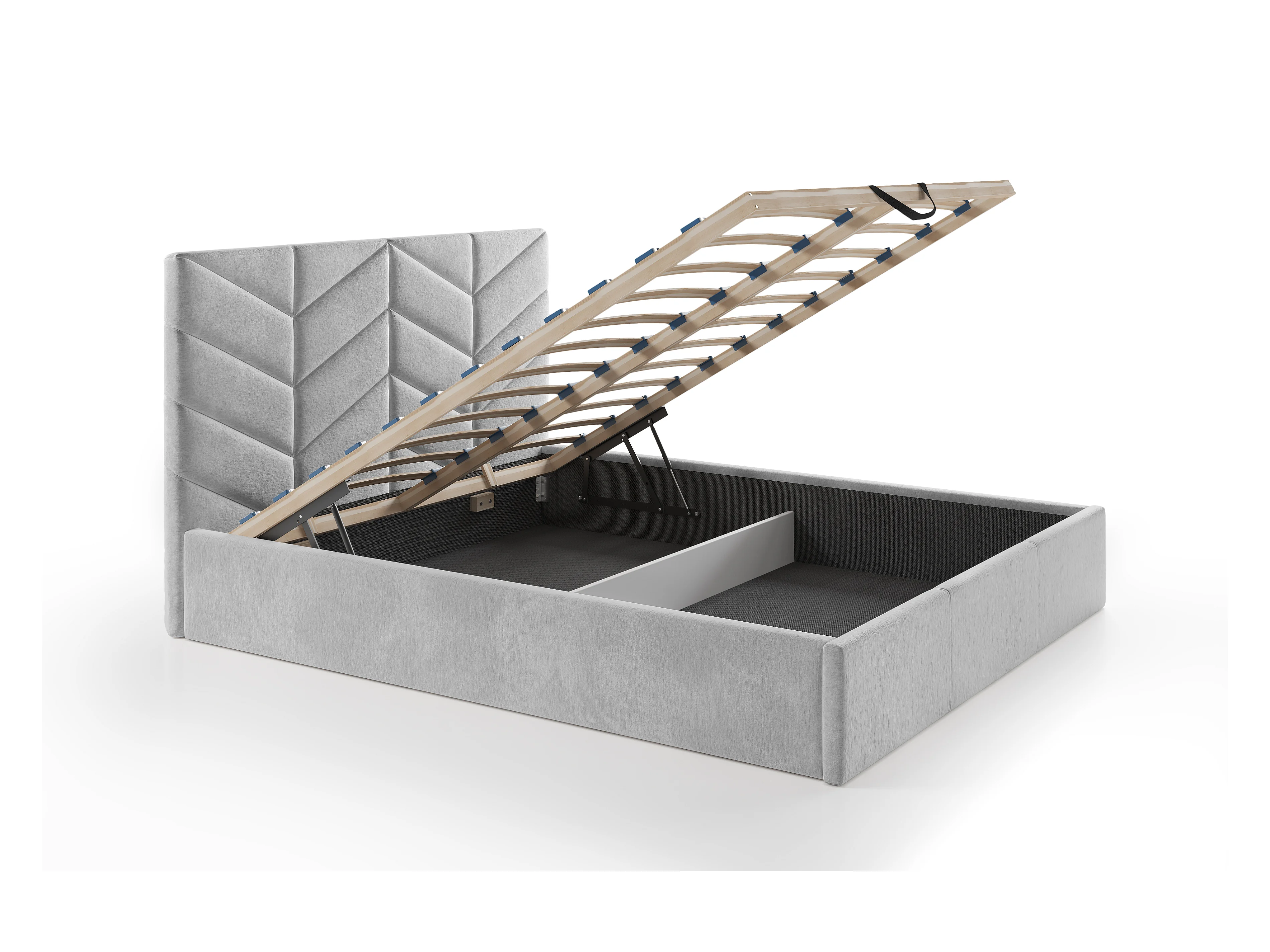 Bett mit Bettkasten + Matratze - 140 x 190 cm - Strukturstoff - Grau - JUSTANI