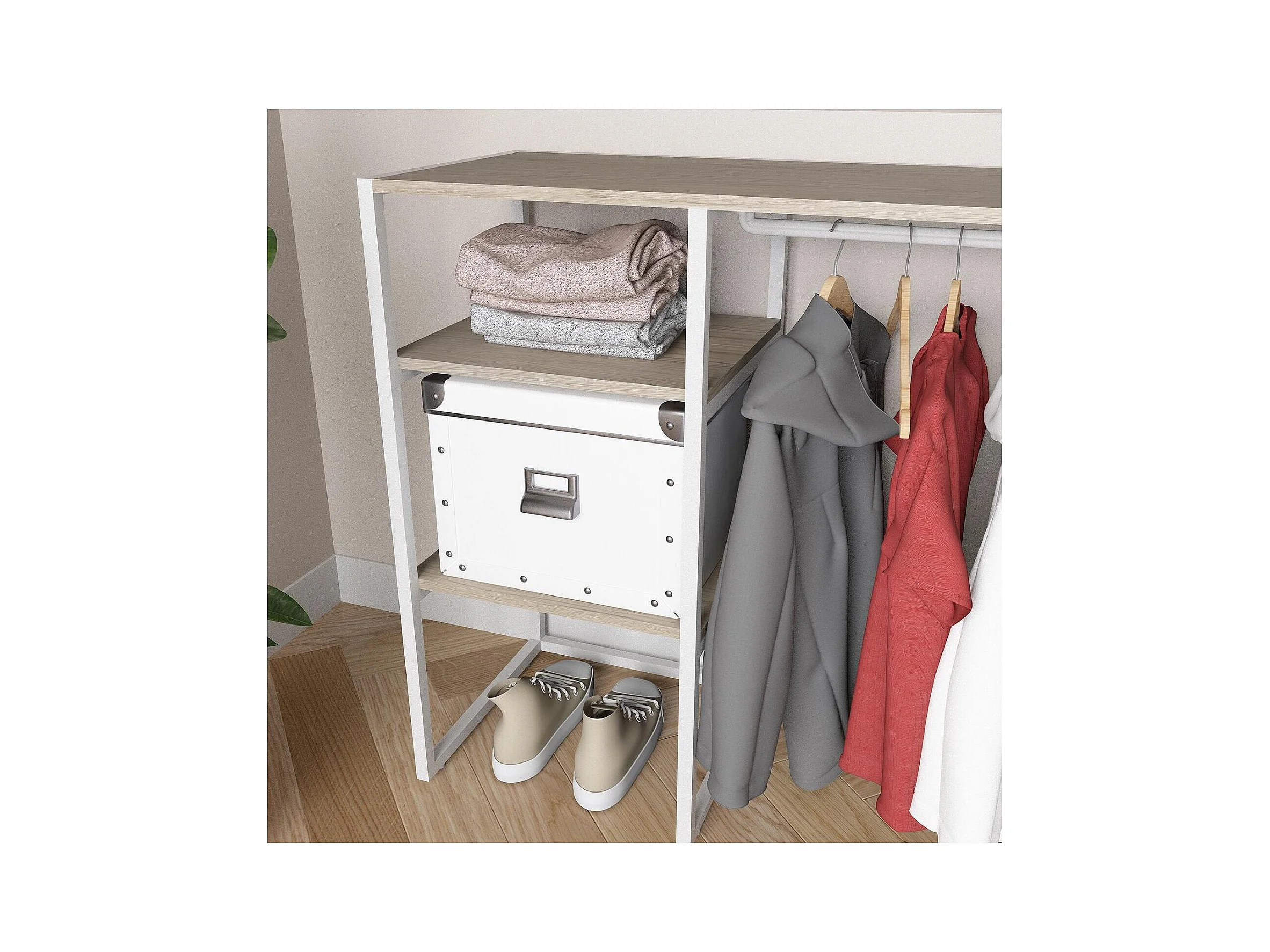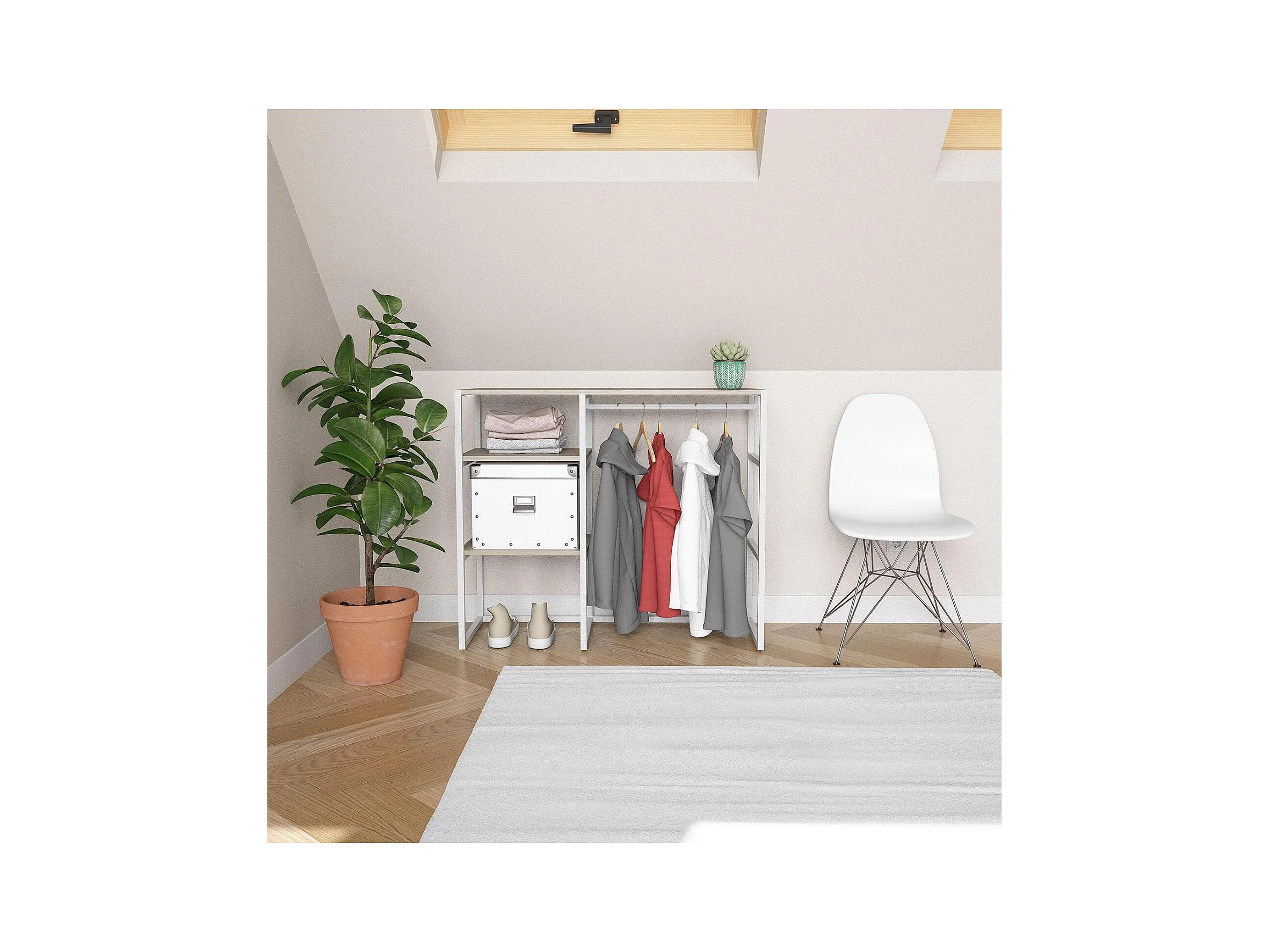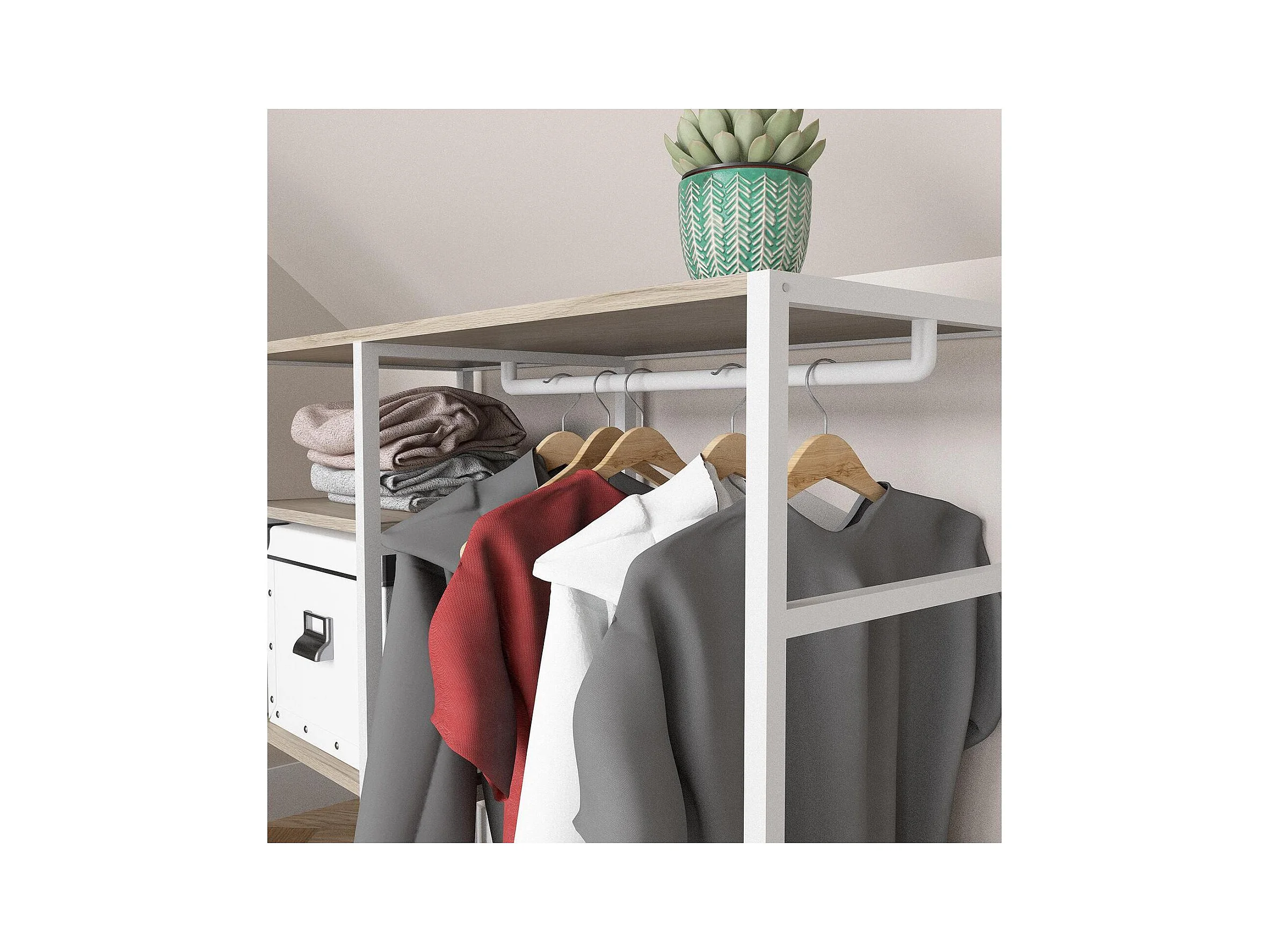 KADRA 100x85cm Dachbodenkleiderständer mit Kleiderschrank und Regalen