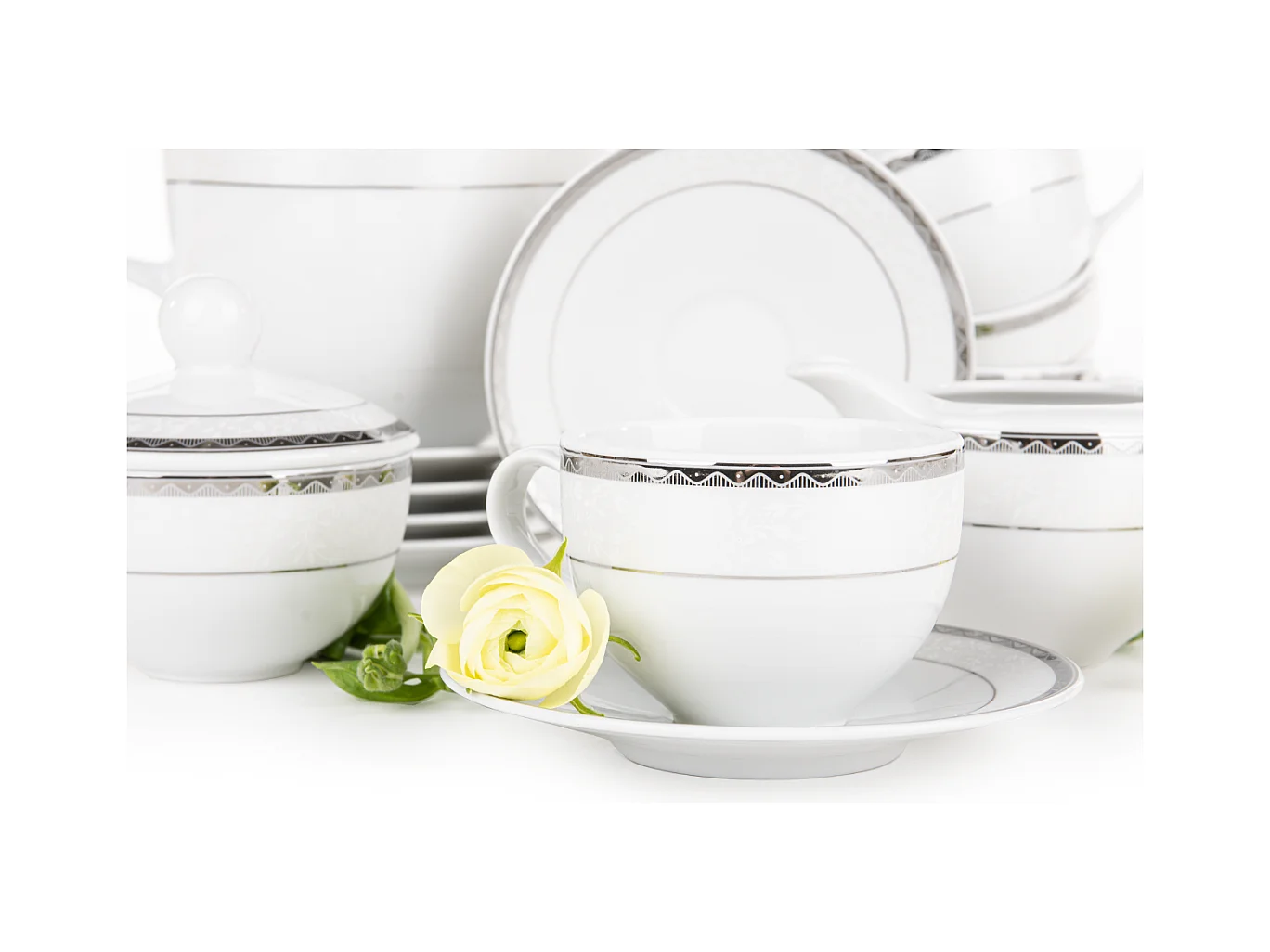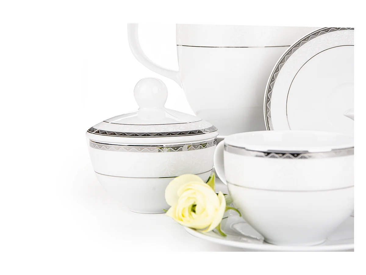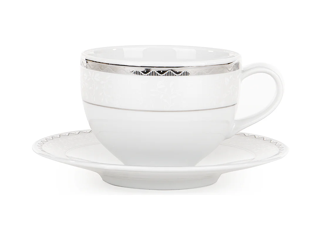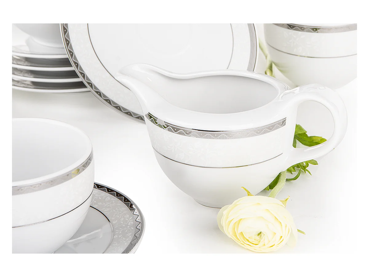 Kaffeeset für 6 Personen (9 Artikel) - Porzellan - Platin - AMELIA
