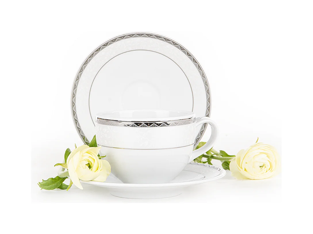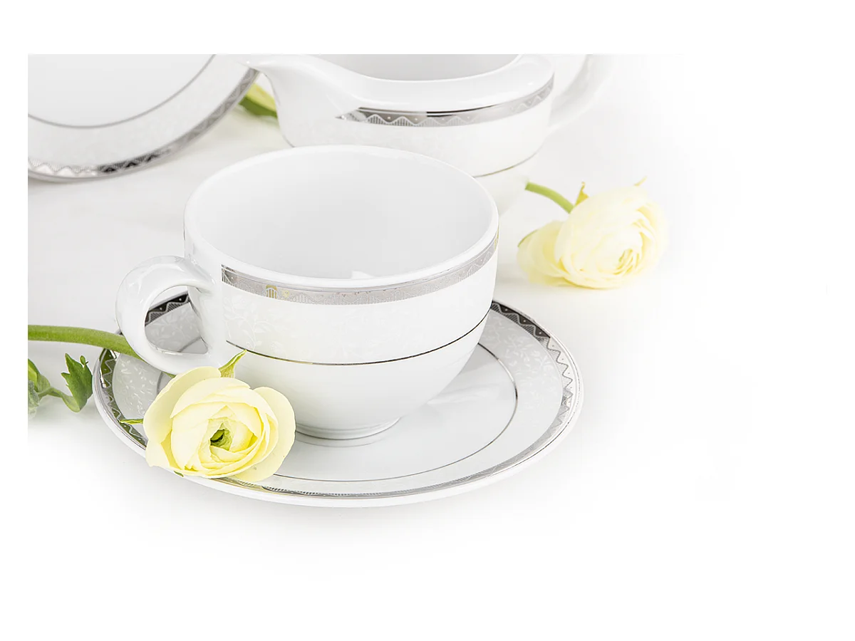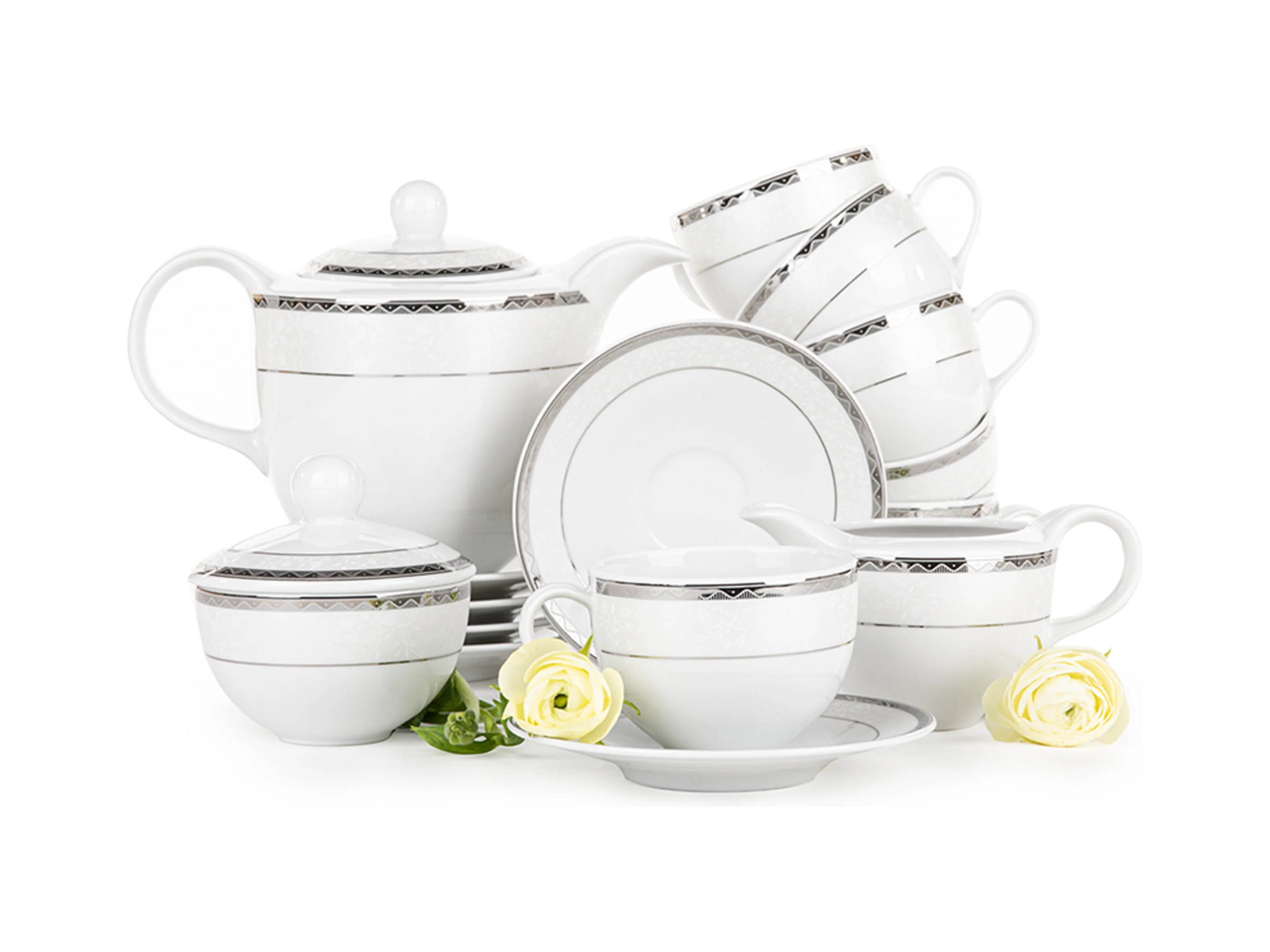 Kaffeeset für 6 Personen (9 Artikel) - Porzellan - Platin - AMELIA
