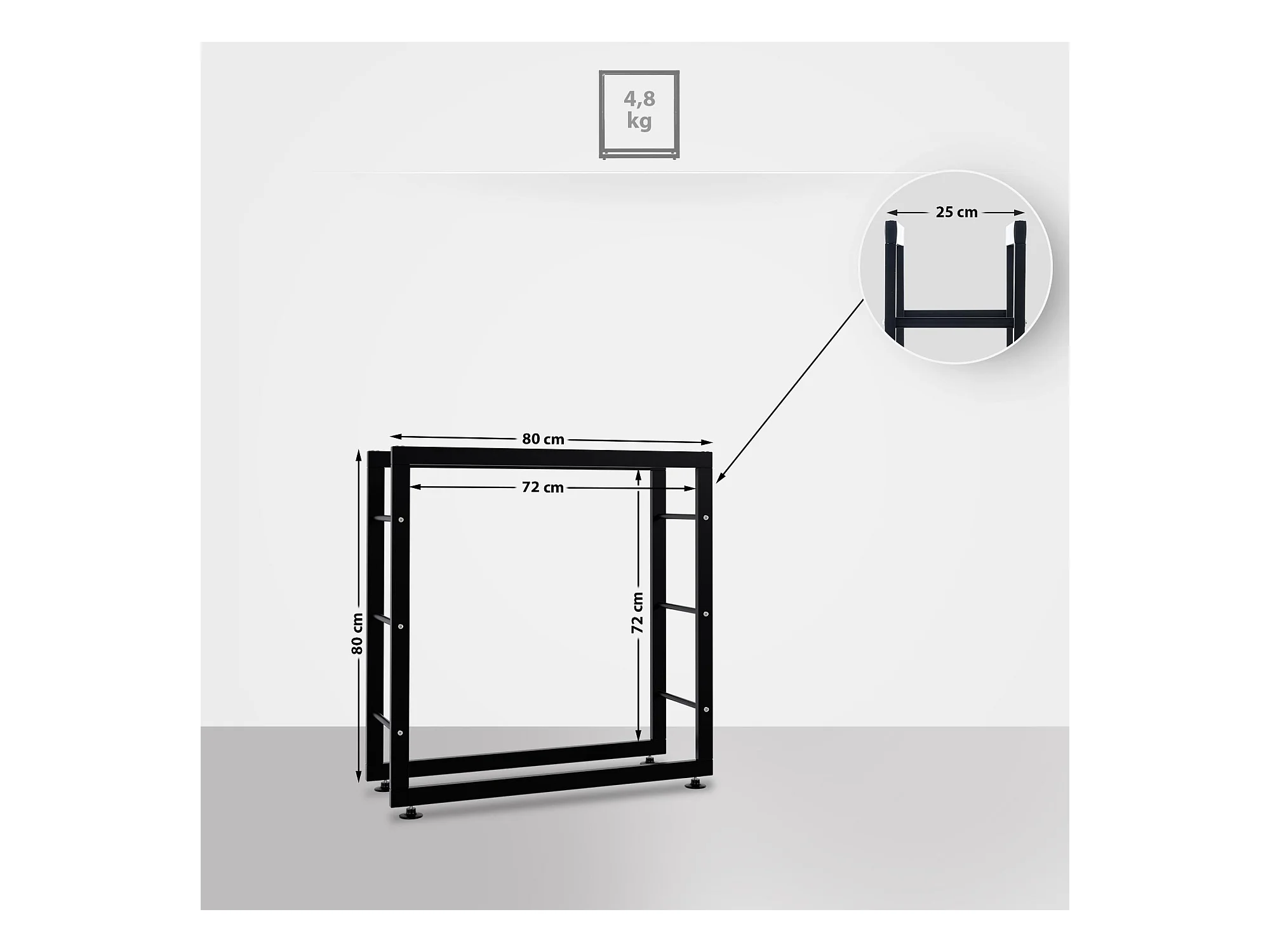 Kaminholzregal - Metall - 25x80x80 cm - schwarz - Keri V2