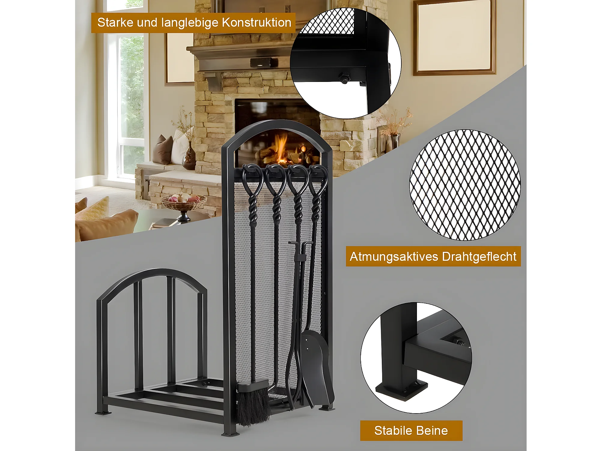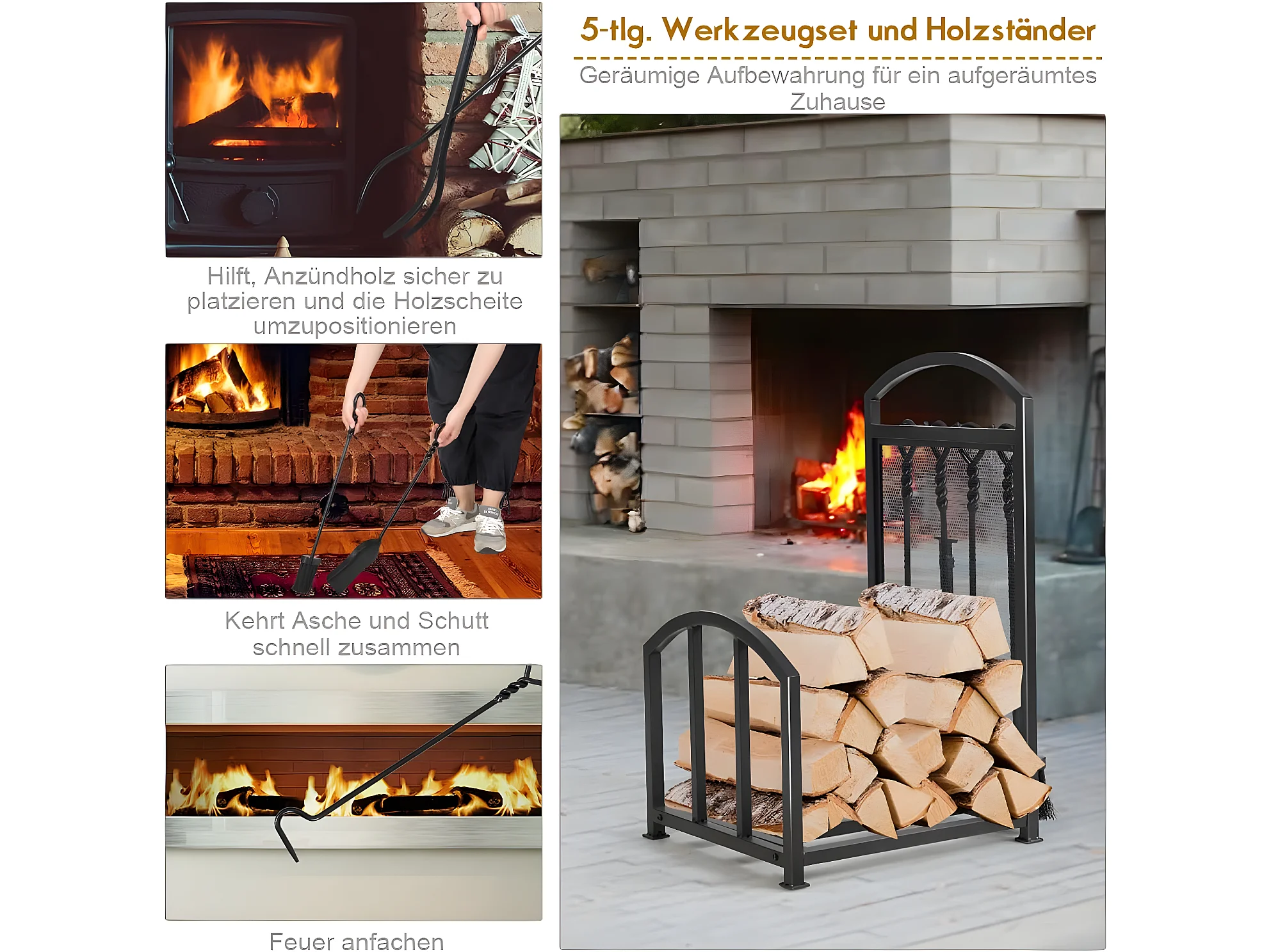Kaminholzregal mit 4 Kaminwerkzeug