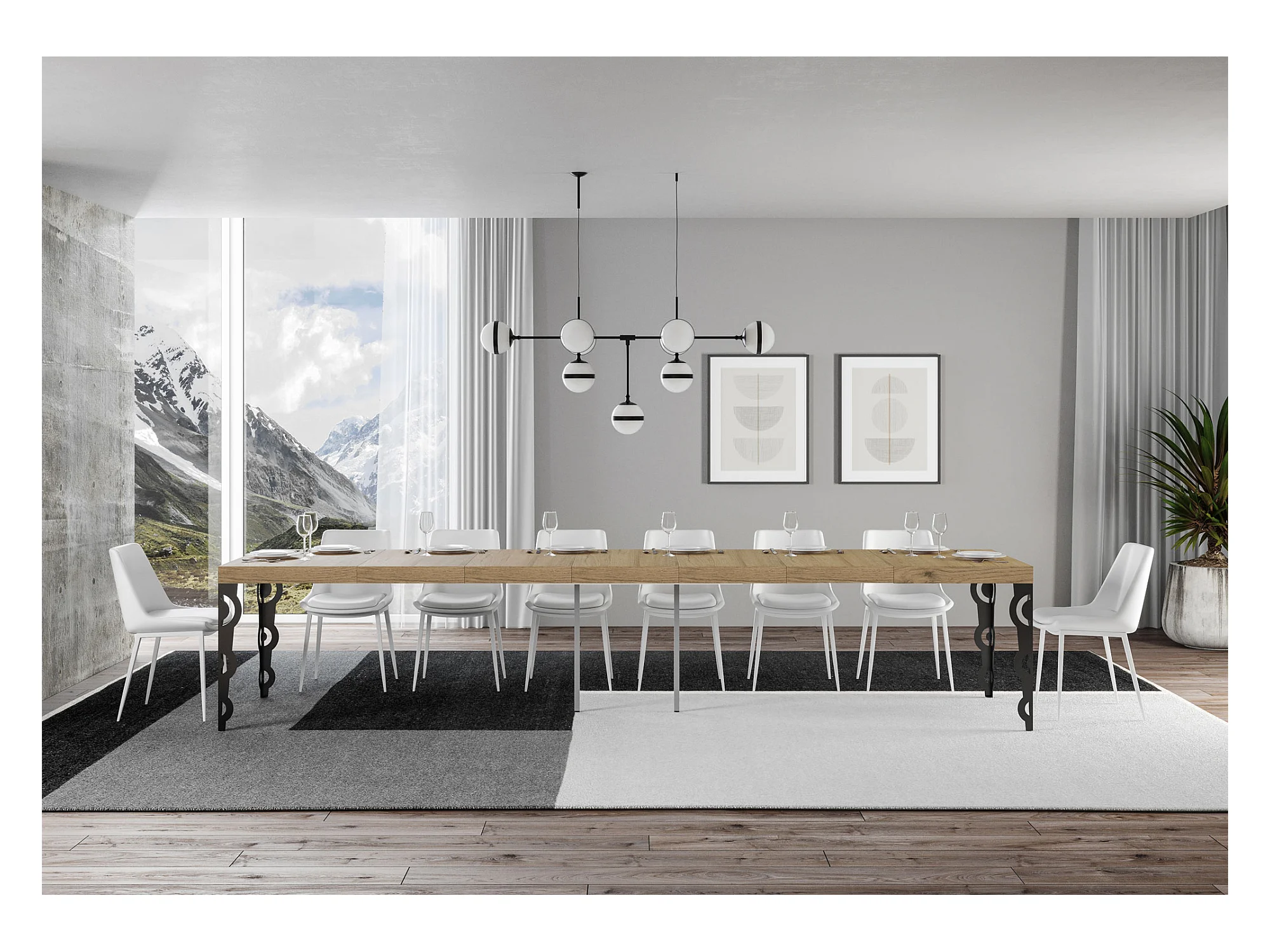 Karamay Premium Ausziehtisch 200/460x90 cm Natur Eiche anthrazit Beine