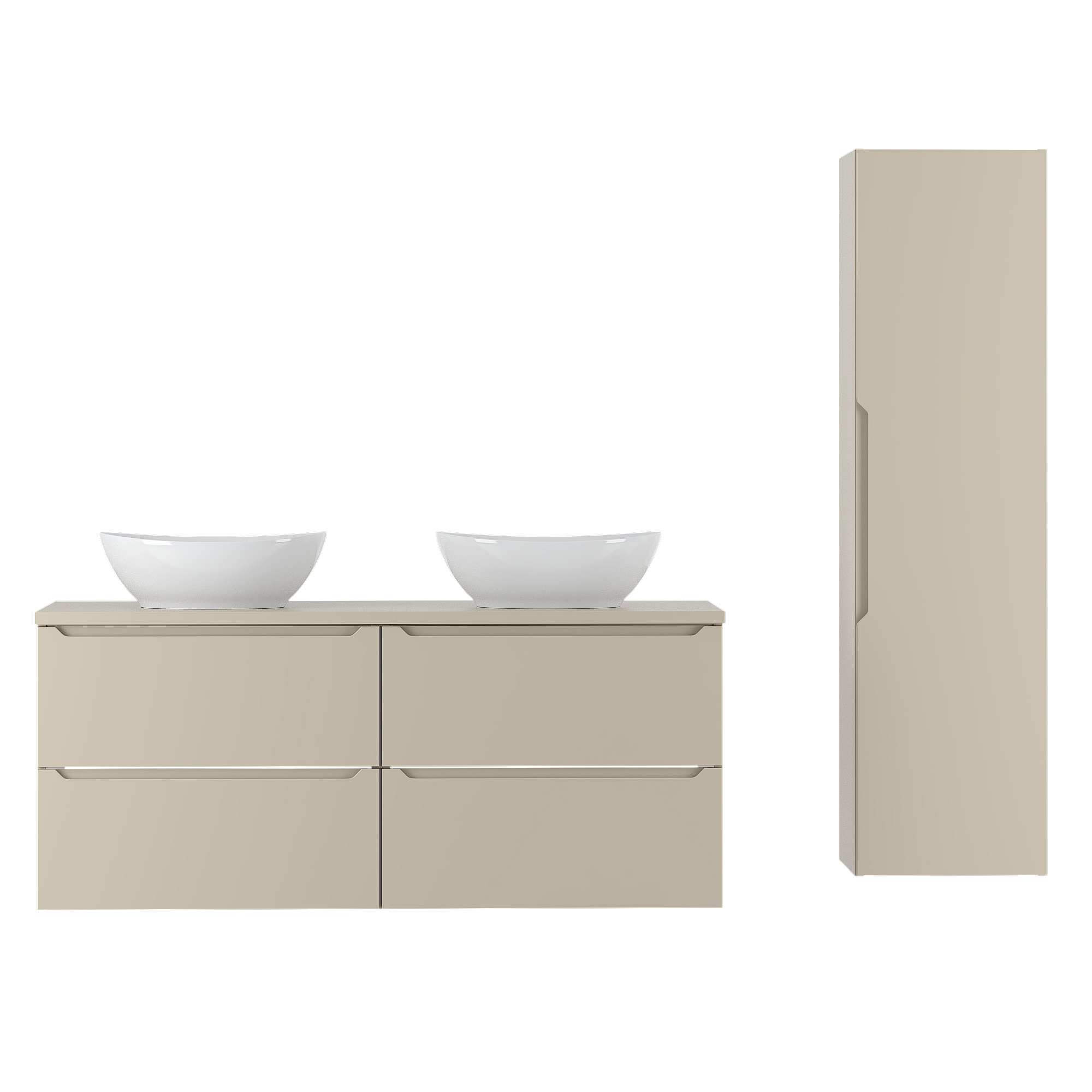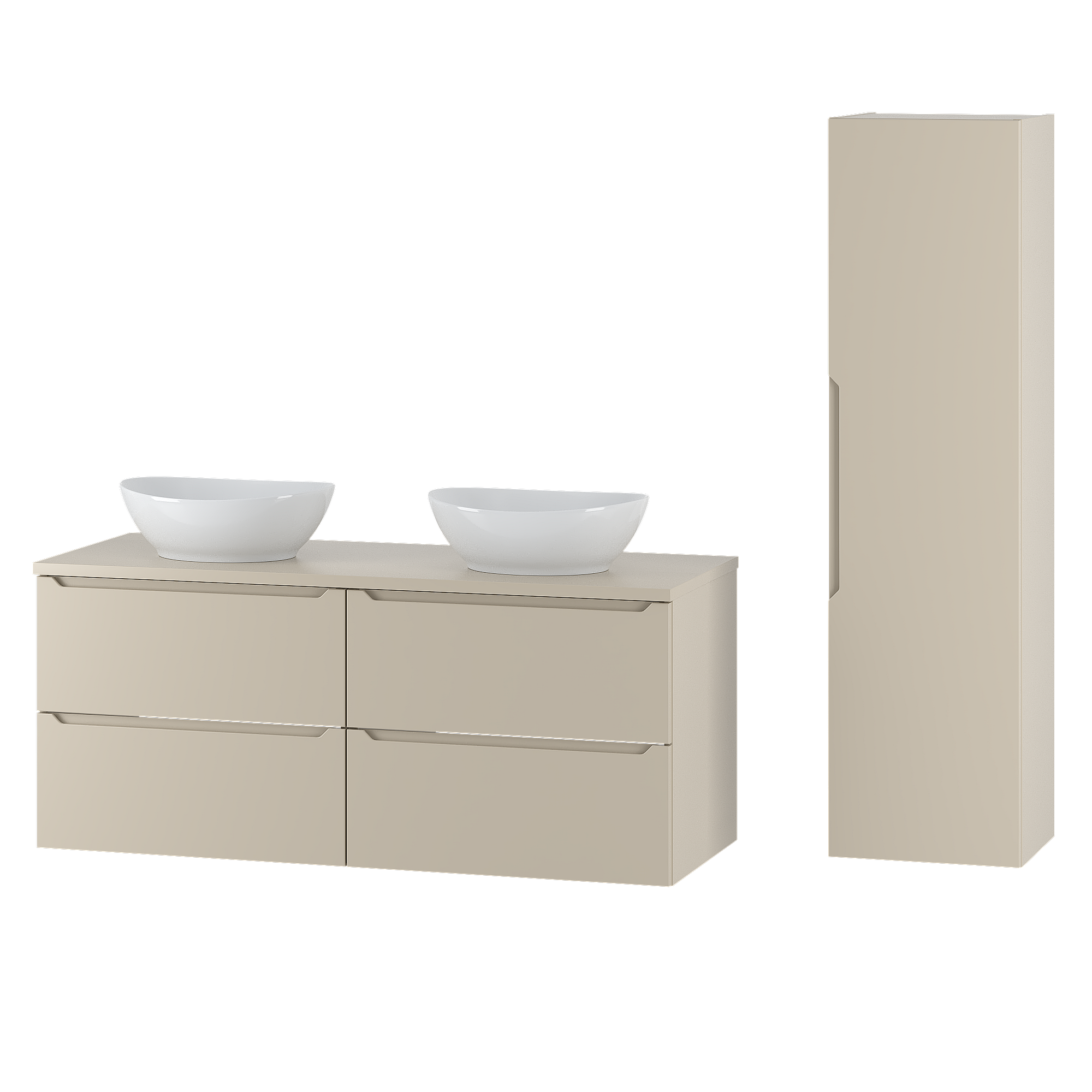Kaschmir-Badezimmer-Set 120 cm Schrank mit Arbeitsplatte und Washbecken und Hochschrank Etna