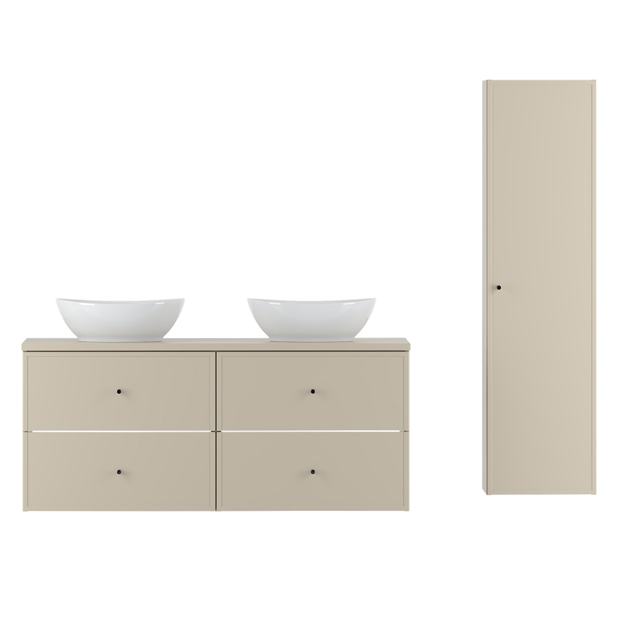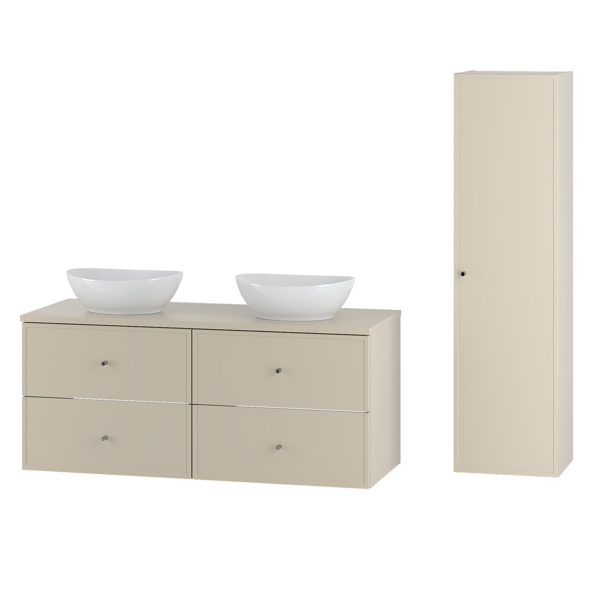 Kaschmir-Badezimmer-Set 120 cm Schrank mit Arbeitsplatte und Washbecken und Hochschrank Marco