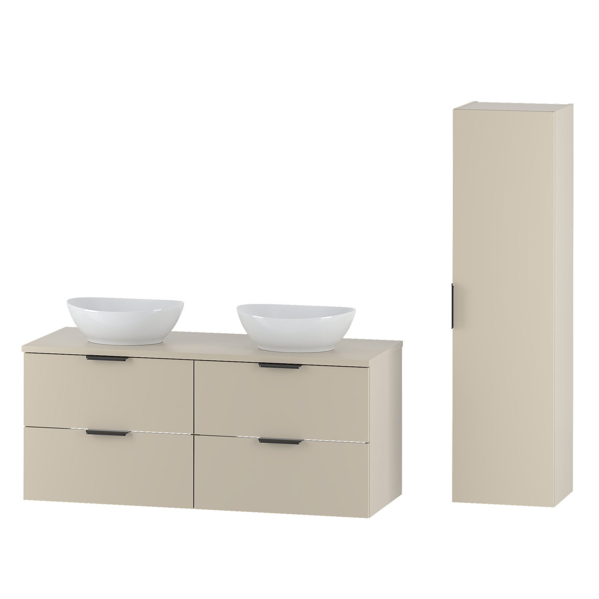 Kaschmir-Badezimmer-Set 120 cm Schrank mit Arbeitsplatte und Washbecken und Hochschrank Pile