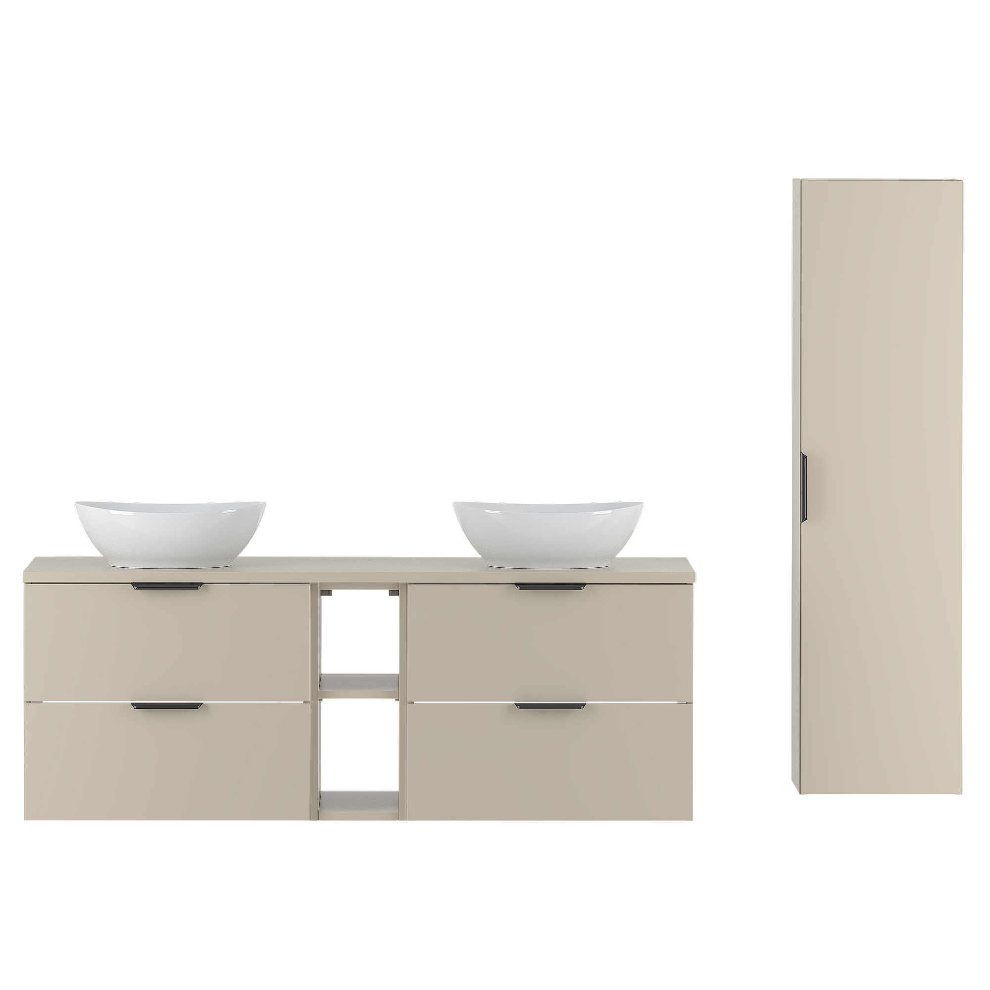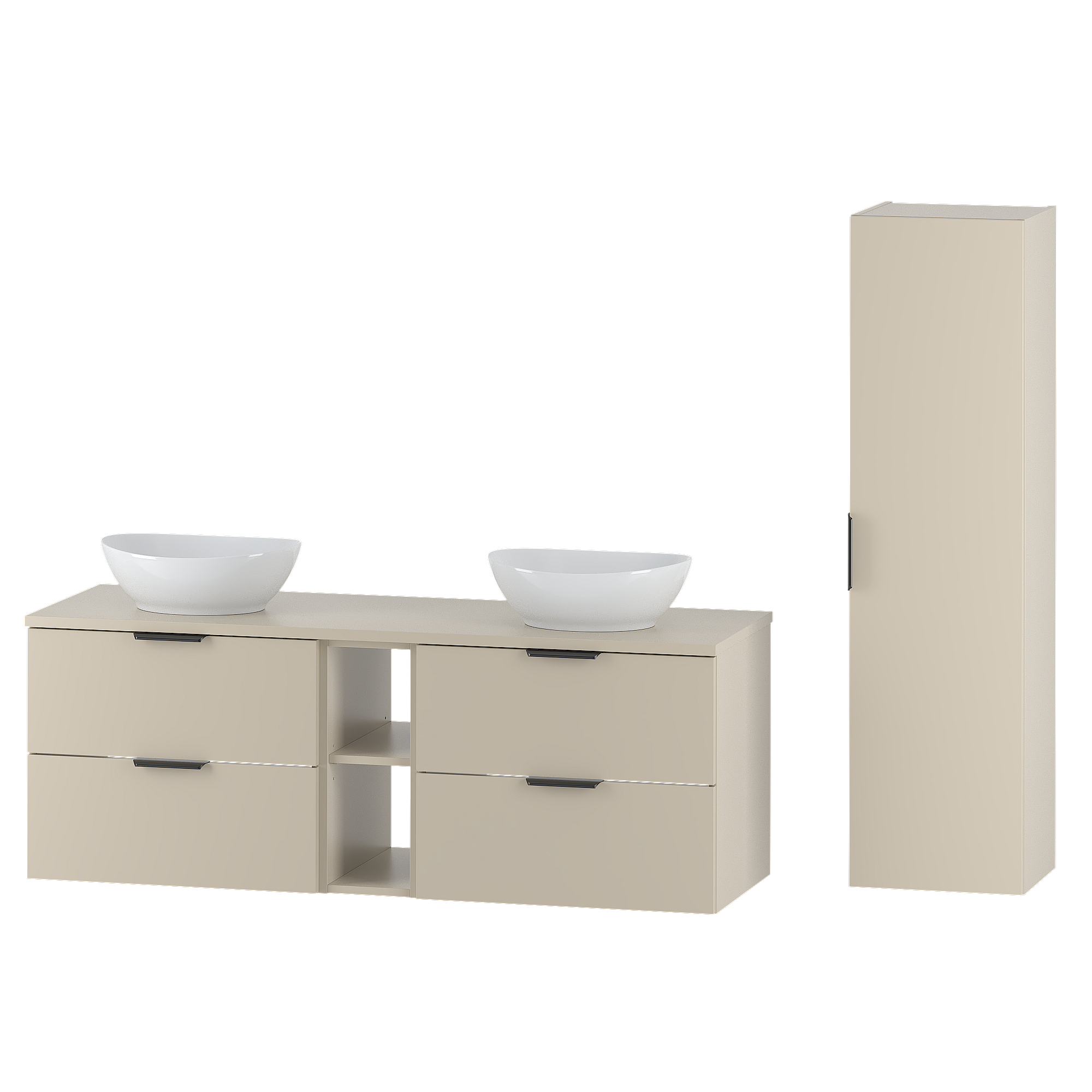 Kaschmir-Badezimmer-Set 140 cm Schrank und Regal mit Arbeitsplatte und Waschbecken und Hochschrank Pile