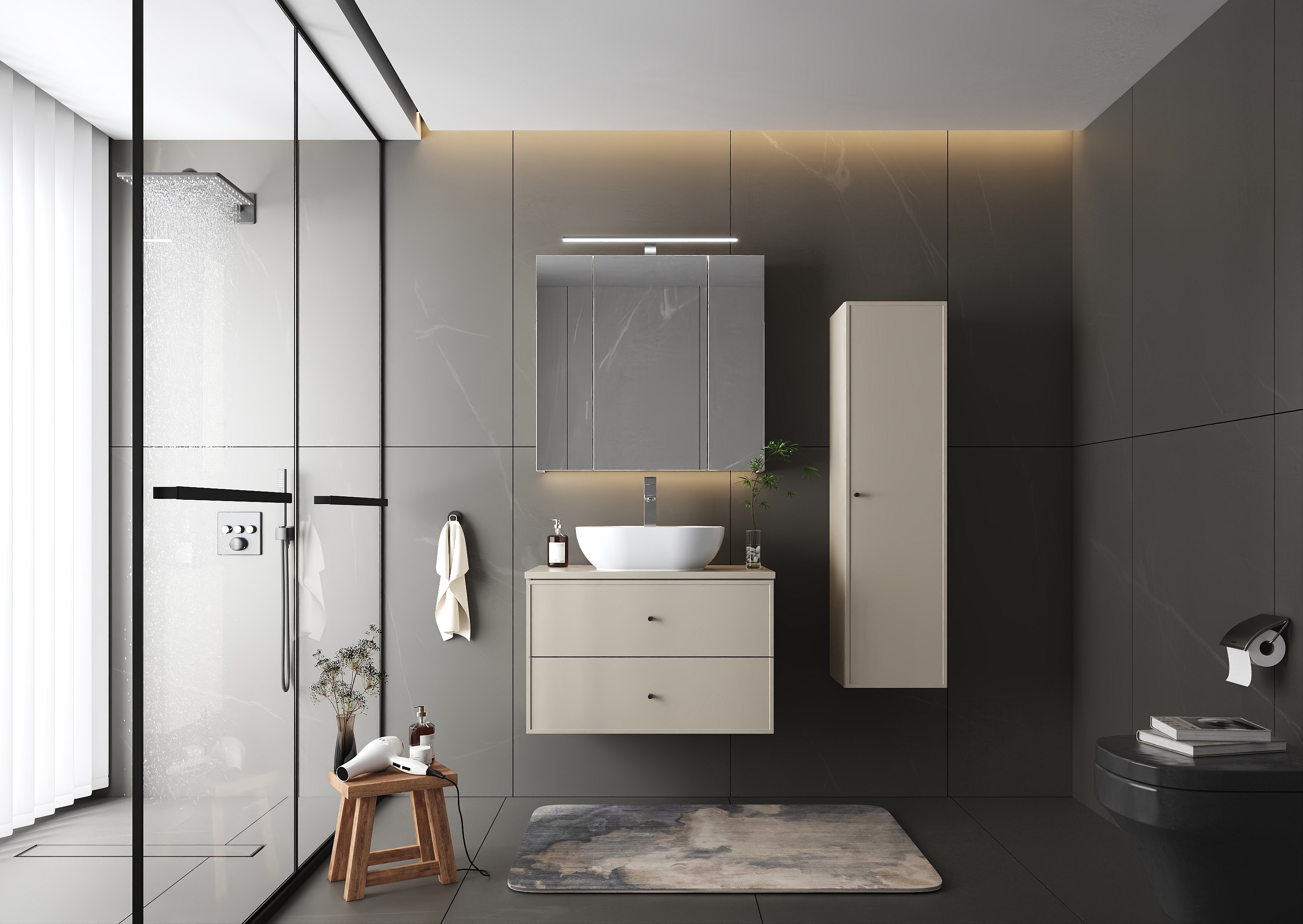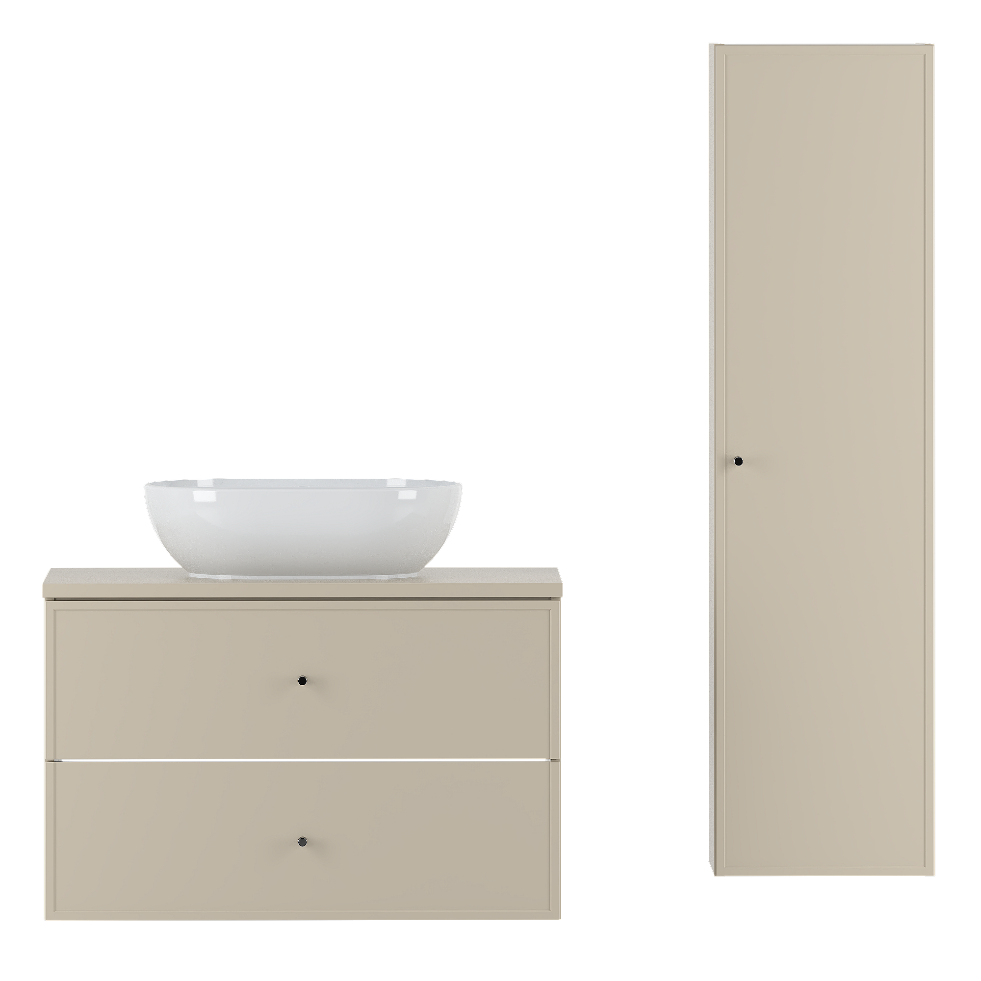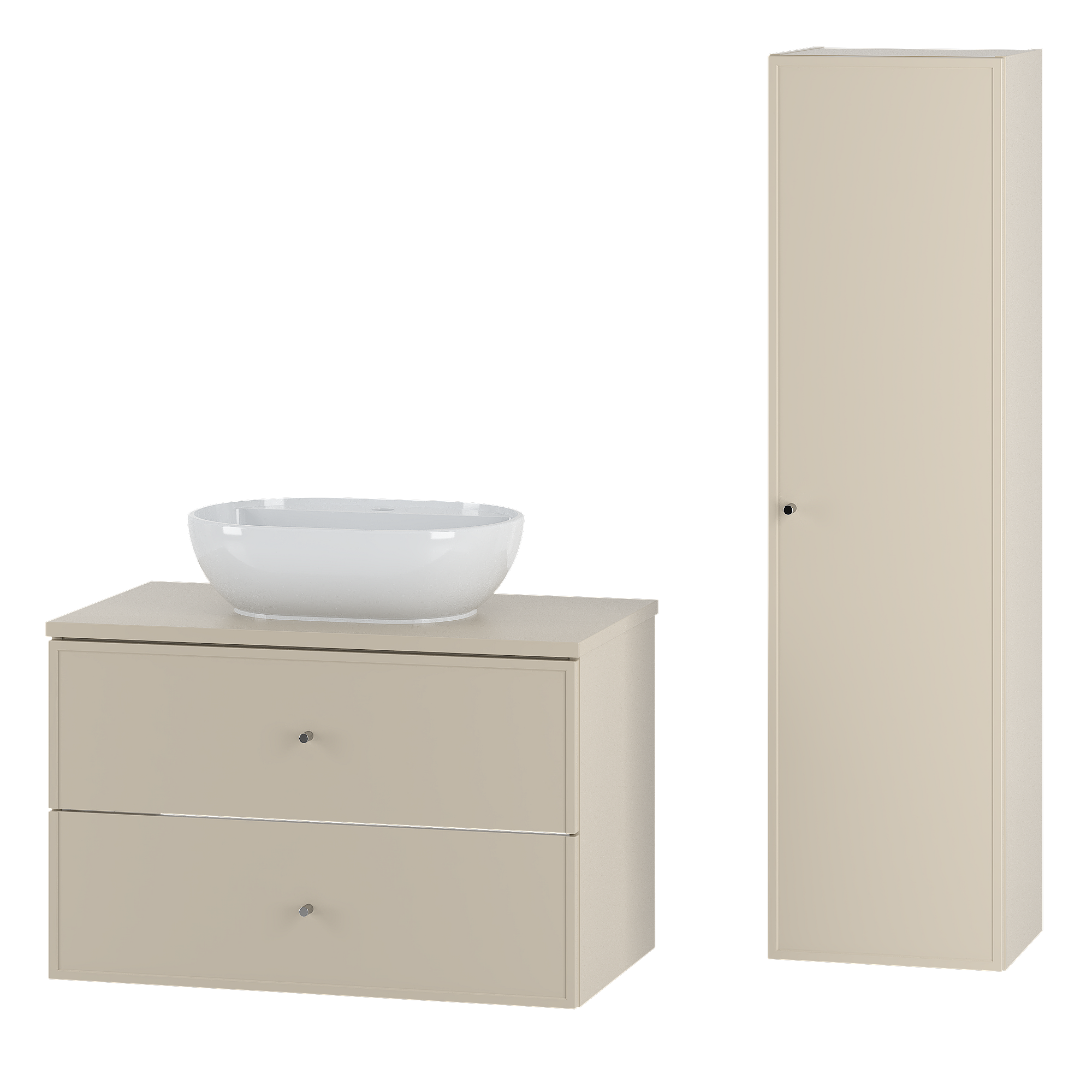Kaschmir-Badezimmer-Set 80 cm Schrank mit Arbeitsplatte und Waschbecken und Hochschrank Marco
