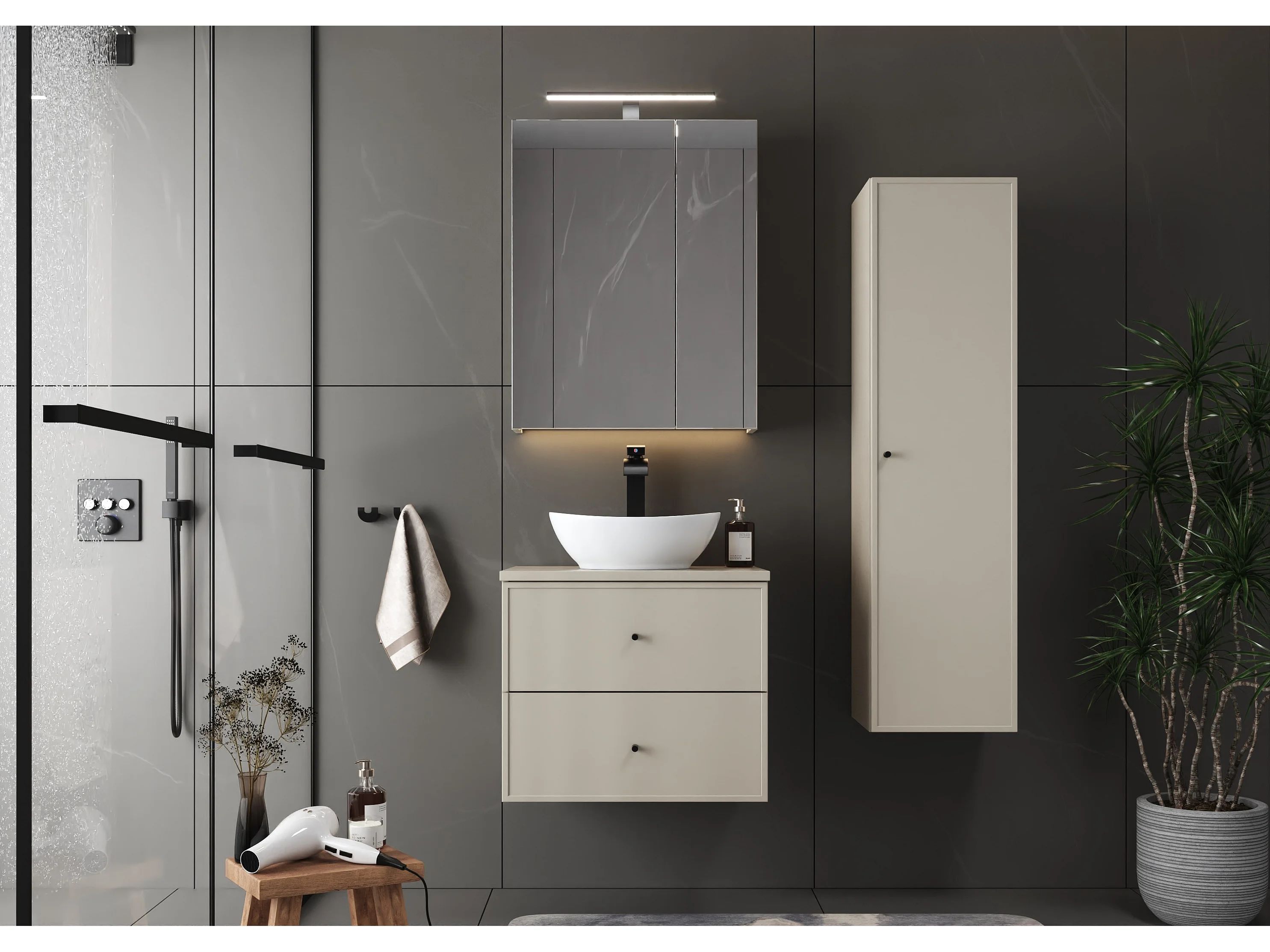 Kaschmir-Badezimmerschrank, hoher Schrank, 1 Tür, Marco