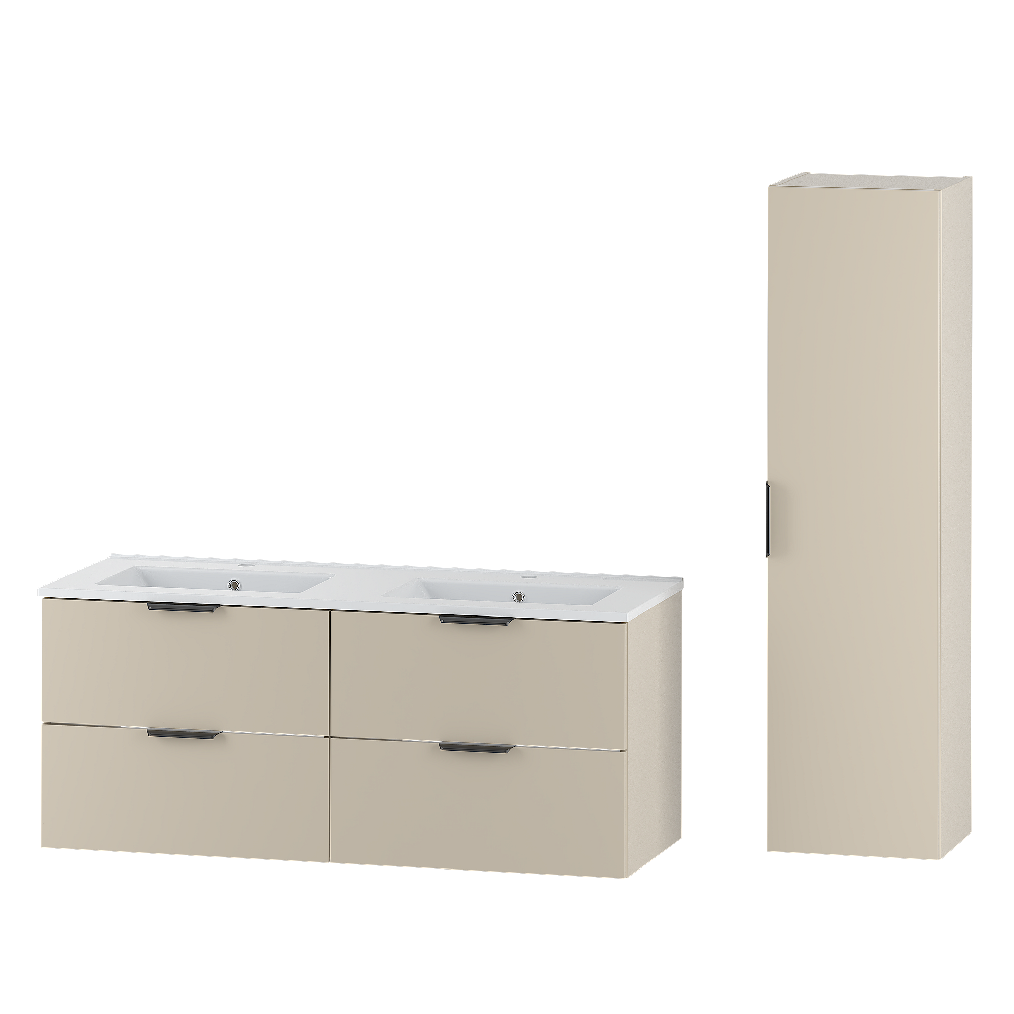 Kaschmir-Badezimmerset 120 cm Schrank mit Waschbecken und Hochschrank Pile