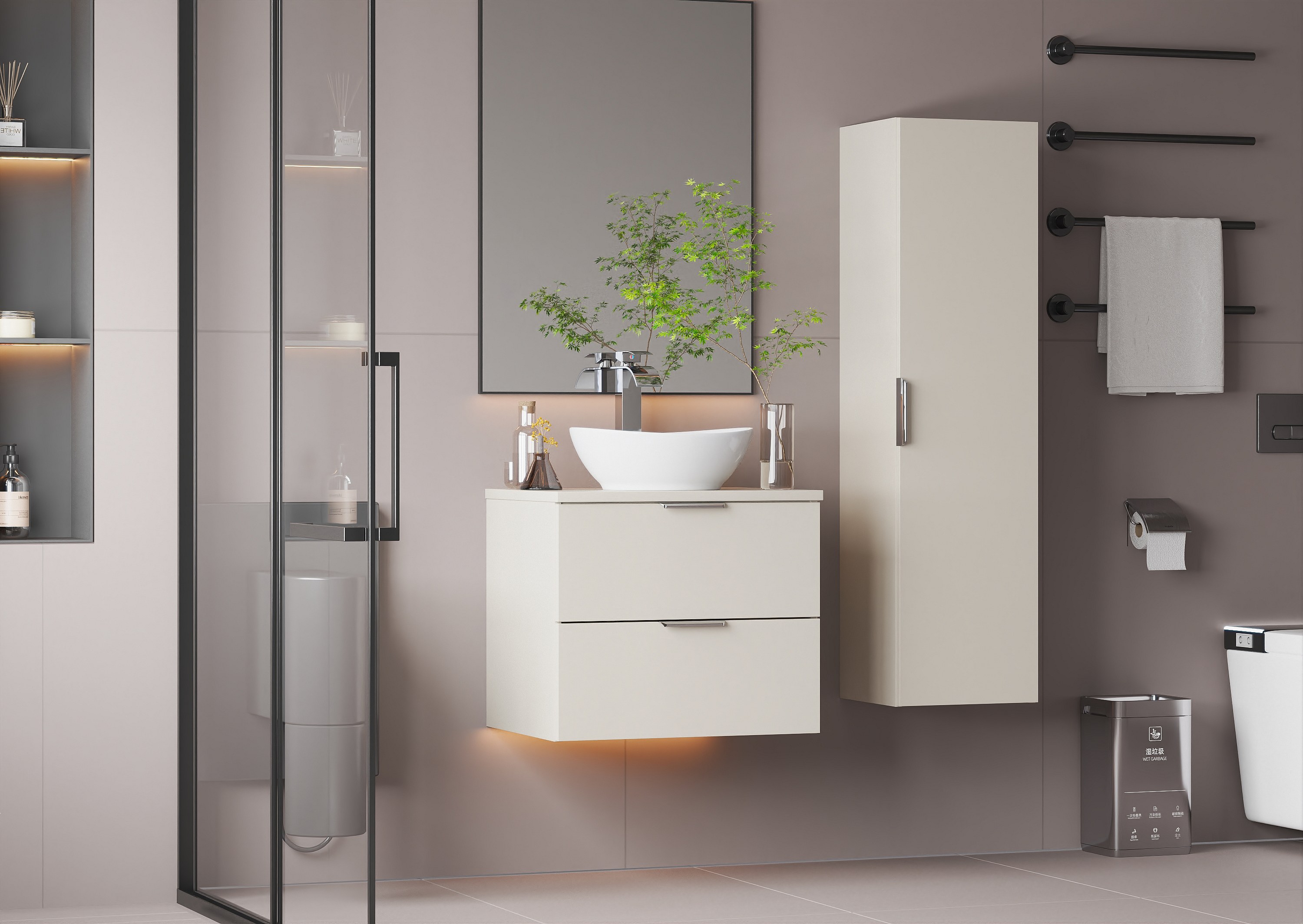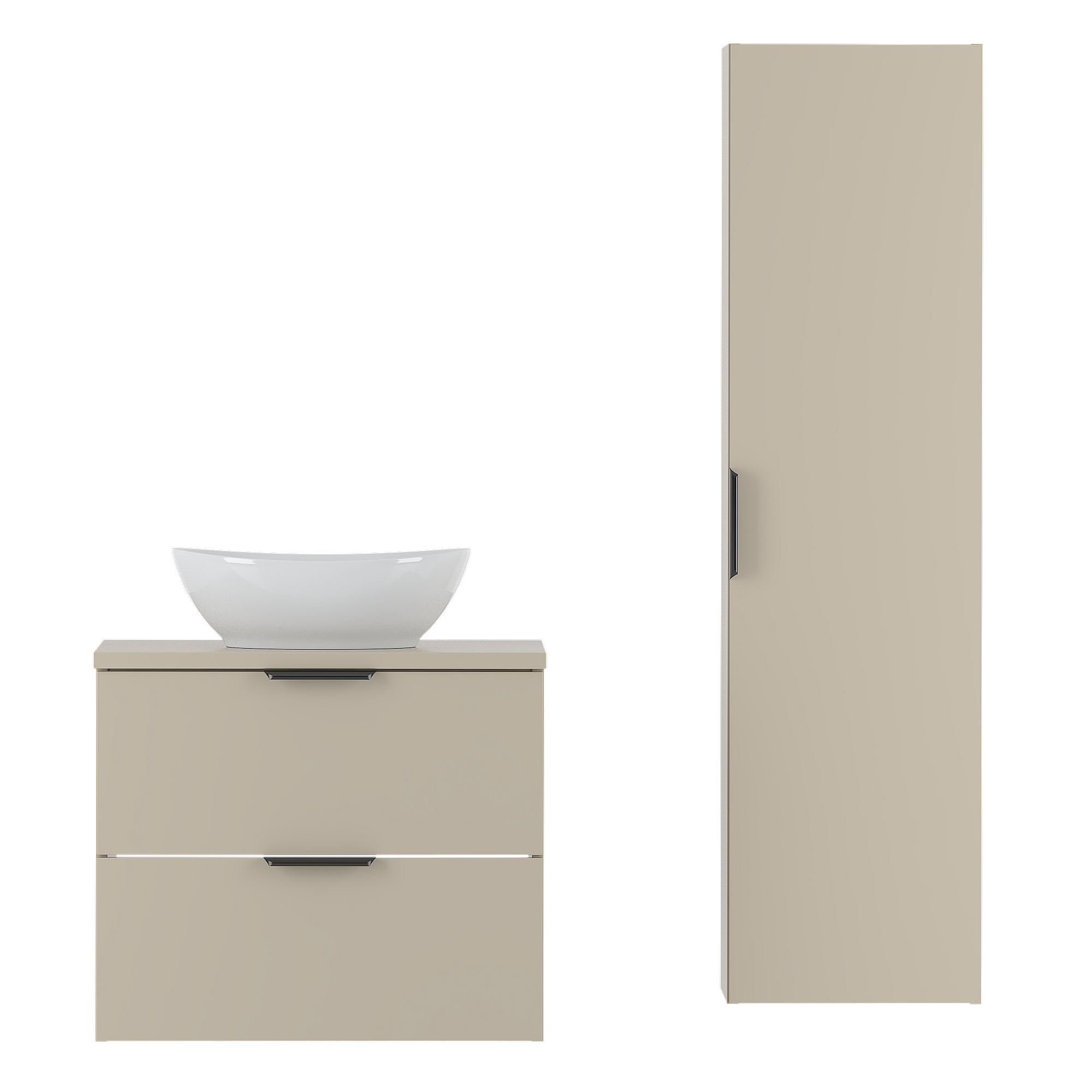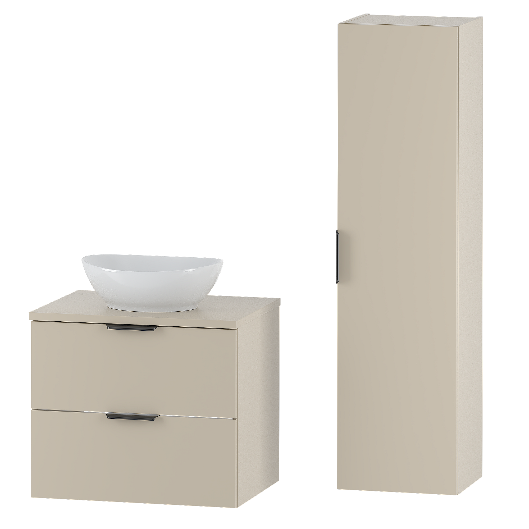 Kaschmir-Badezimmerset 60 cm Schrank mit Arbeitsplatte und Waschbecken und Hochschrank Pile
