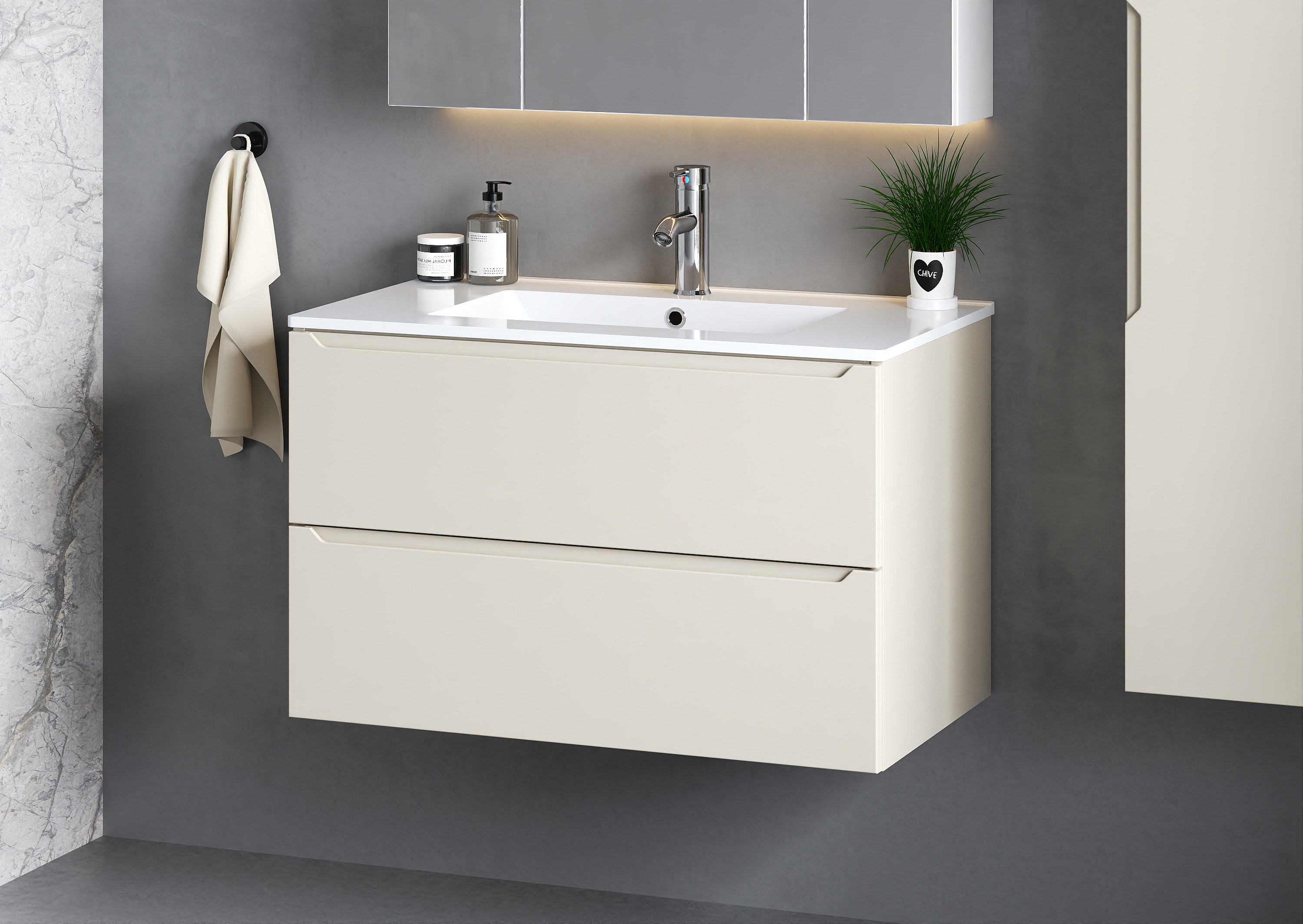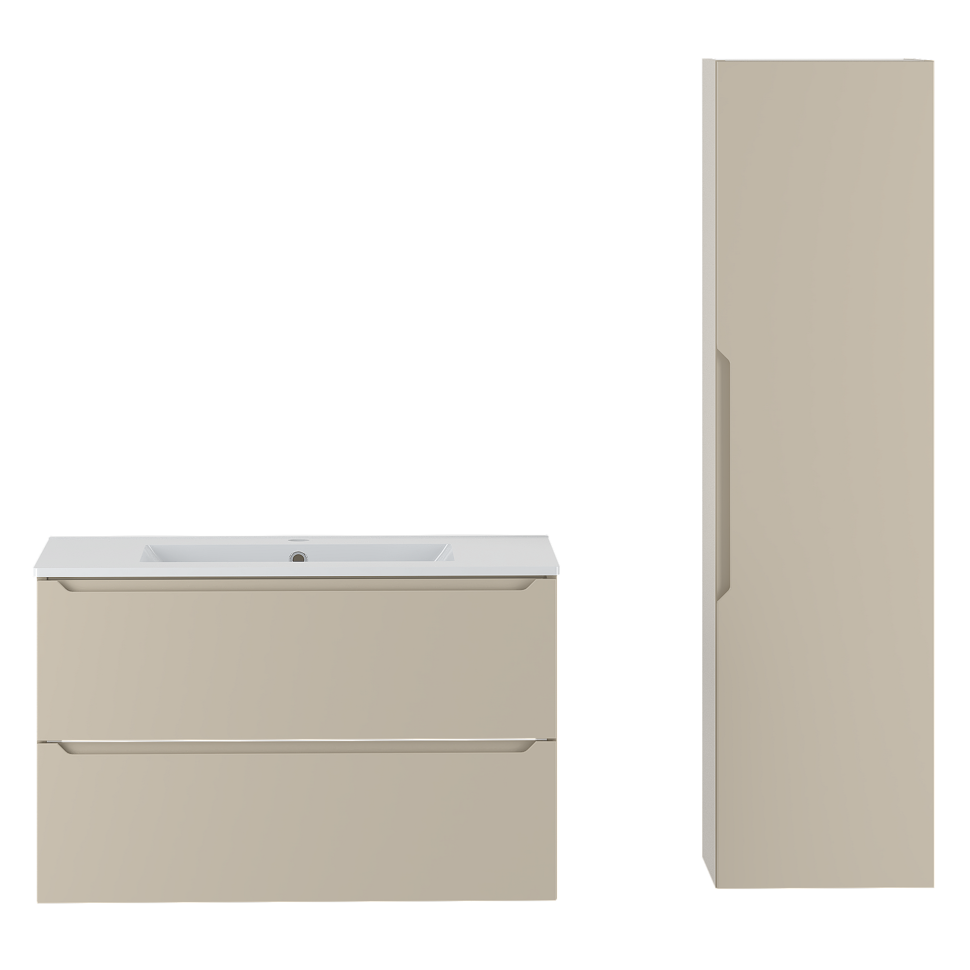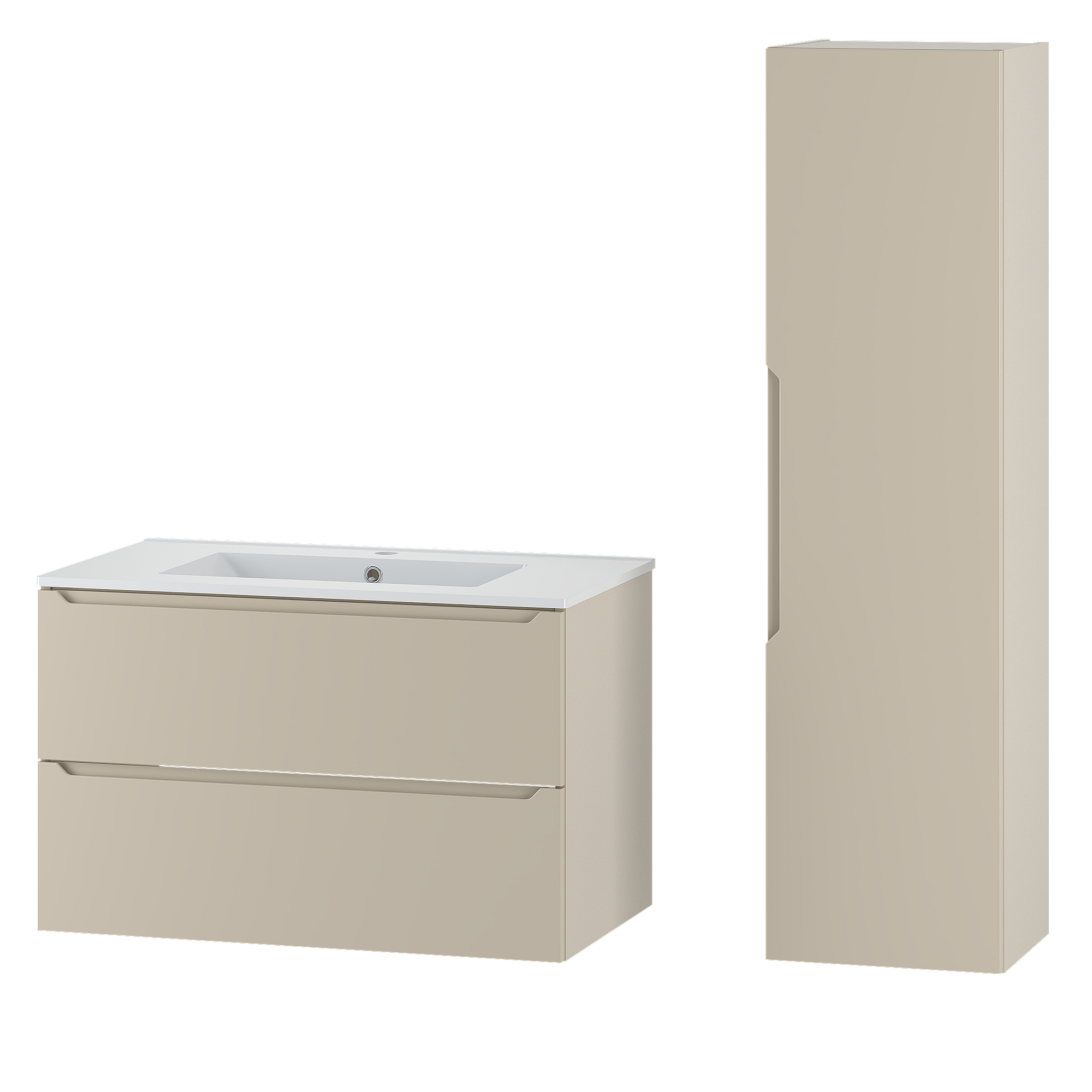 Kaschmir-Badezimmerset 80 cm Schrank mit Waschbecken und Hochschrank Etna