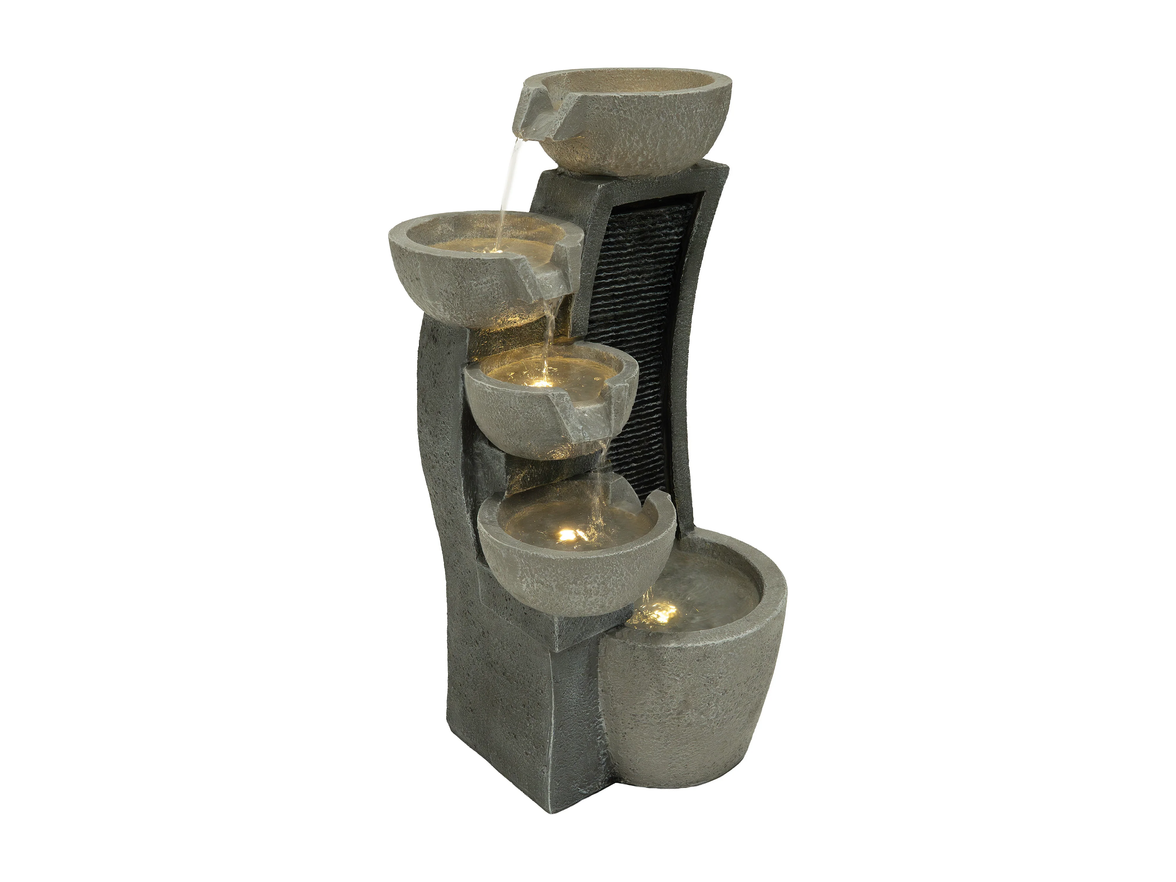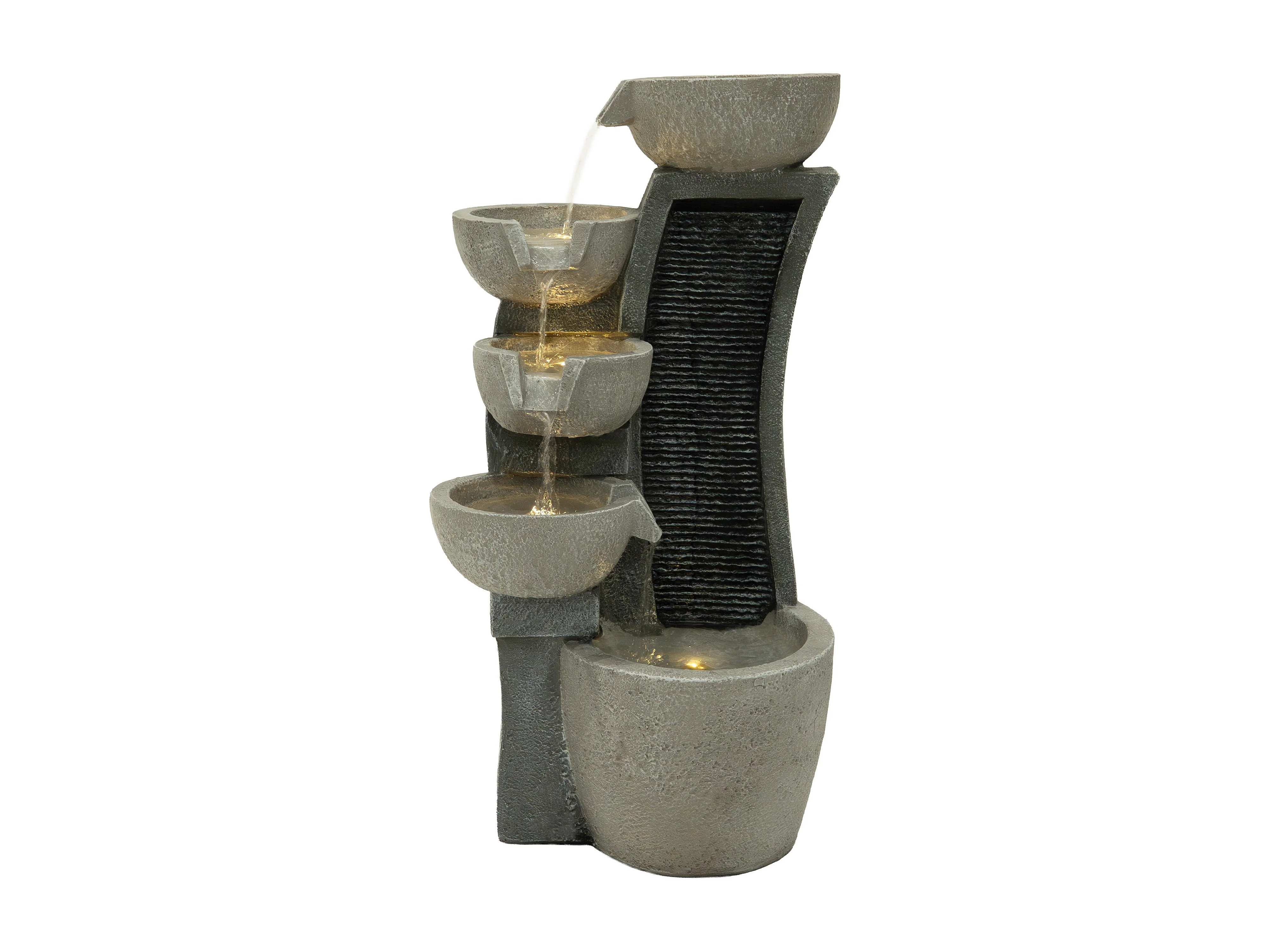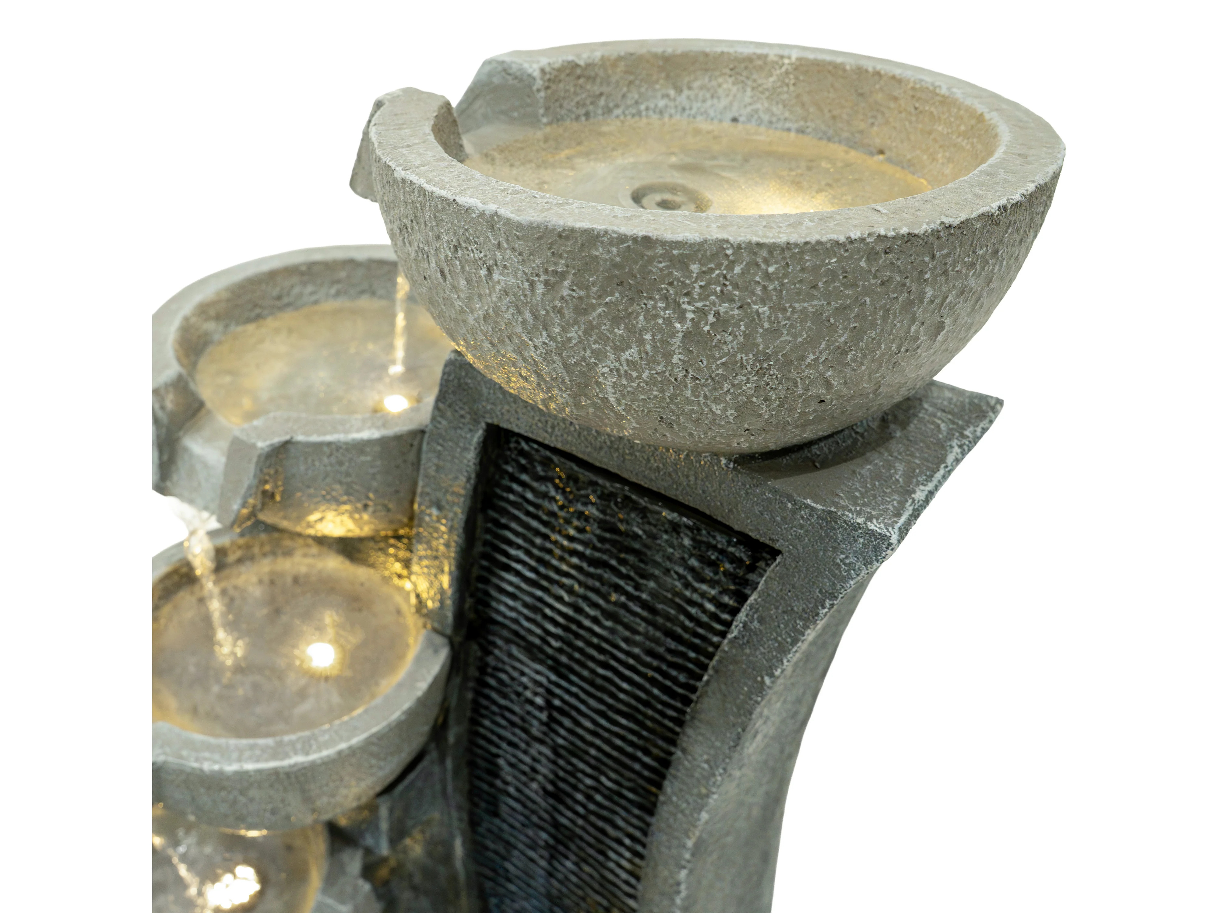 Kaskadierende Outdoor-Wasseranlage – Elektrischer Gartenbrunnen in Grau – 5 warmweiße LED-Leuchten – Sleek Streams
