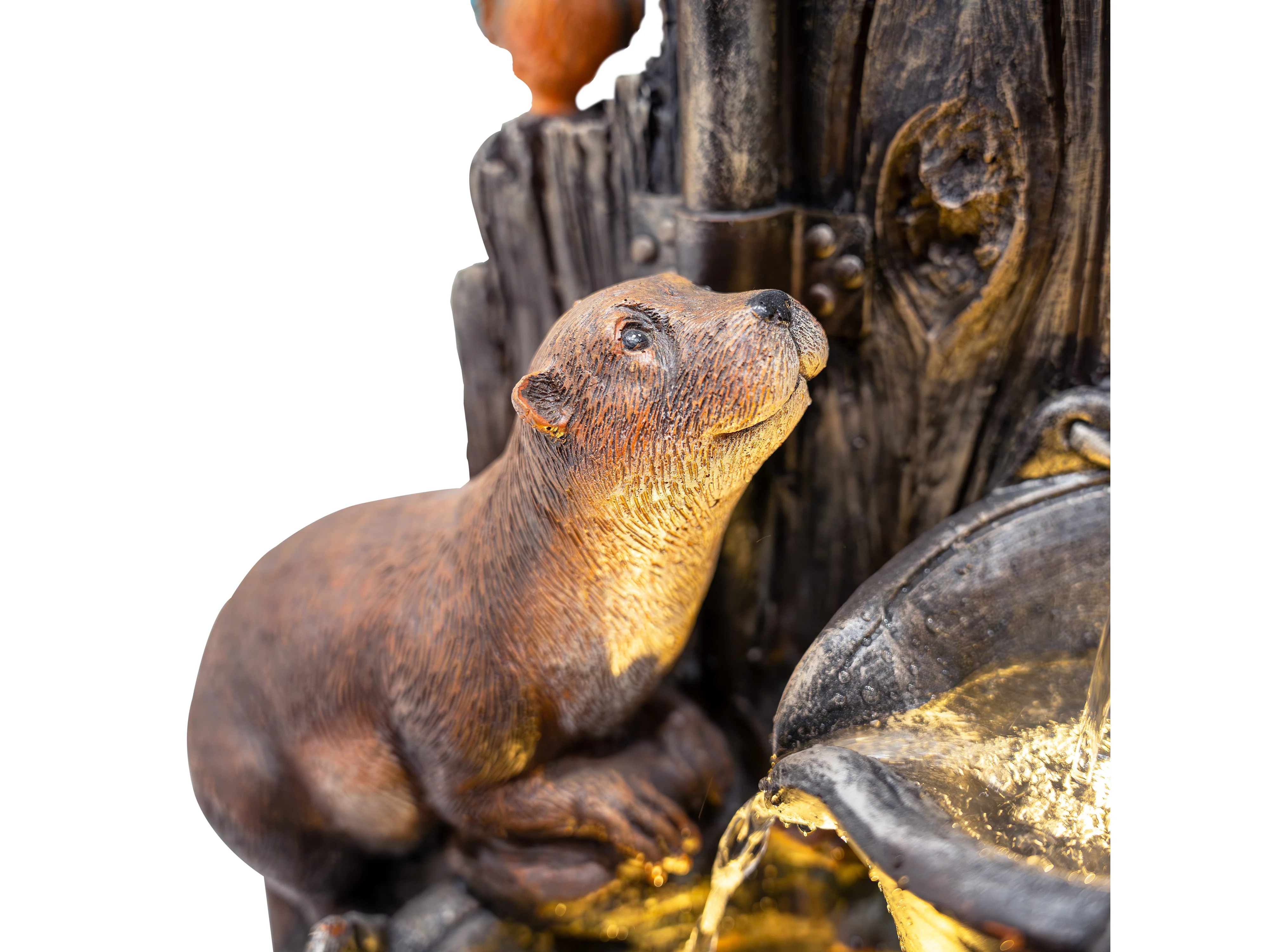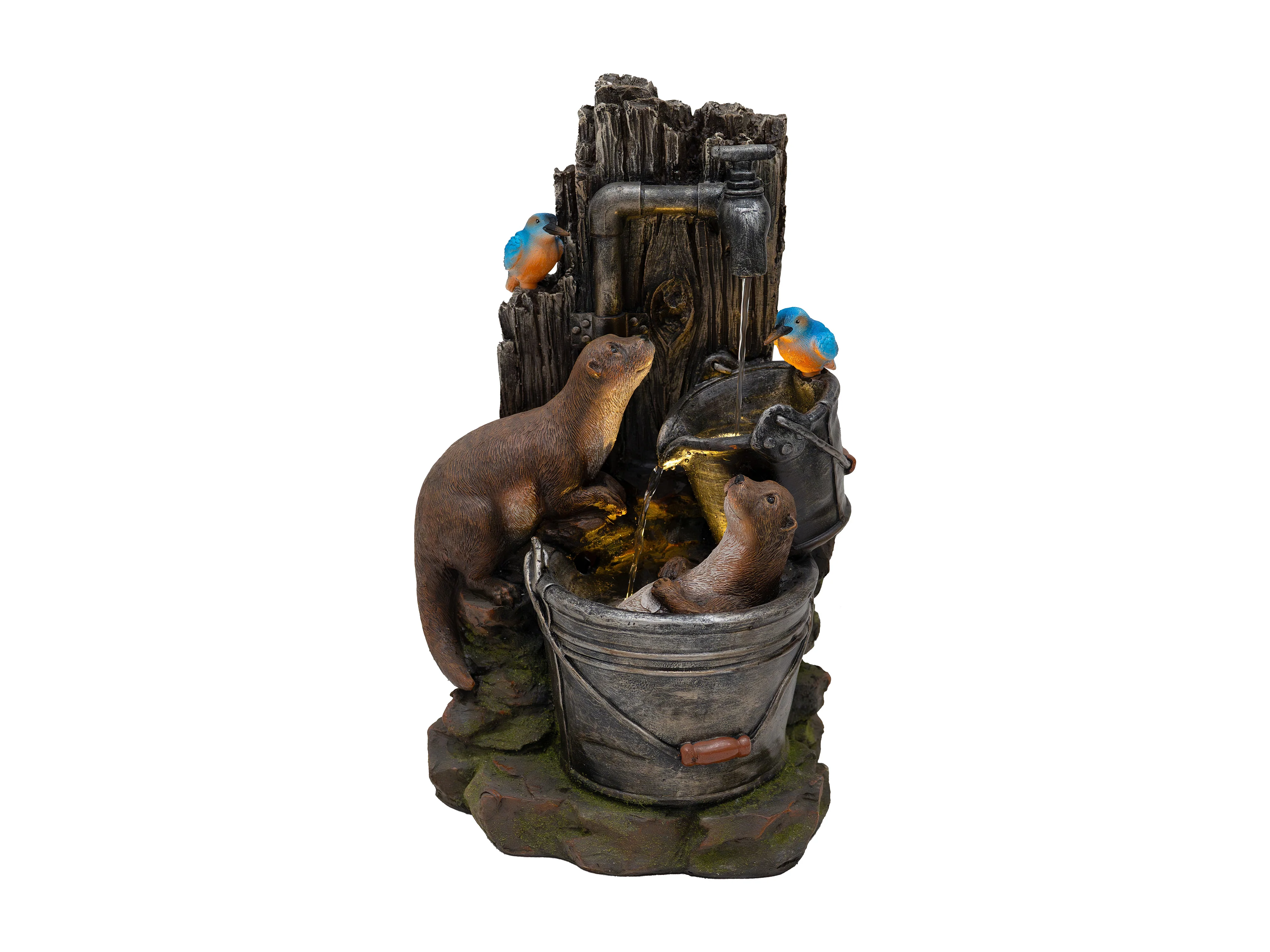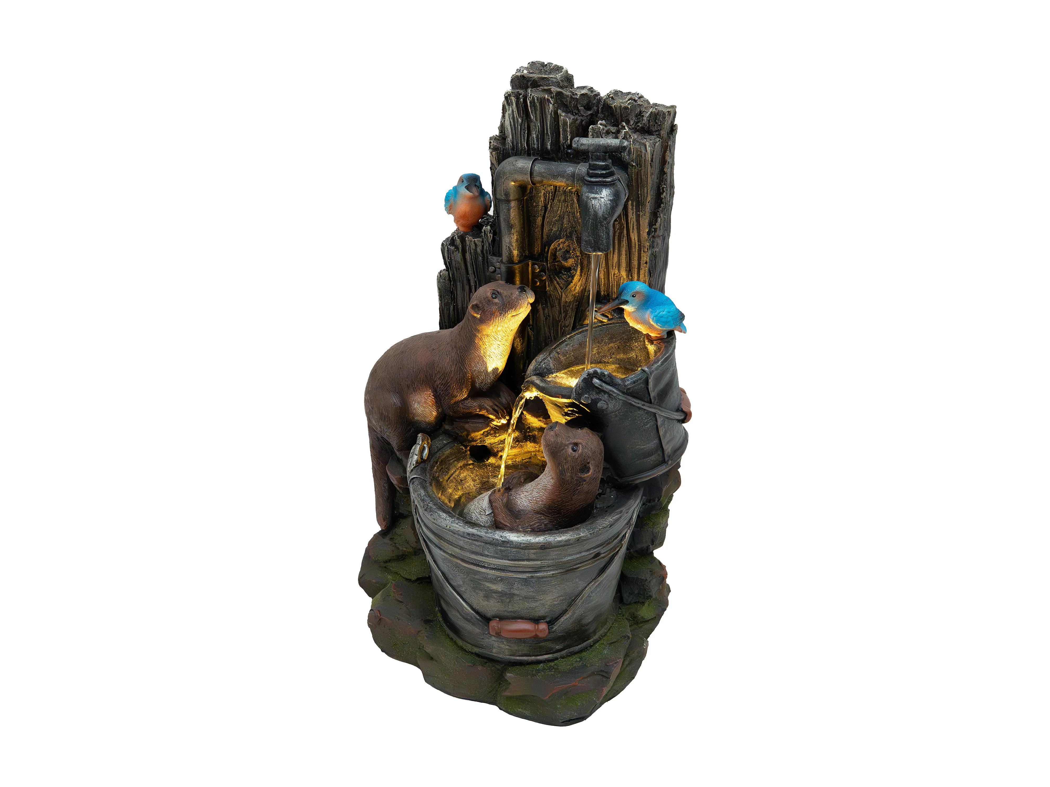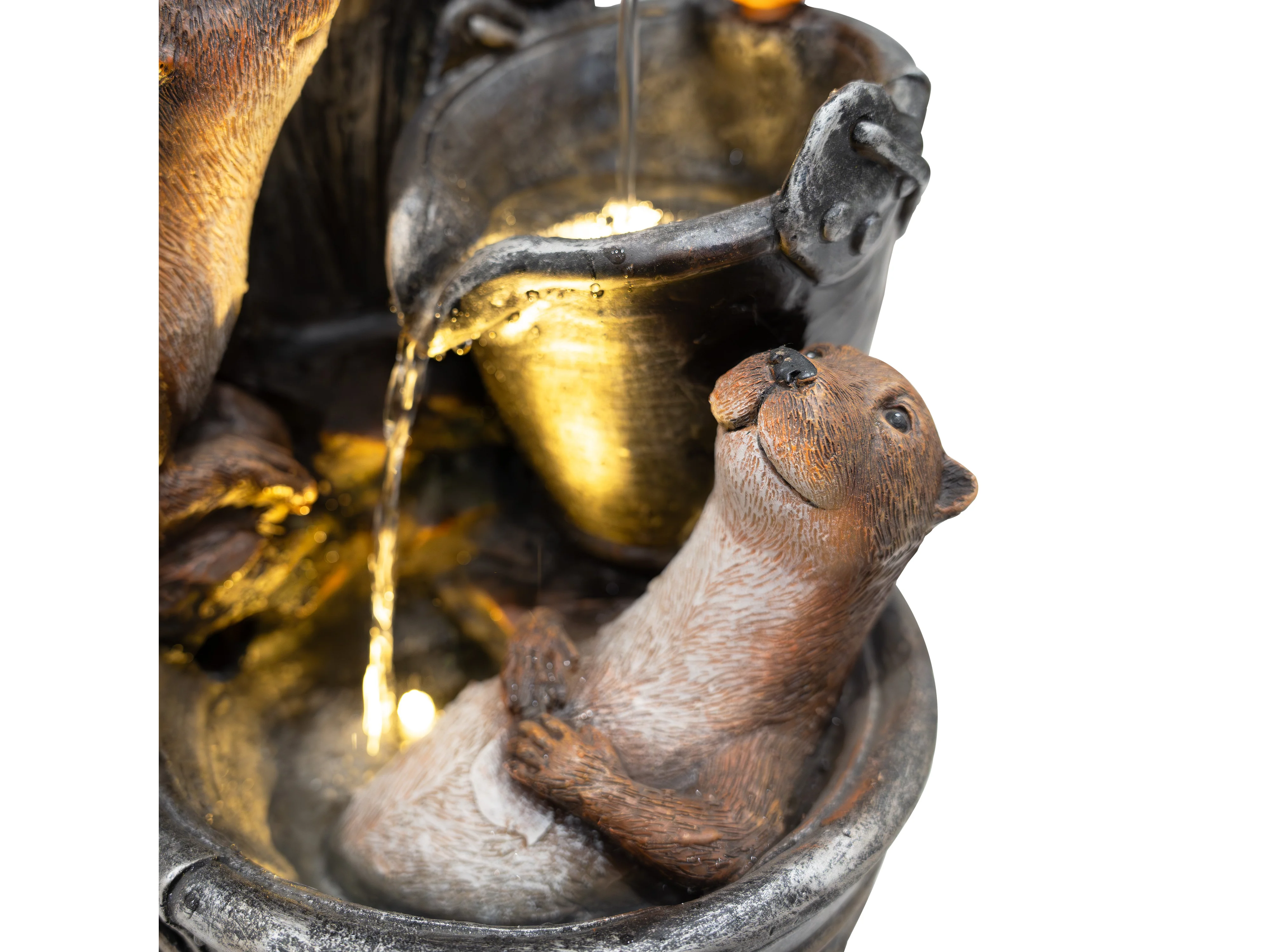 Kaskadierende Outdoor-Wasseranlage – Elektrischer Gartenbrunnen in Grau – warmweiße LED-Leuchten – Otter Oasis
