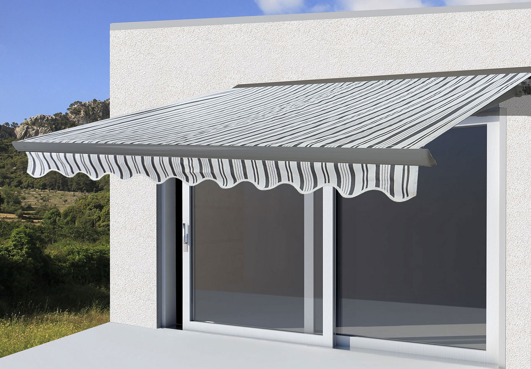 Kassetten-Markise H122 mit Volant, Polyester Grau/Weiß, grau