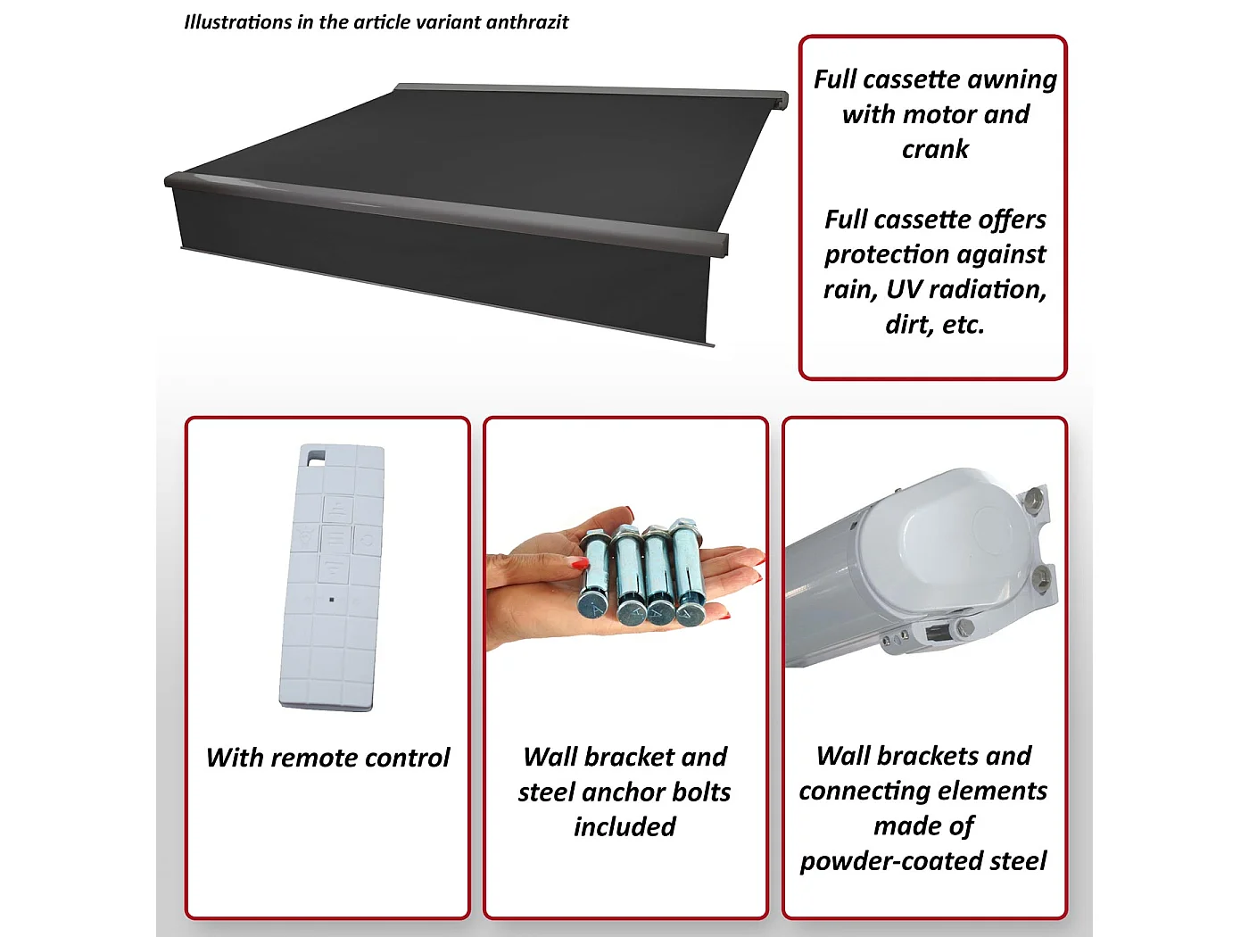 Kassetten-Markise H124 Volant ausfahrbar, Polyester Creme